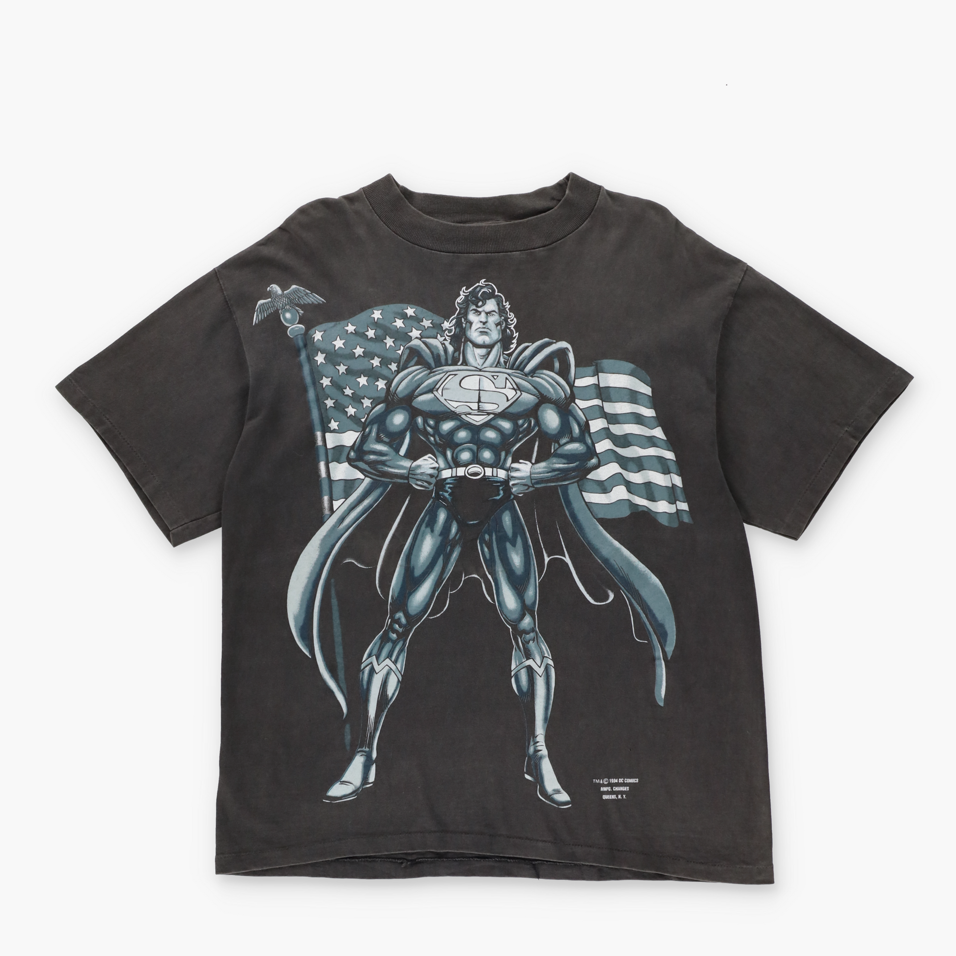 1994 Marvel DC Superman American Flag Graphic Single Stitch T-Shirt (M)