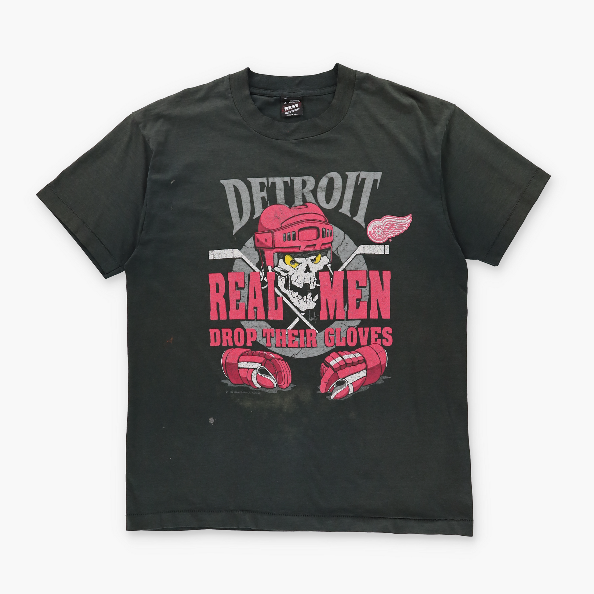 Detroit 'Real Men Drop Their Gloves' 1994 USA Made FRUIT OF THE LOOM Single Stitch Vintage T-Shirt (L)