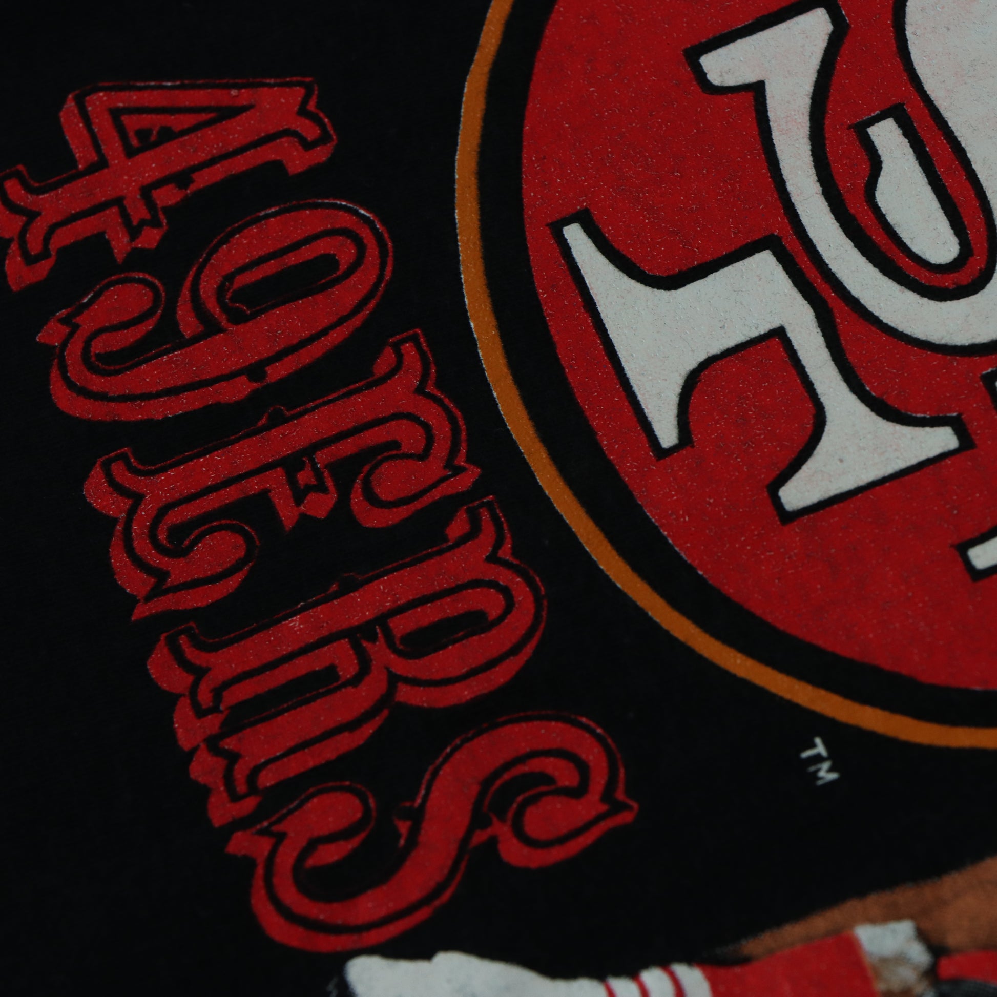 49ERS Joe Montana 'Unstoppable' Single Stitch NFL Black Football T Shirt (XL)