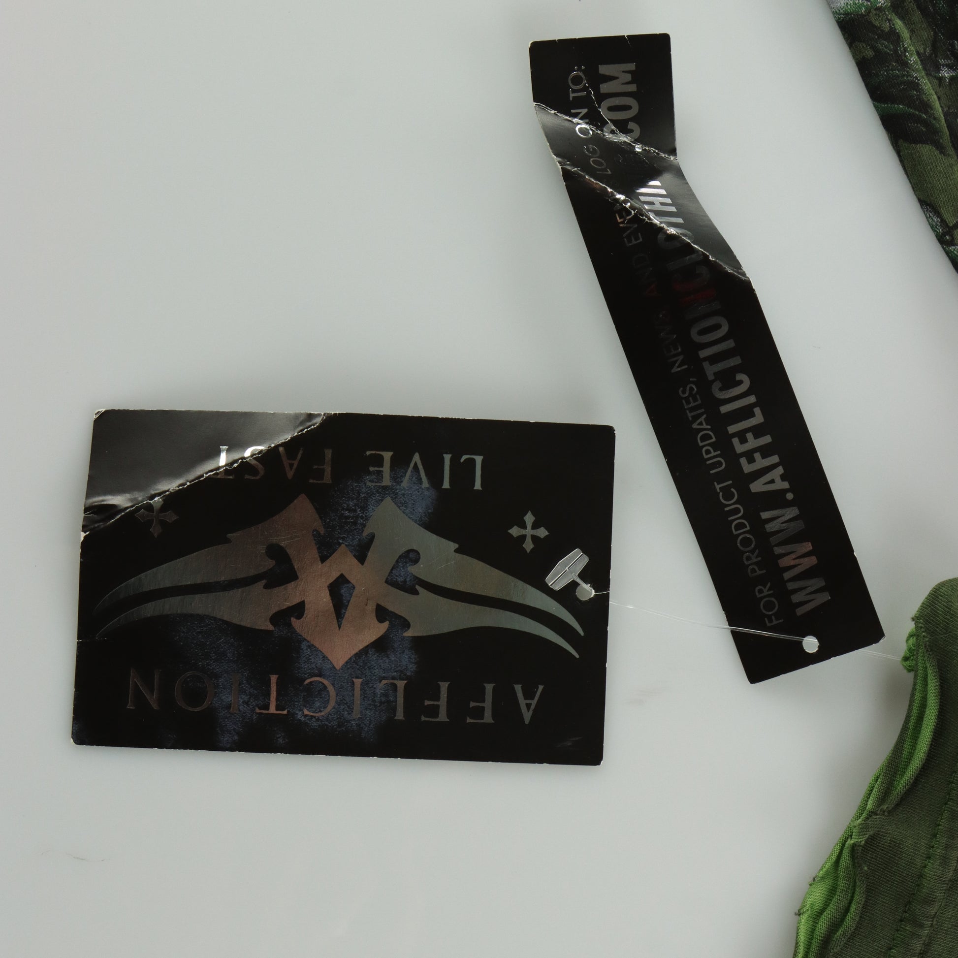 AFFLICTION Y2K Deadstock Distressed Rose Skull Green Gradient T-Shirt (XL)