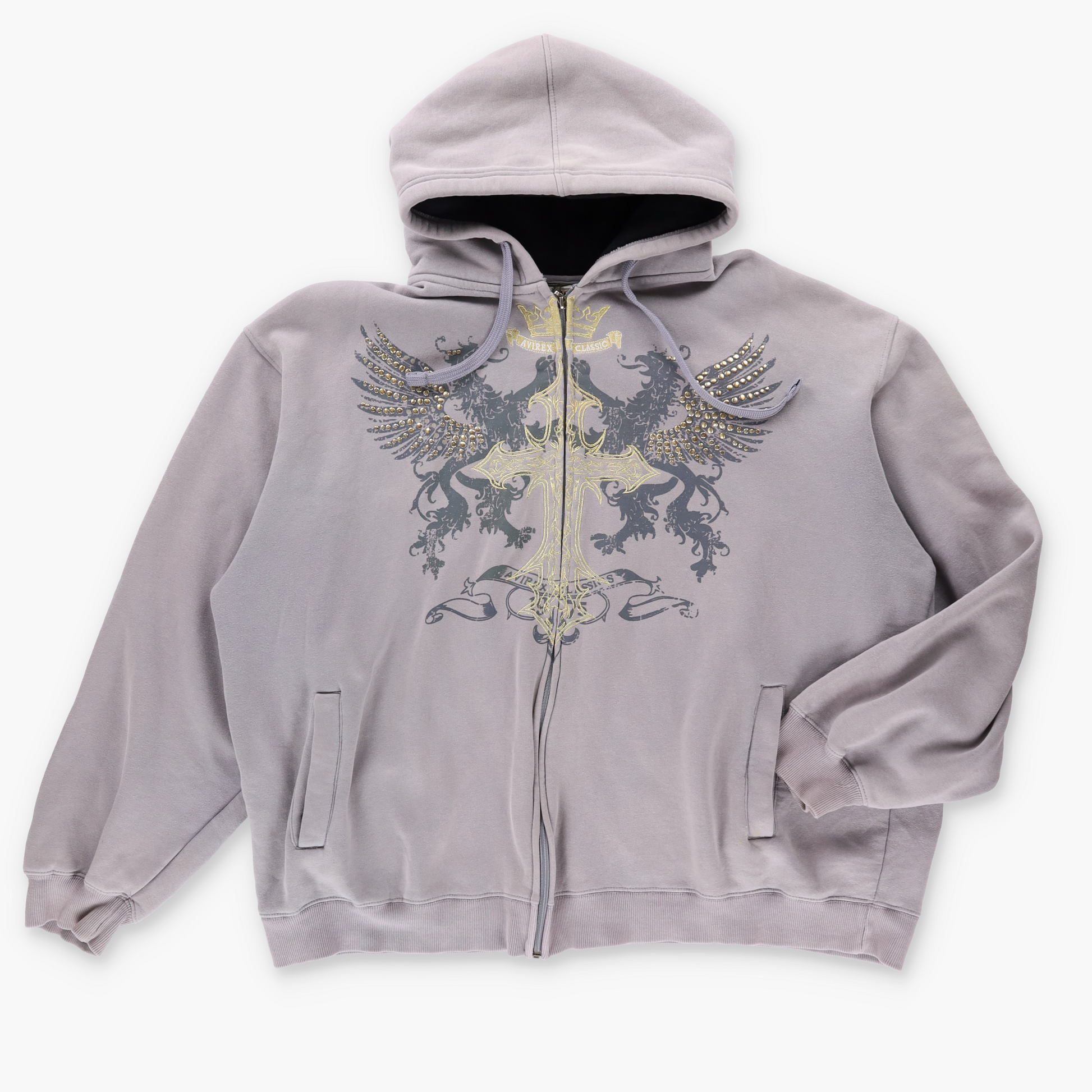 AVIREX Y2K Gold Cross Wing Bedazzled Zip Up Hoodie Sweatshirt (XXL-XXXL)