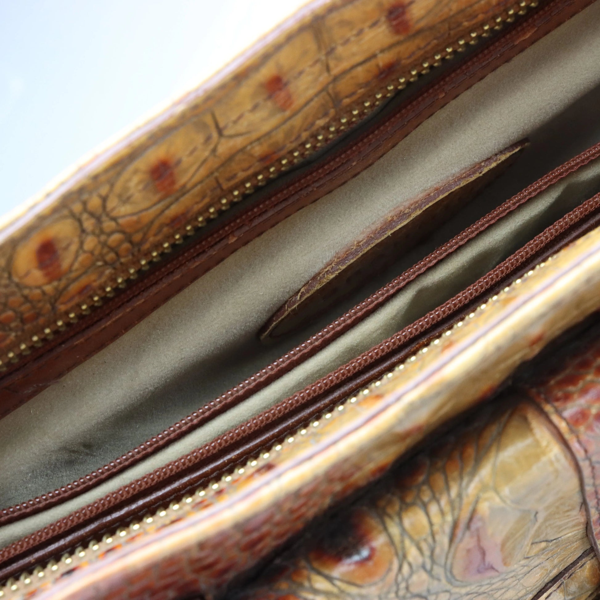 BRAHMIN Vintage 'Kirby' Crocodile Embossed Toasted Almond Leather Shoulder Bag