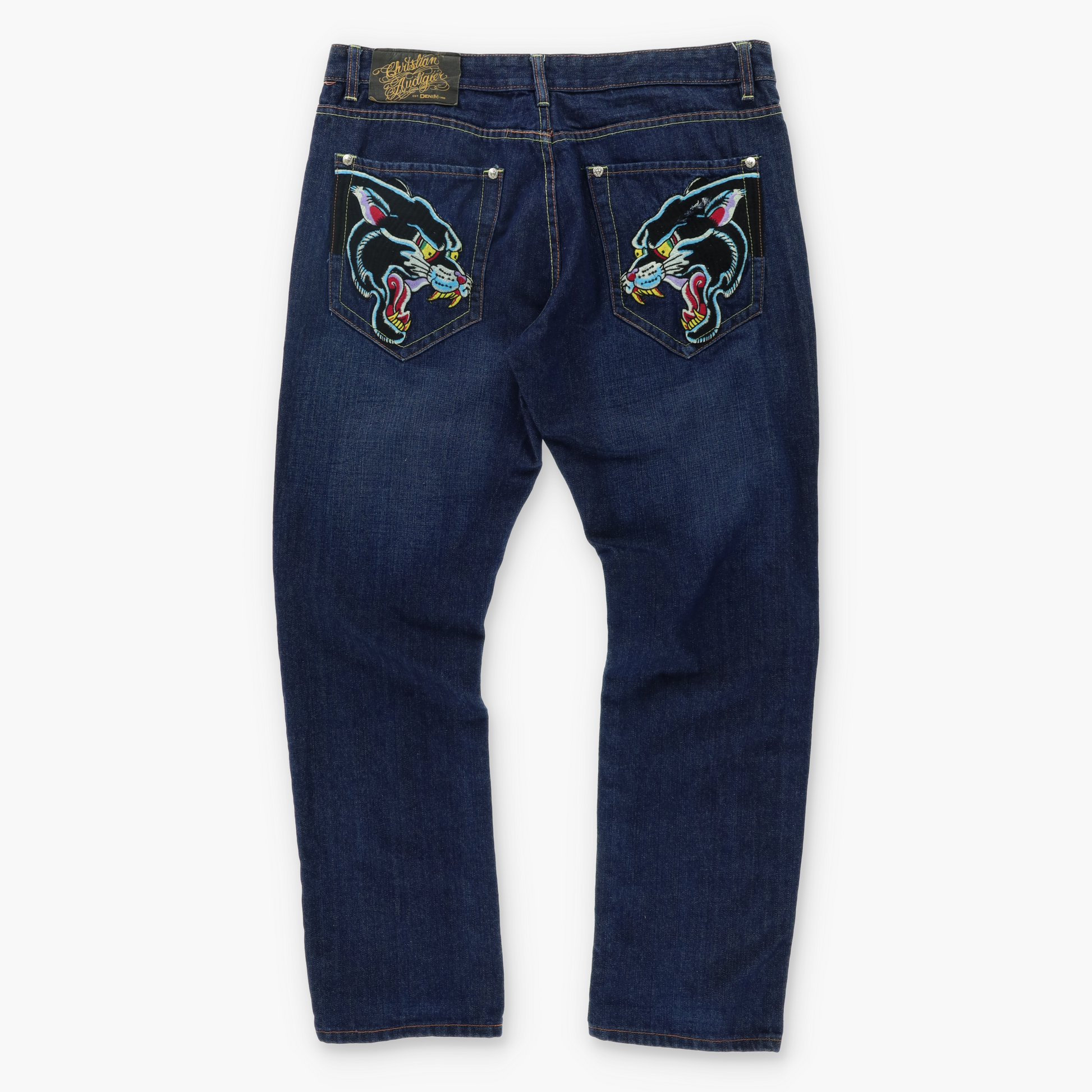 CHRISTIAN AUDIGIER Black Panther Embroidered Y2K Jeans (38)