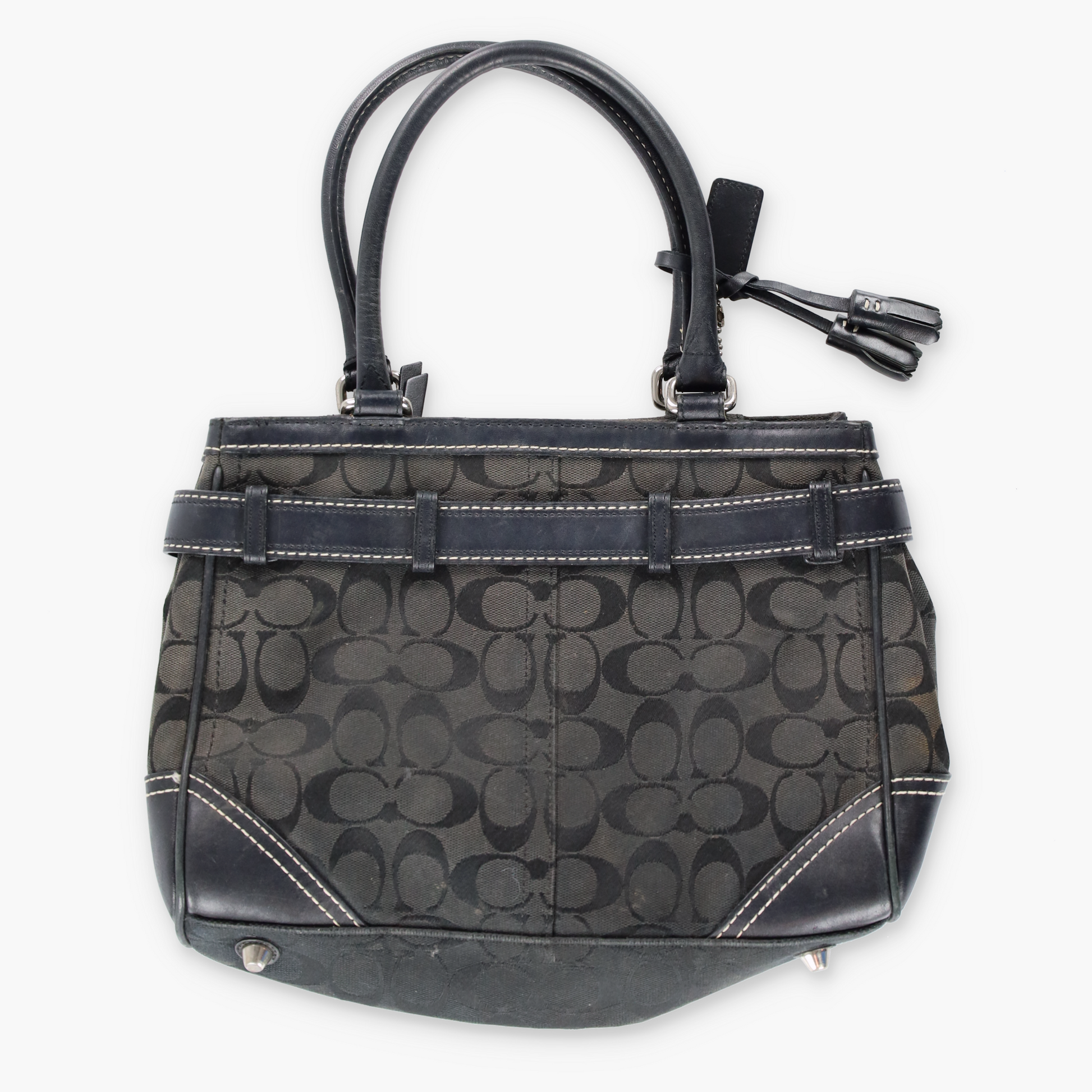 COACH 8K06 Signature Belted Black Canvas Shoulder Tote Bag