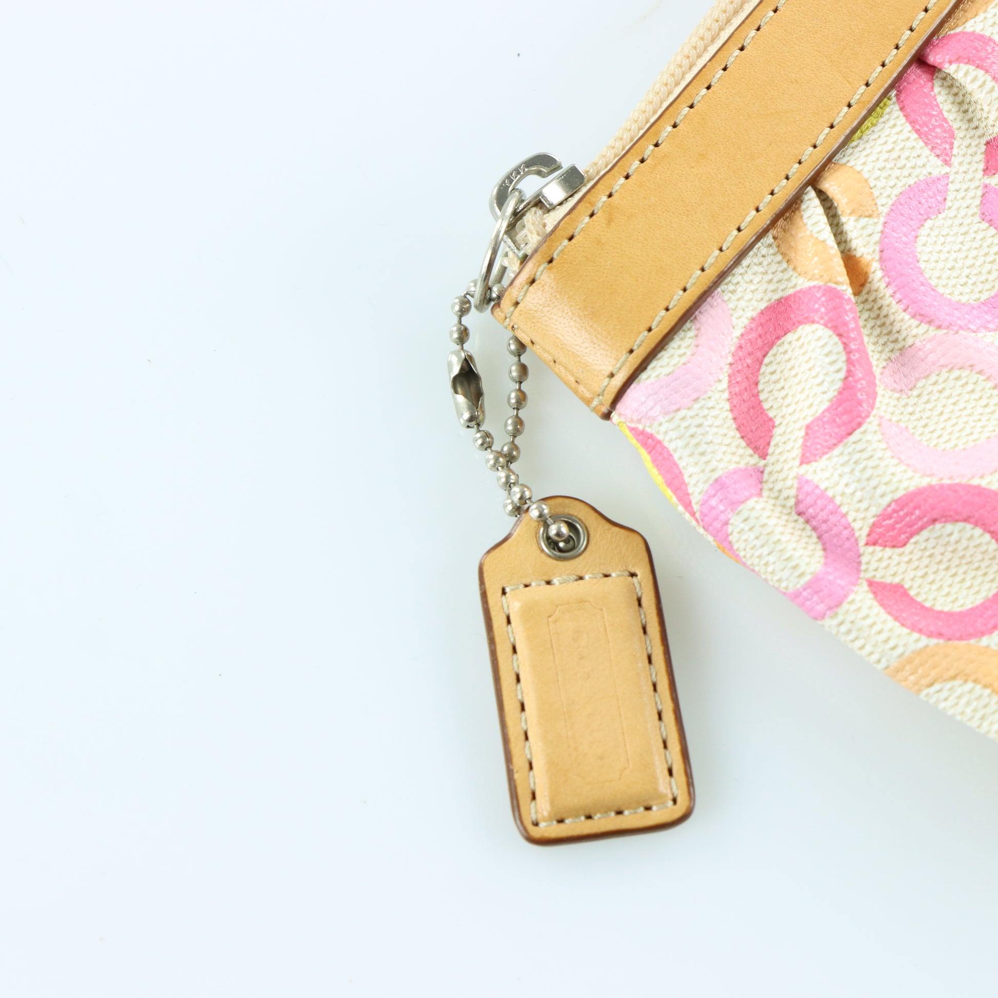 COACH Pink Multicoloured Signature C Wristlet Pouch Purse