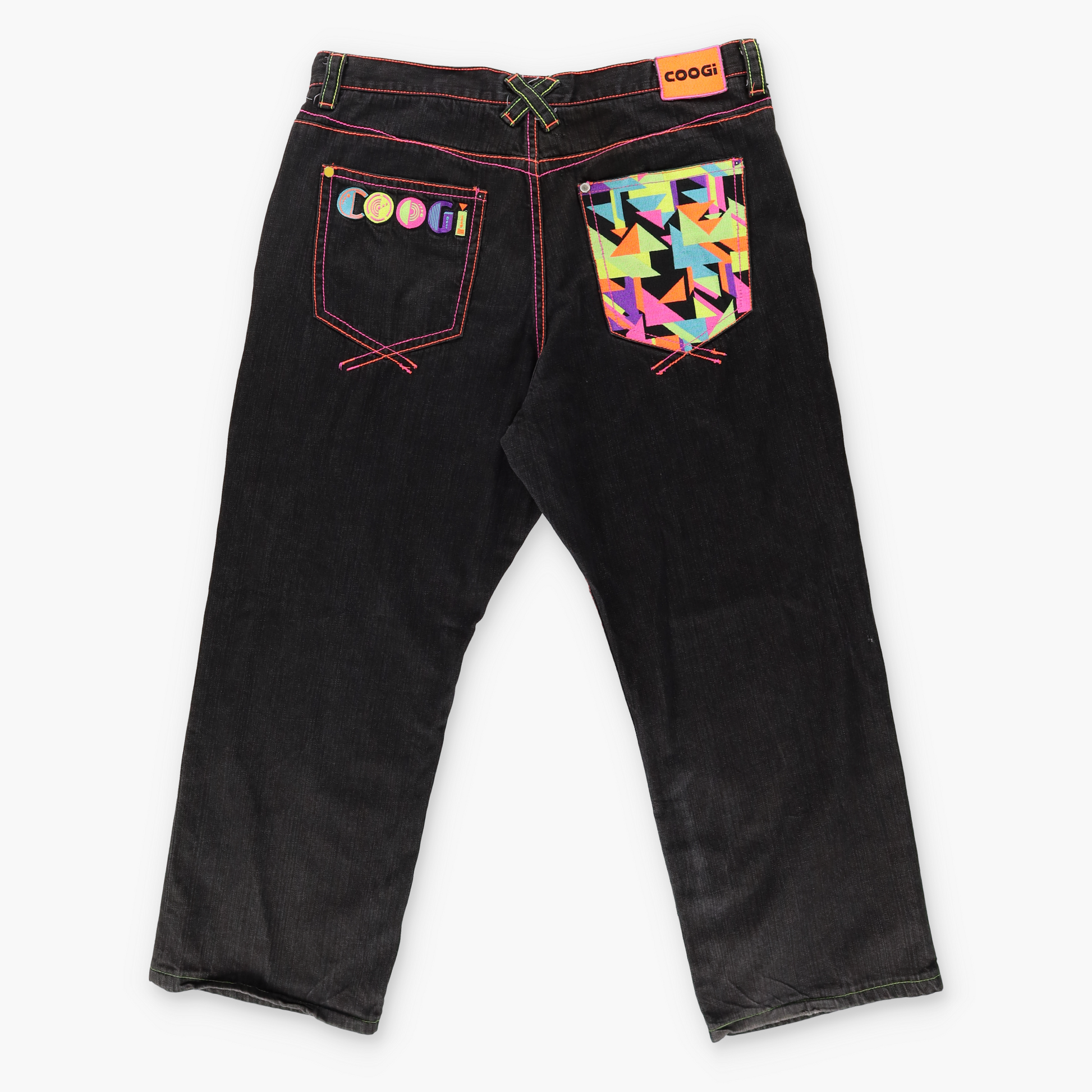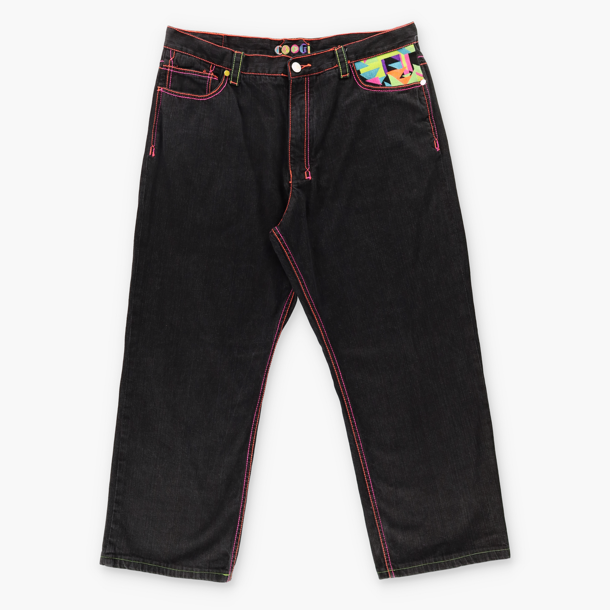 COOGI Y2K Fluro Stitch Embroidered Spell Out Logo Black Jeans (42/35)