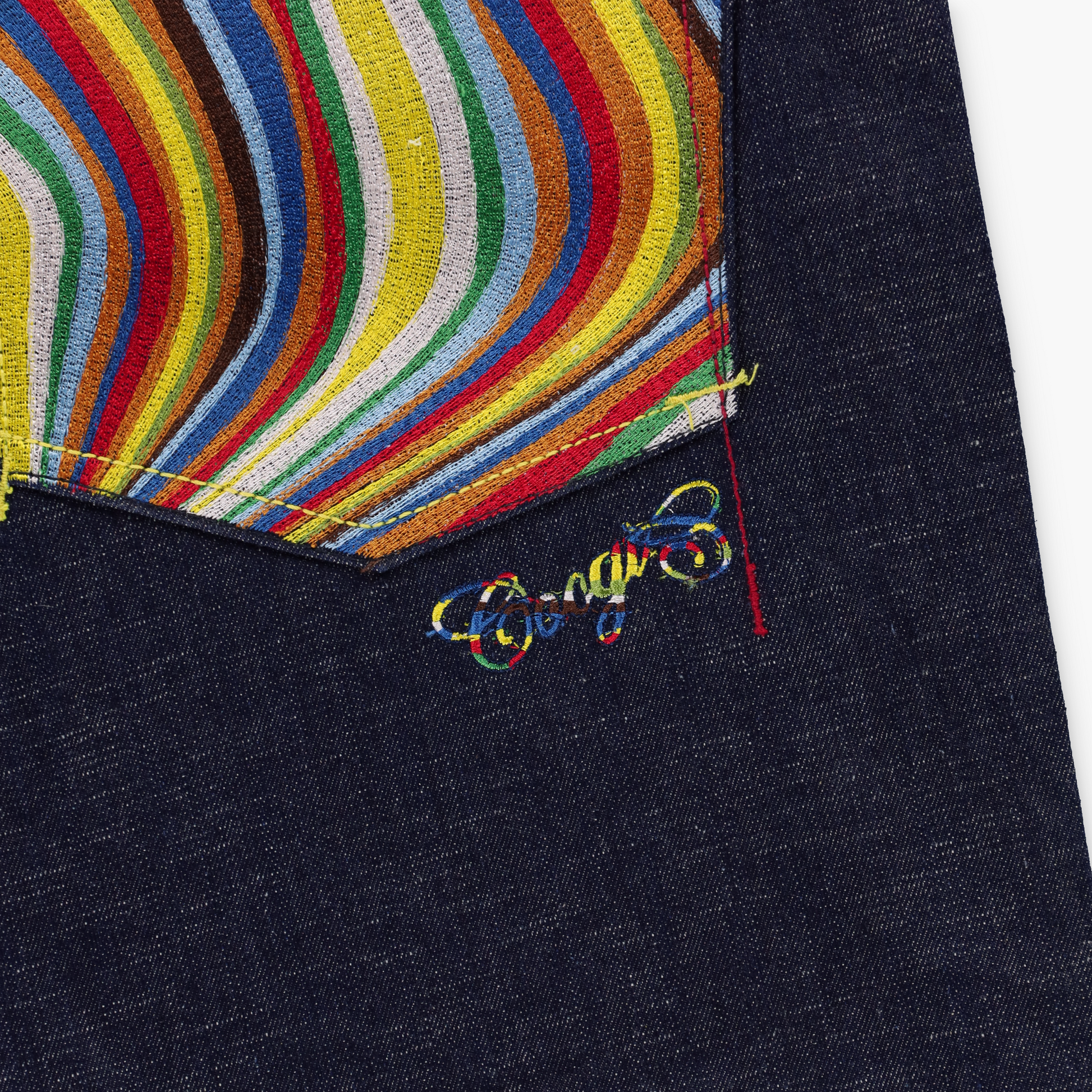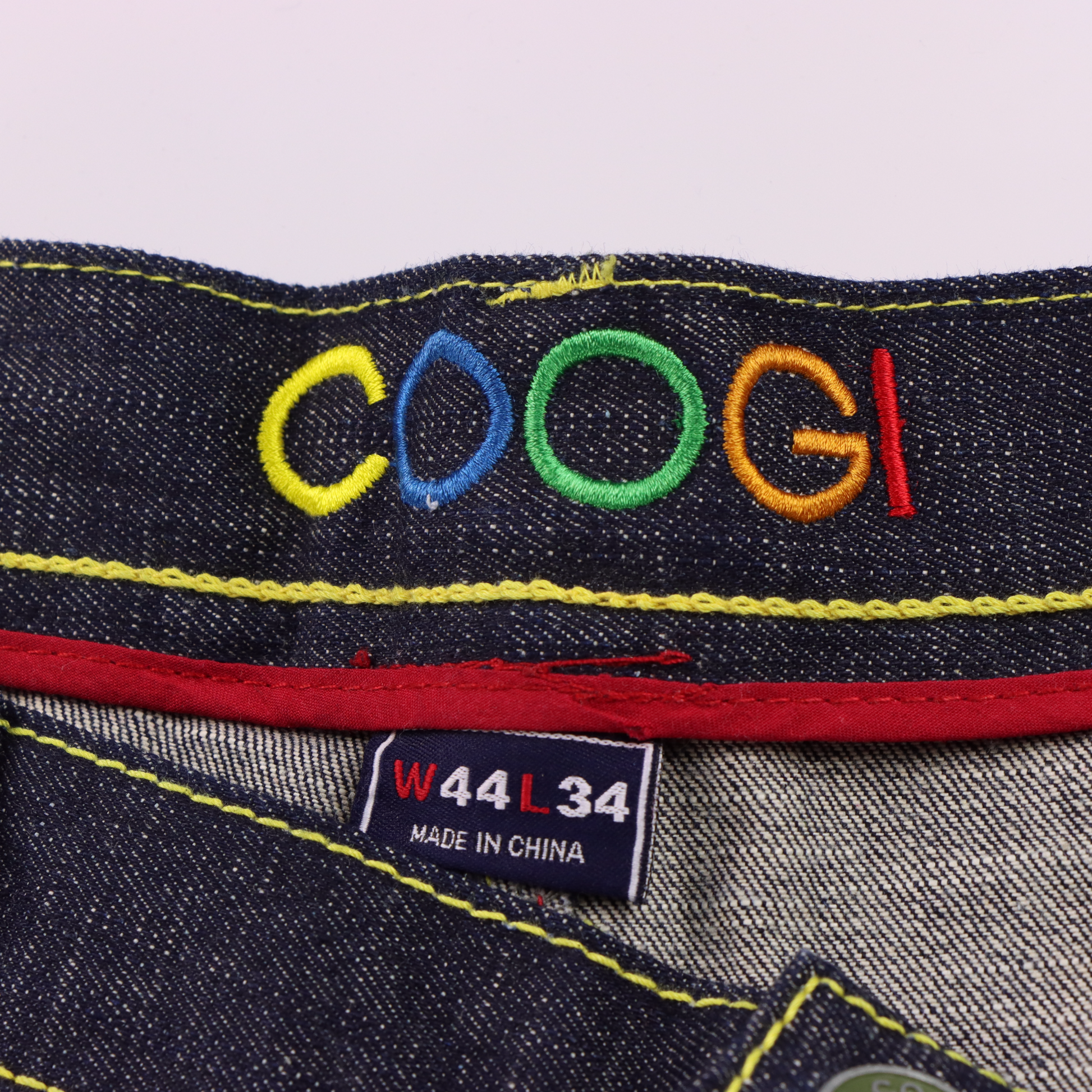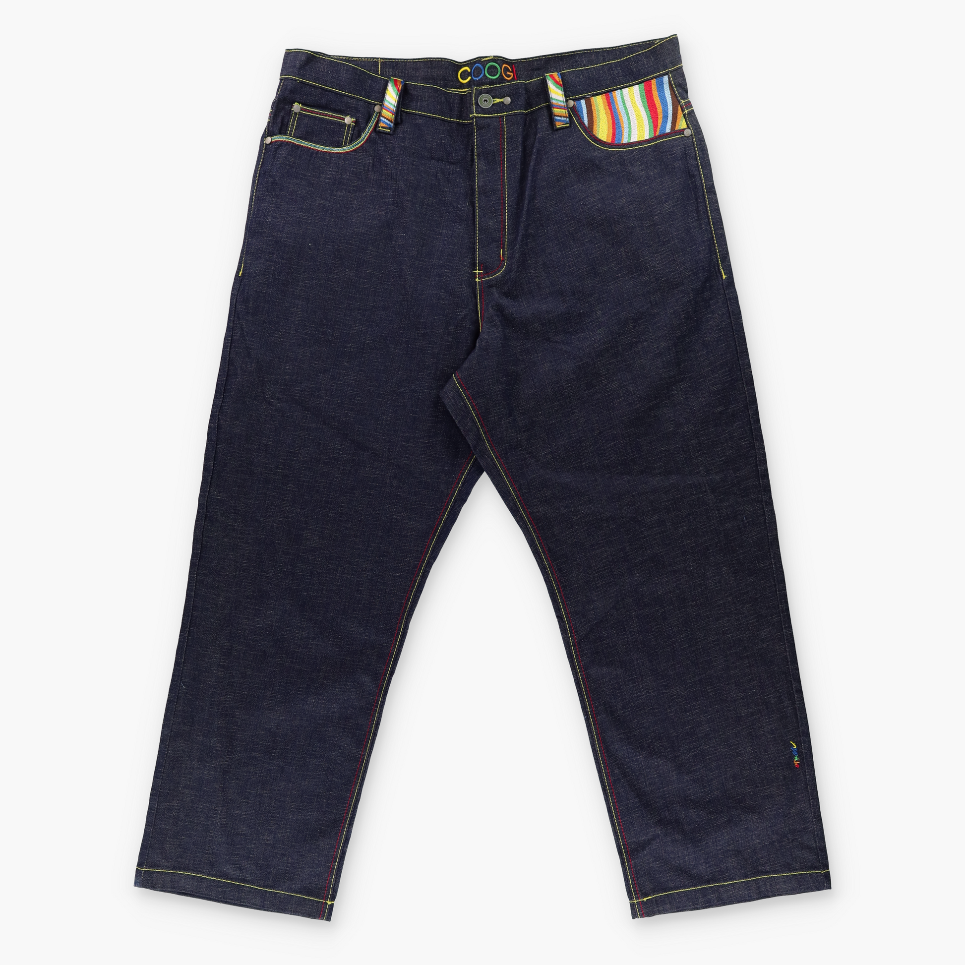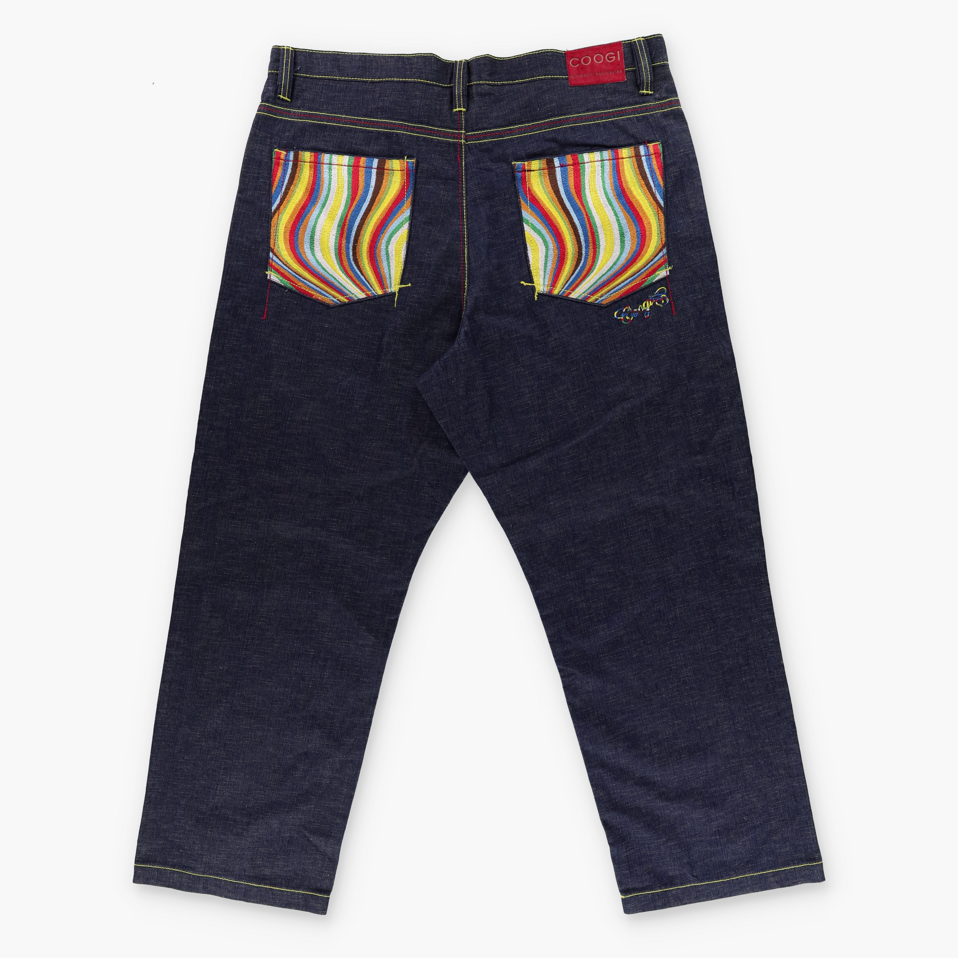COOGI Rainbow Embroidered Coloured Stitching Dark Wash Jeans (44 x 34)