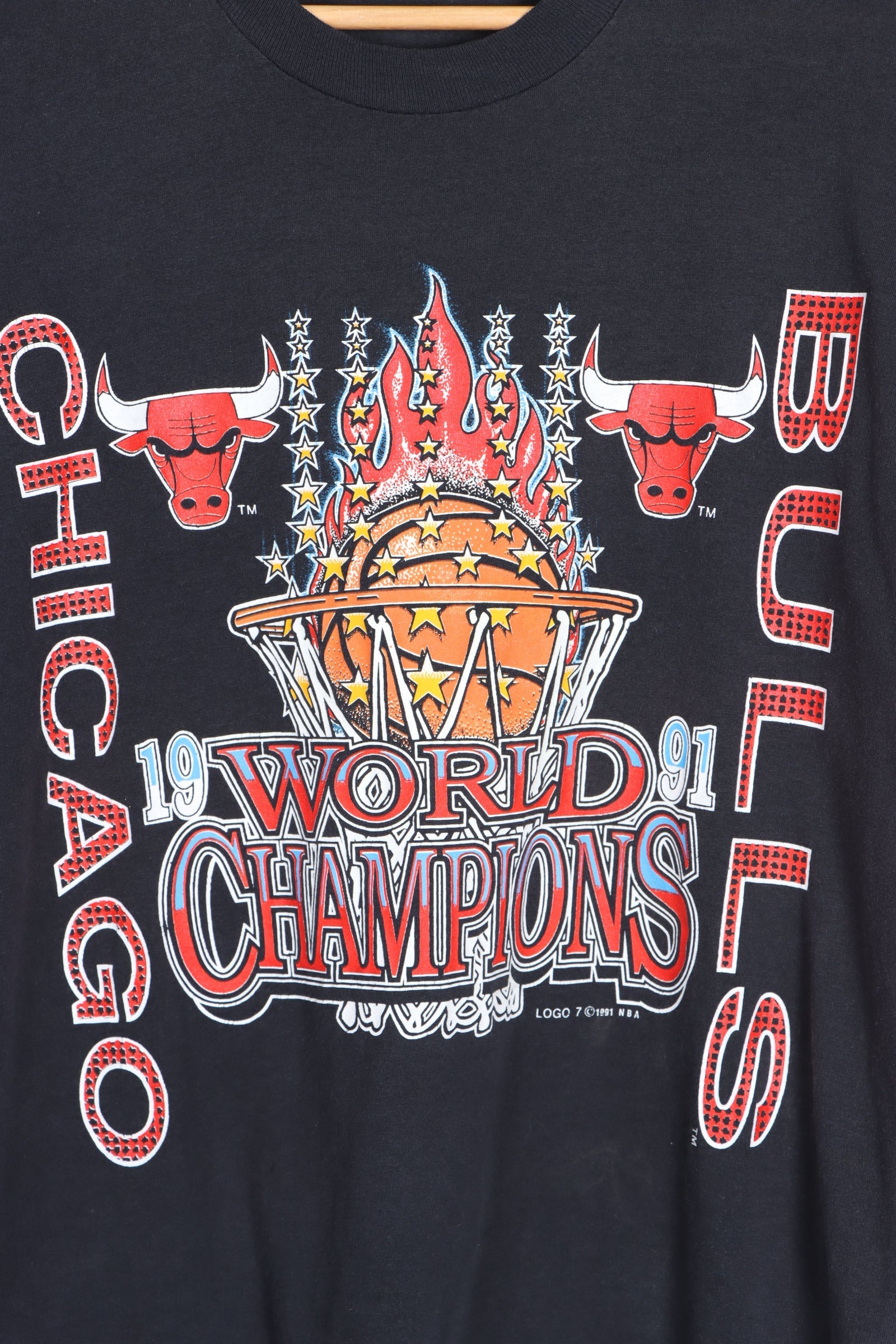 Vintage NBA 1991 Chicago Bulls World Champions LOGO 7 T-Shirt (M-L)