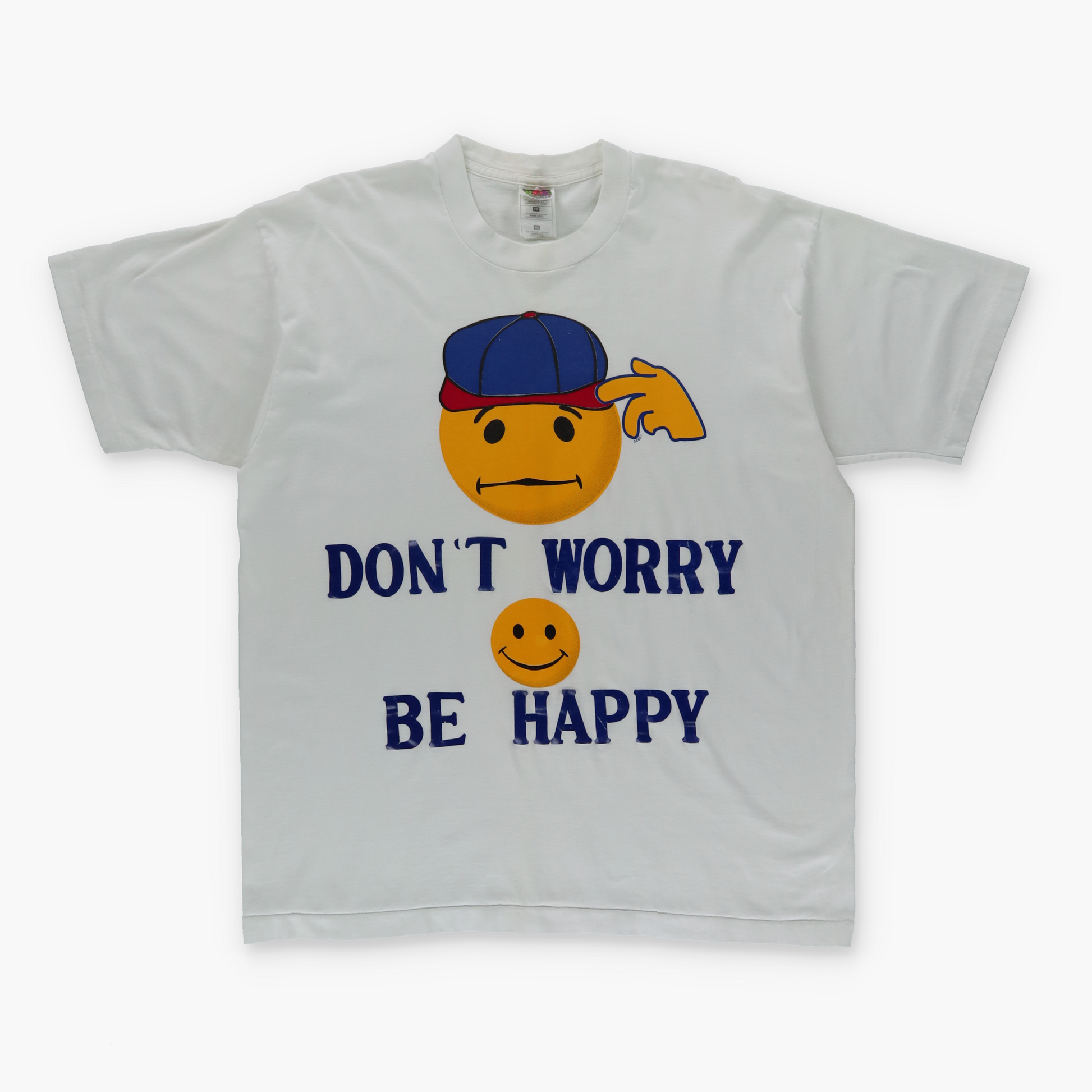Vintage 'Don't Worry Be Happy' Emoji USA Made White Tee (XL)