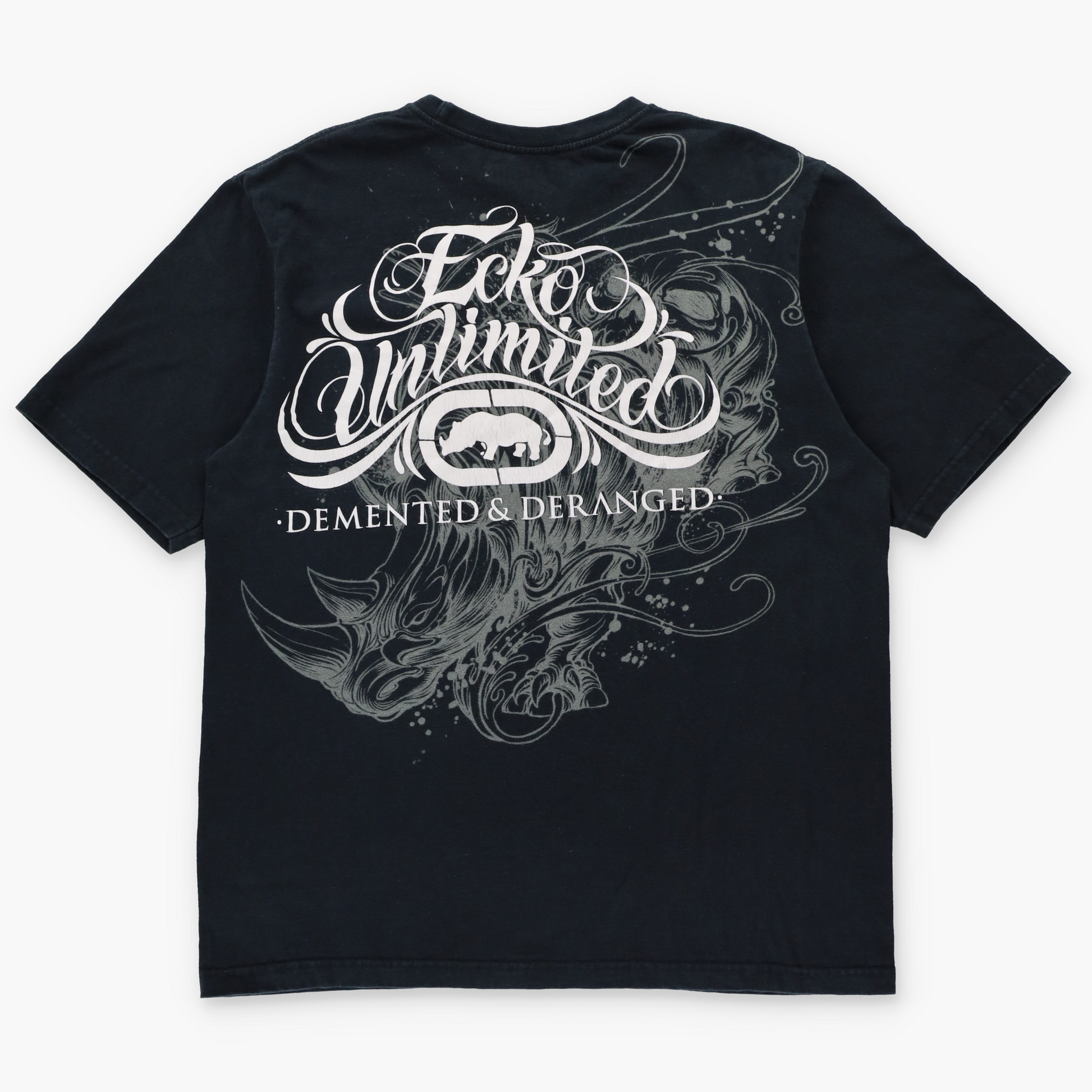 ECKO UNLTD "Demented & Deranged" Double Sided Black Y2K Style T-Shirt (XL-XXL)
