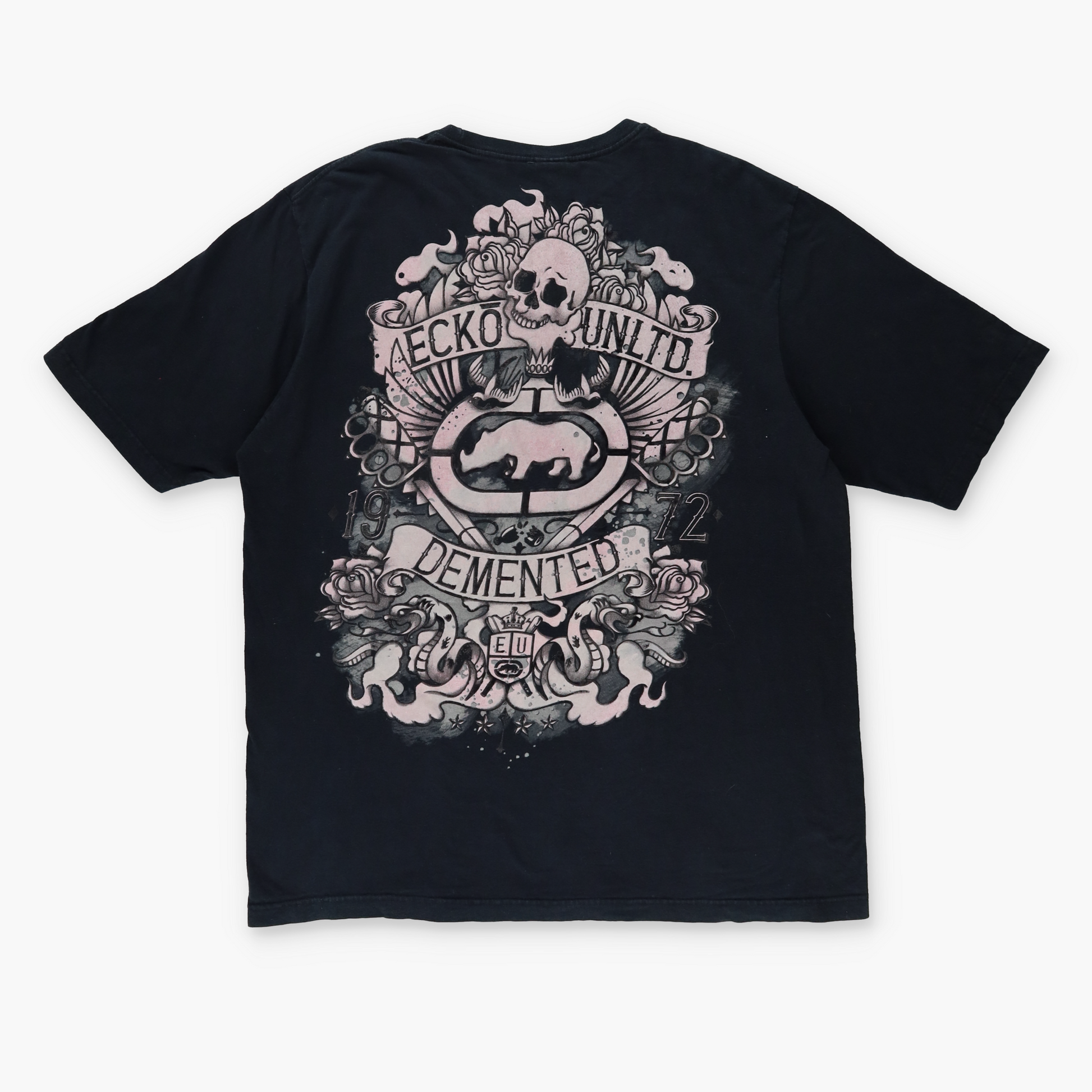 ECKO UNLTD Y2K 'Crush, Destroy' Velour Logo Skull Black & White Tee (XX)