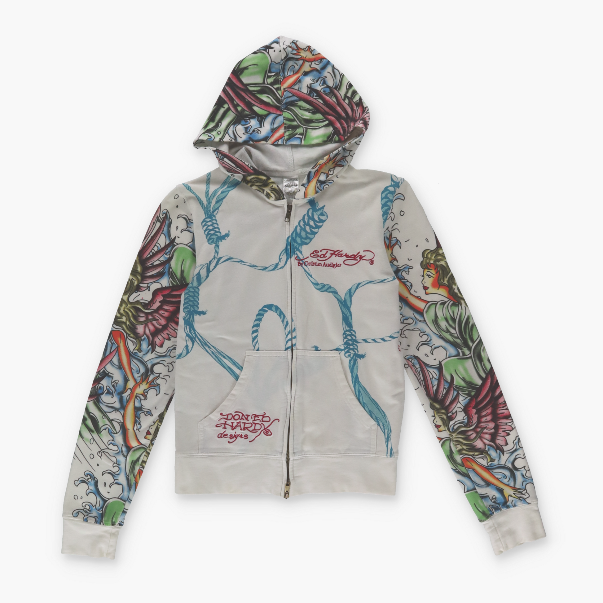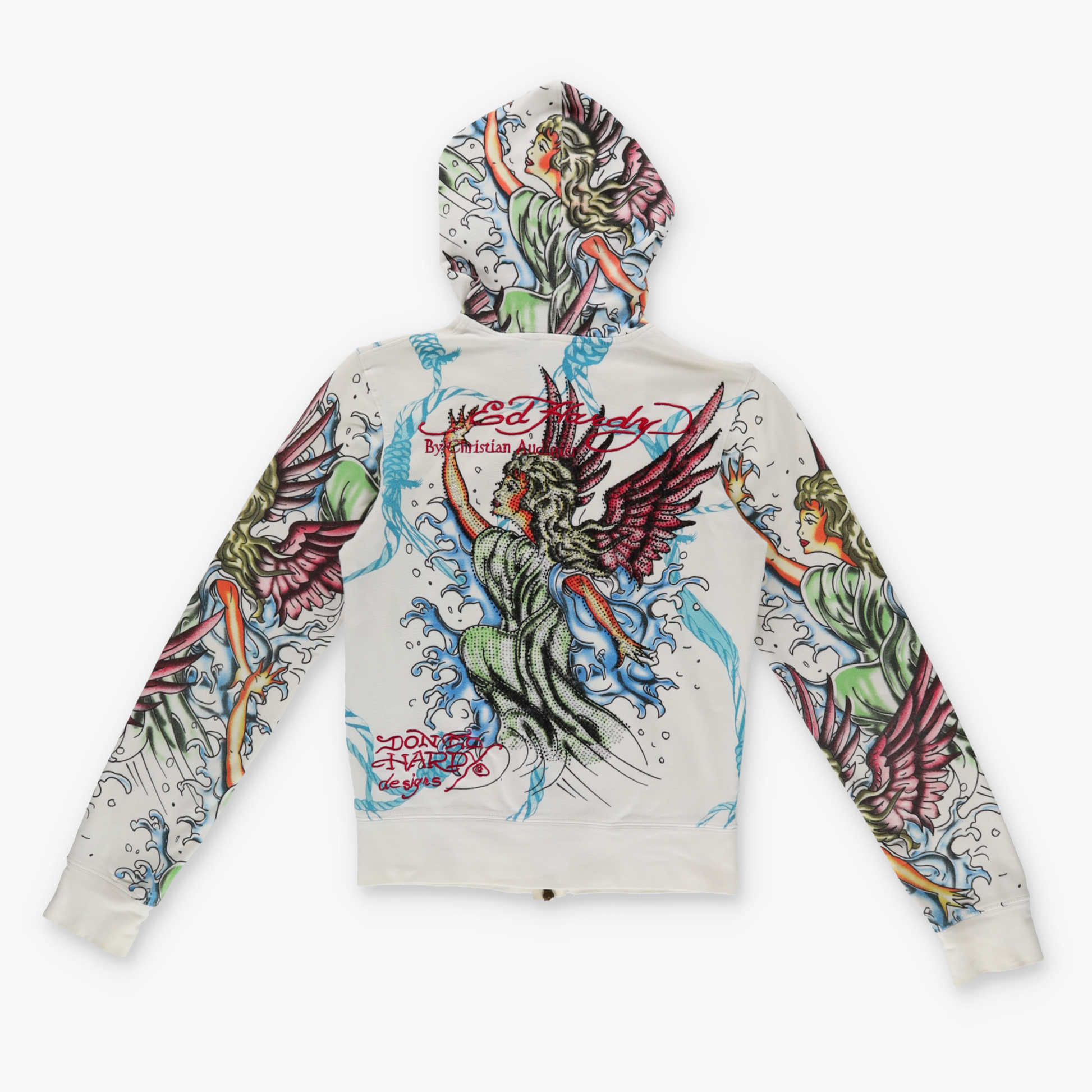 ED HARDY Christian Audigier Y2K Embellished Colourful Goddess Zip-Up Sweatshirt (S)