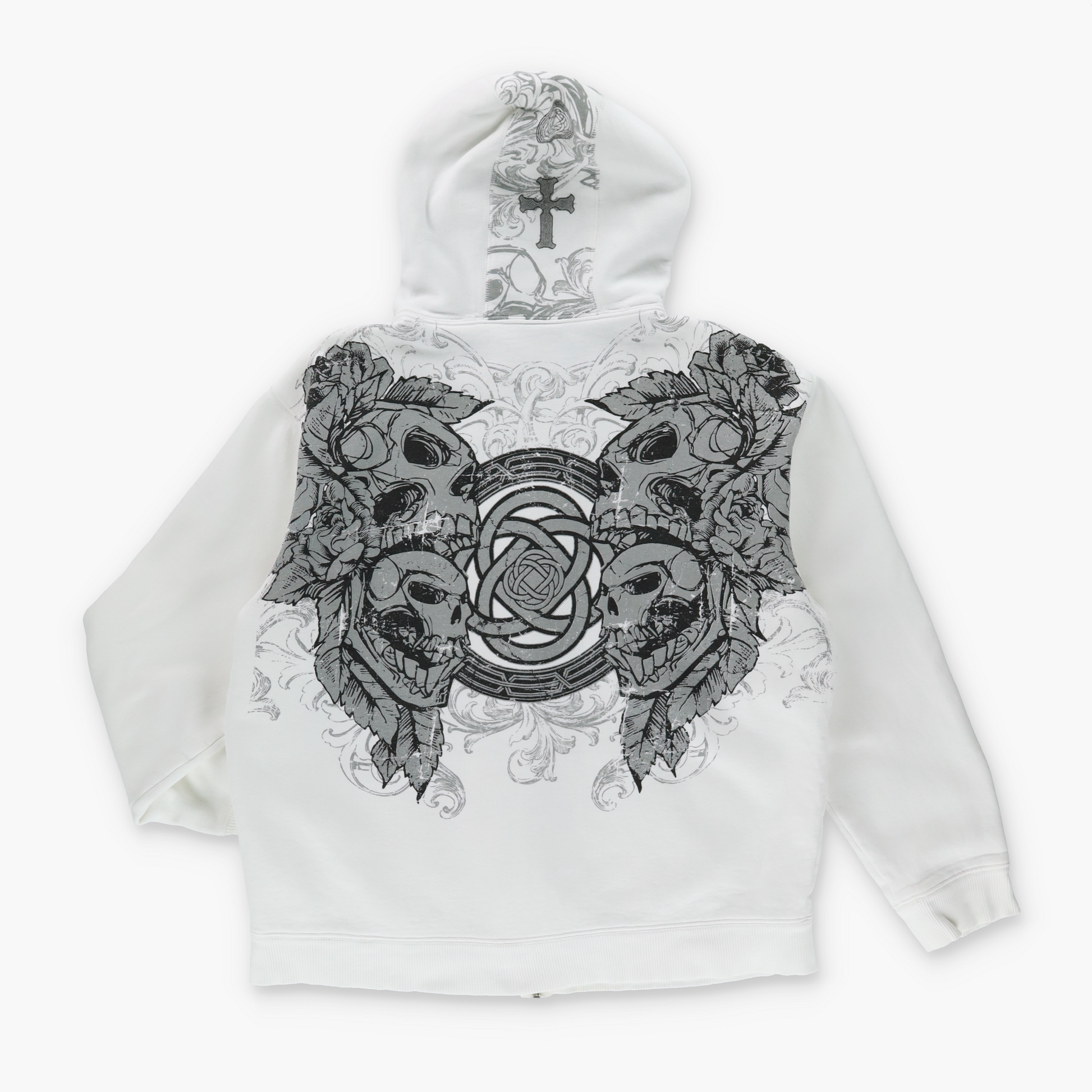 ELITE MMA Y2K Skull Grunge Cross Zip Up Hooded Sweatshirt (L-XL)