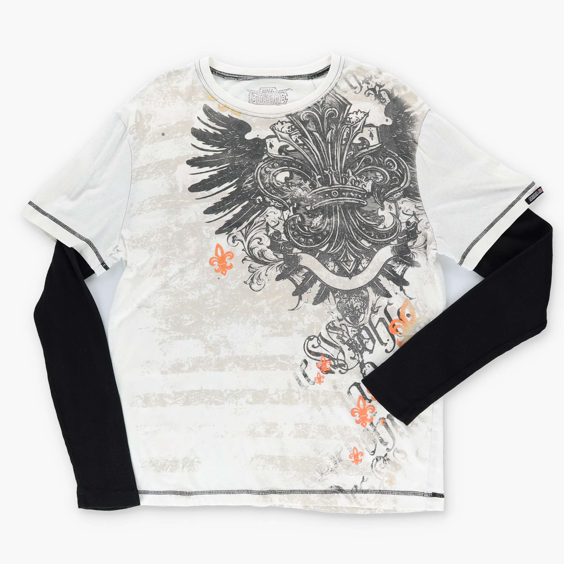 ELITE MMA Y2K Grunge Wing Graphic Thermal Tee (L)