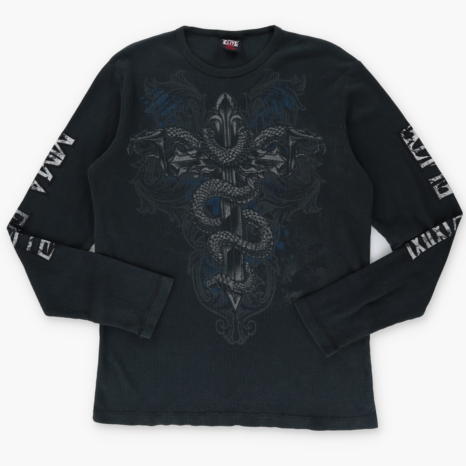 MMA ELITE Y2K Serpent Cross Grunge Long Sleeve Black Thermal Tee (L)