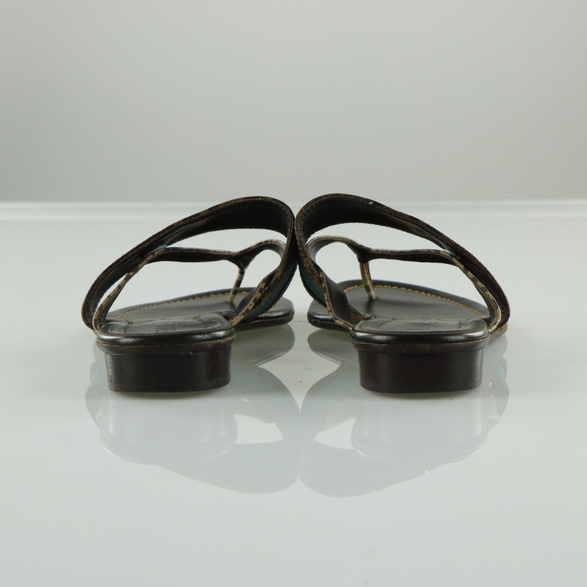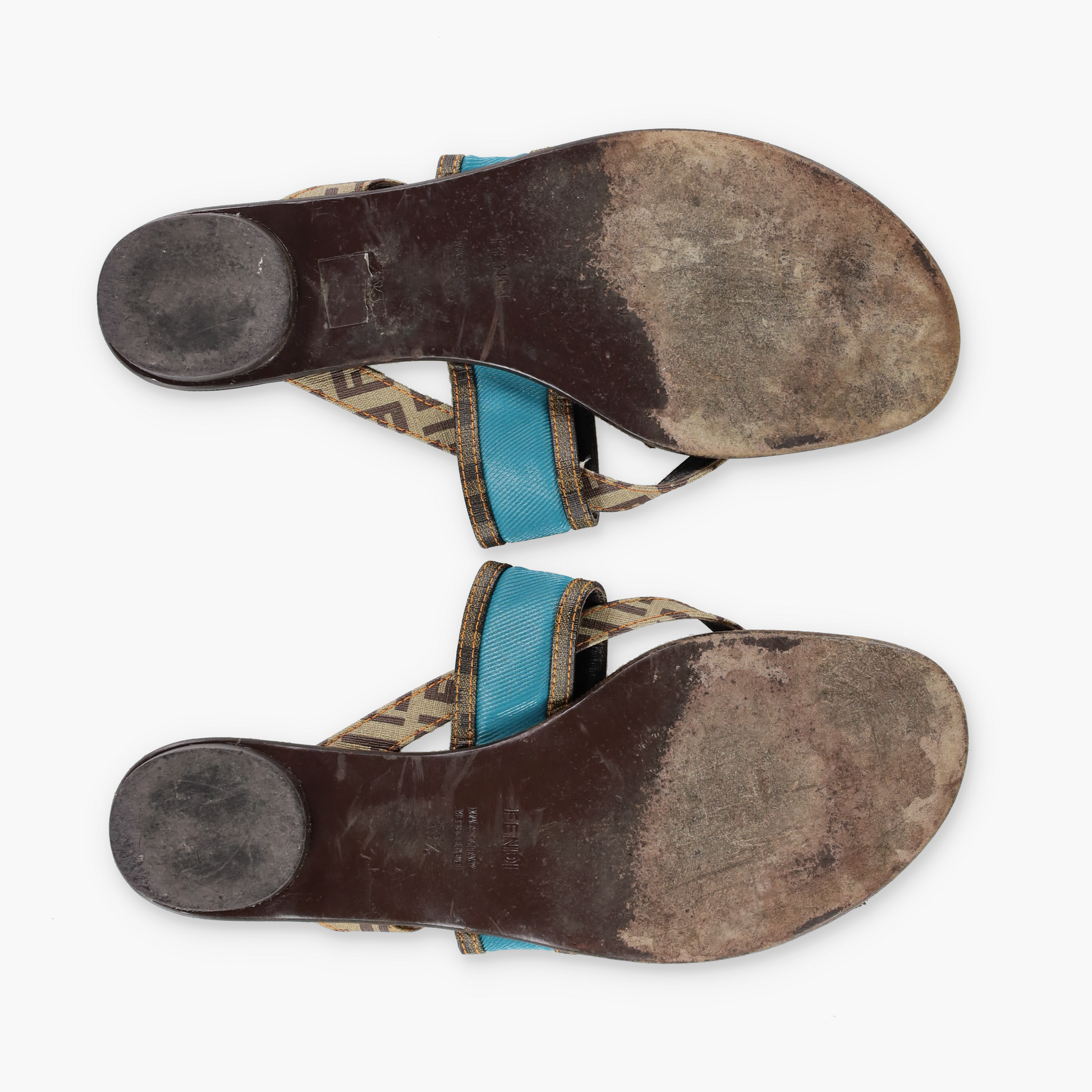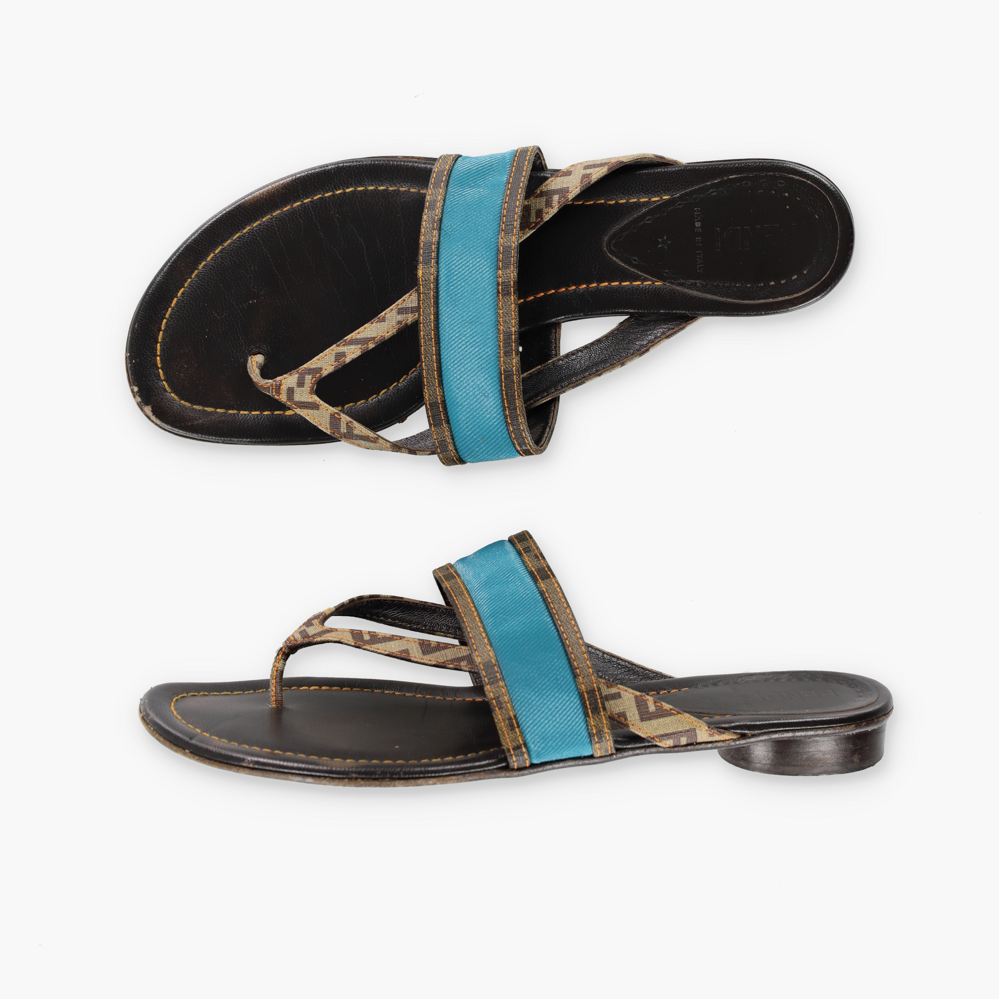 FENDI Italian Made Turquoise & Brown Flat Leather Sandals (39.5)
