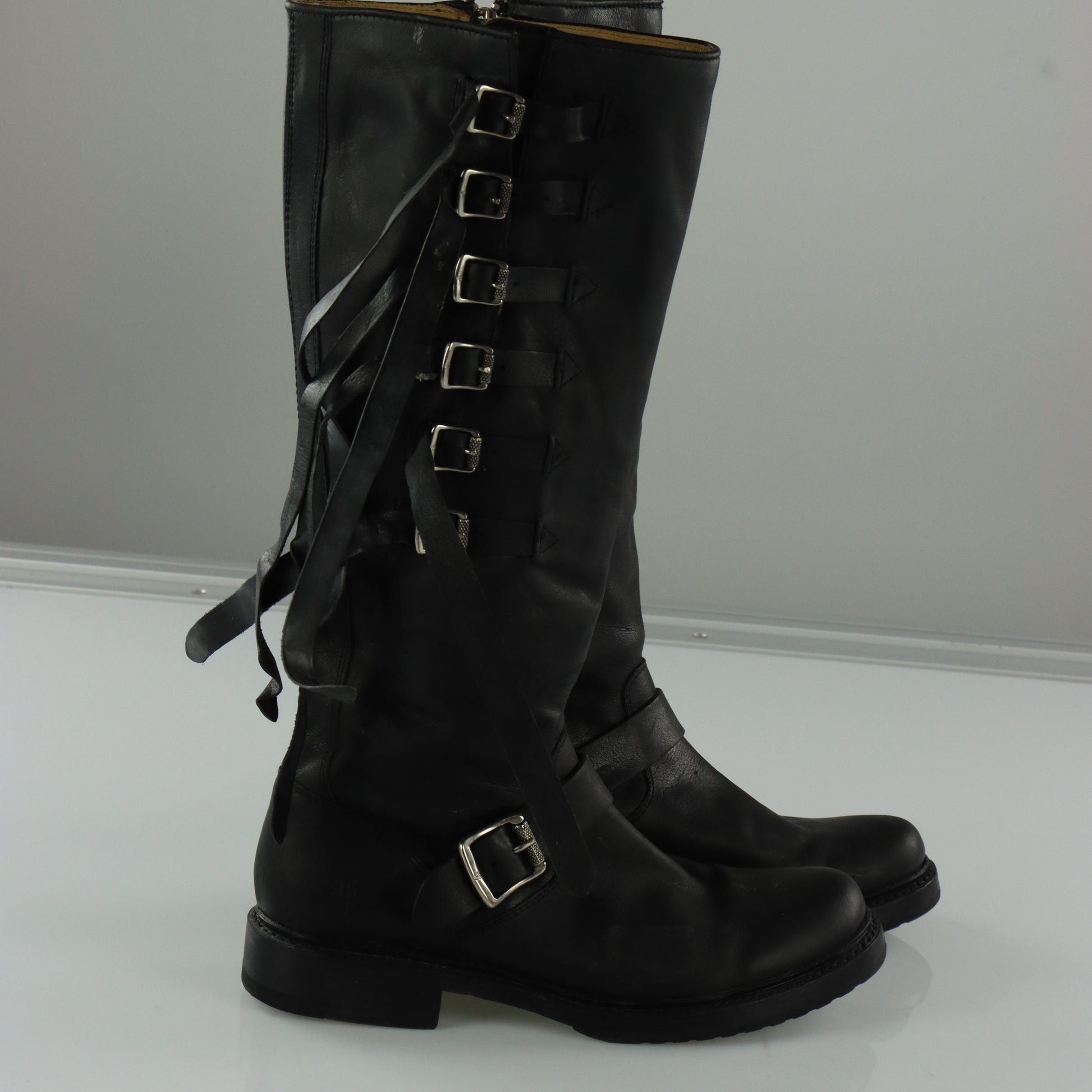 FRYE 'Veronica' Strap Tall Zip Up Black Buckle Boots (8)