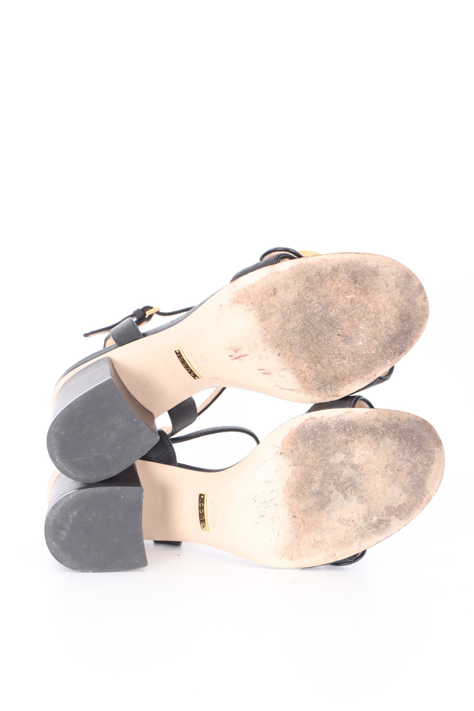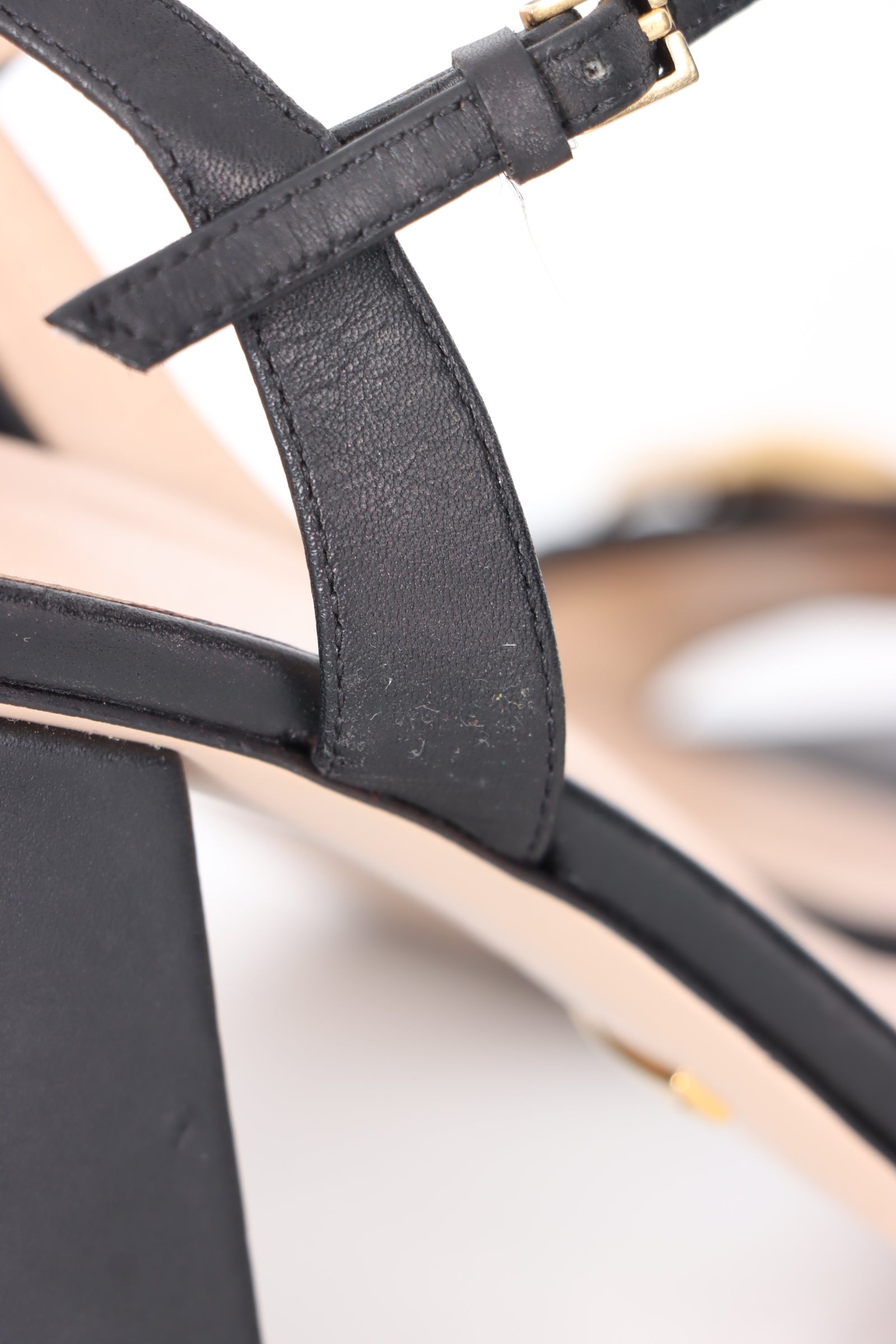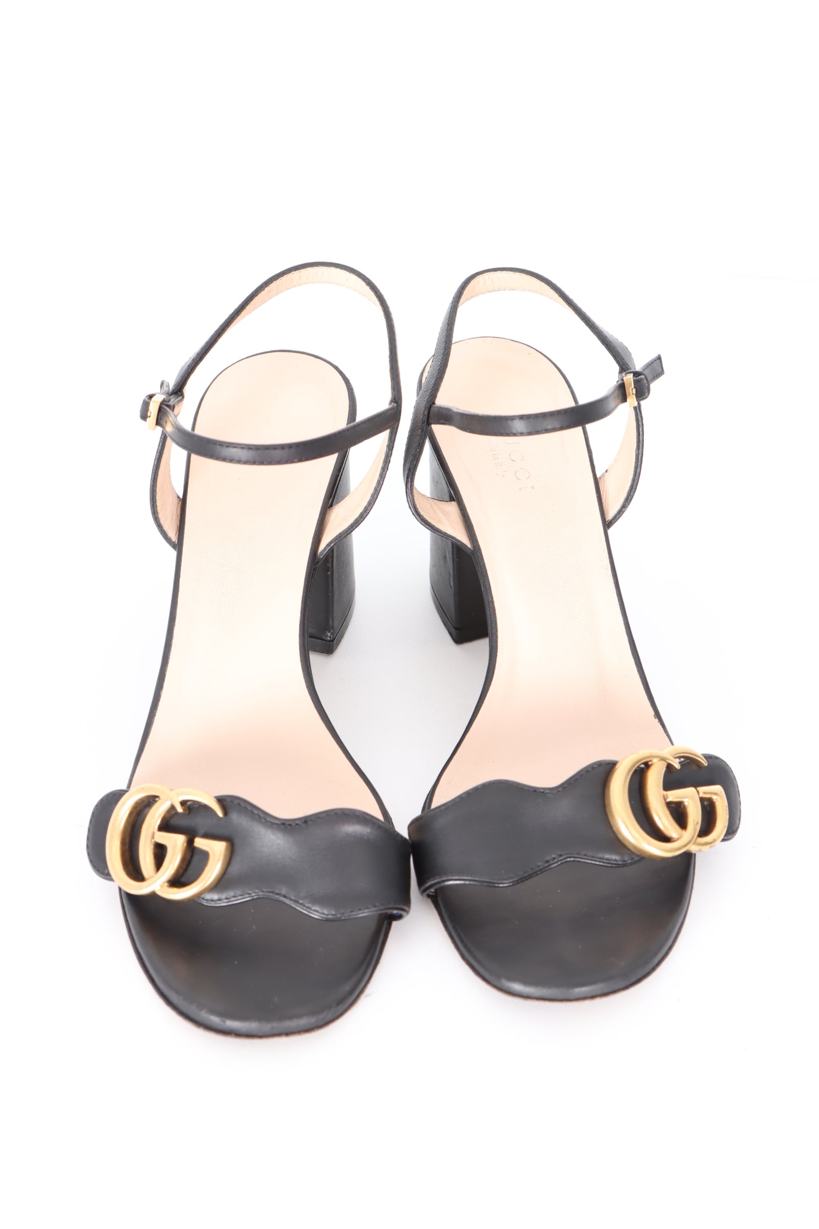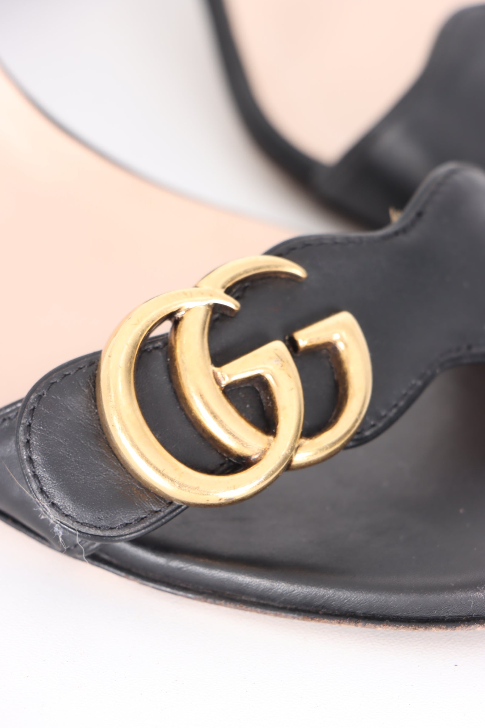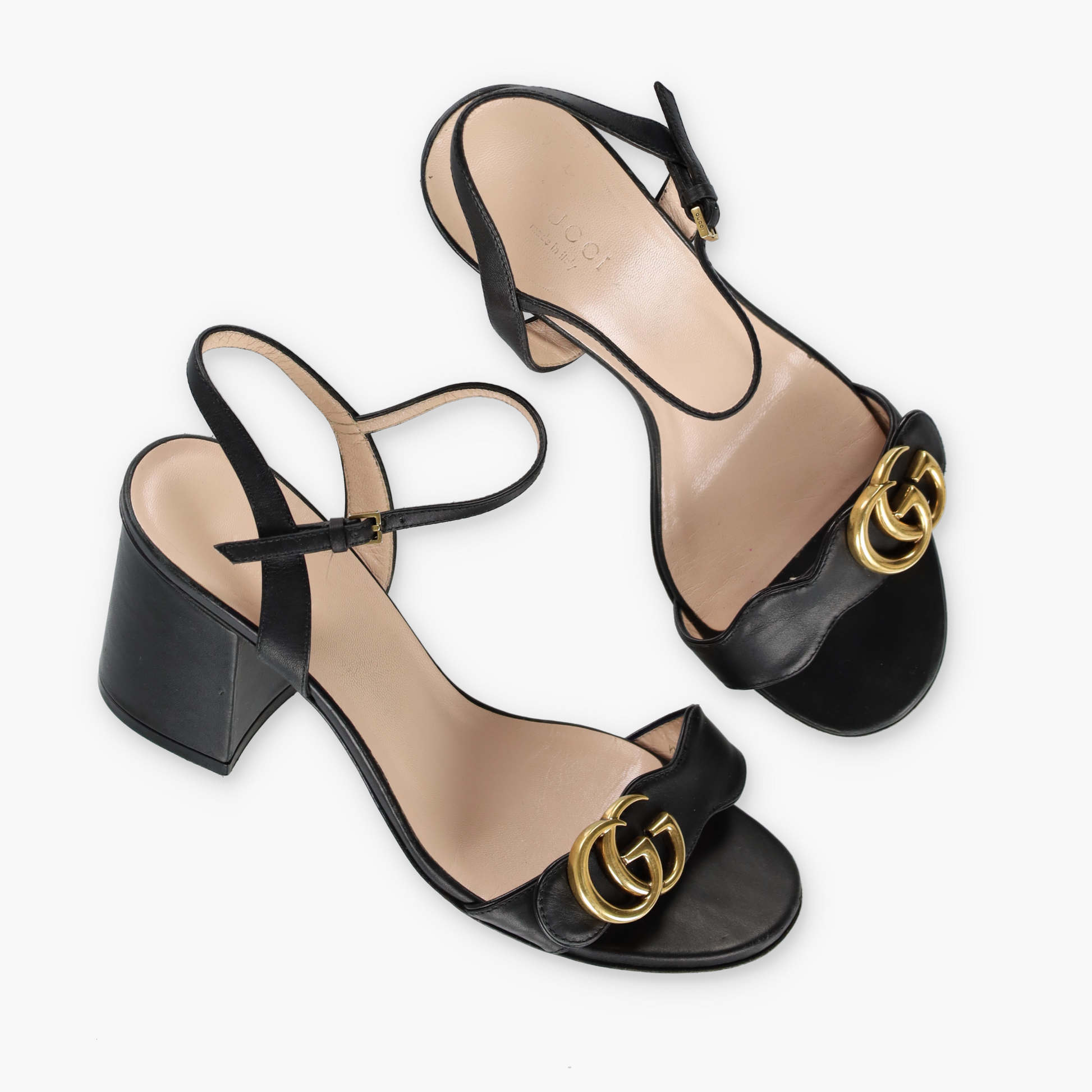 GUCCI GG Marmont Mid-Heel Black Leather Sandals (37)
