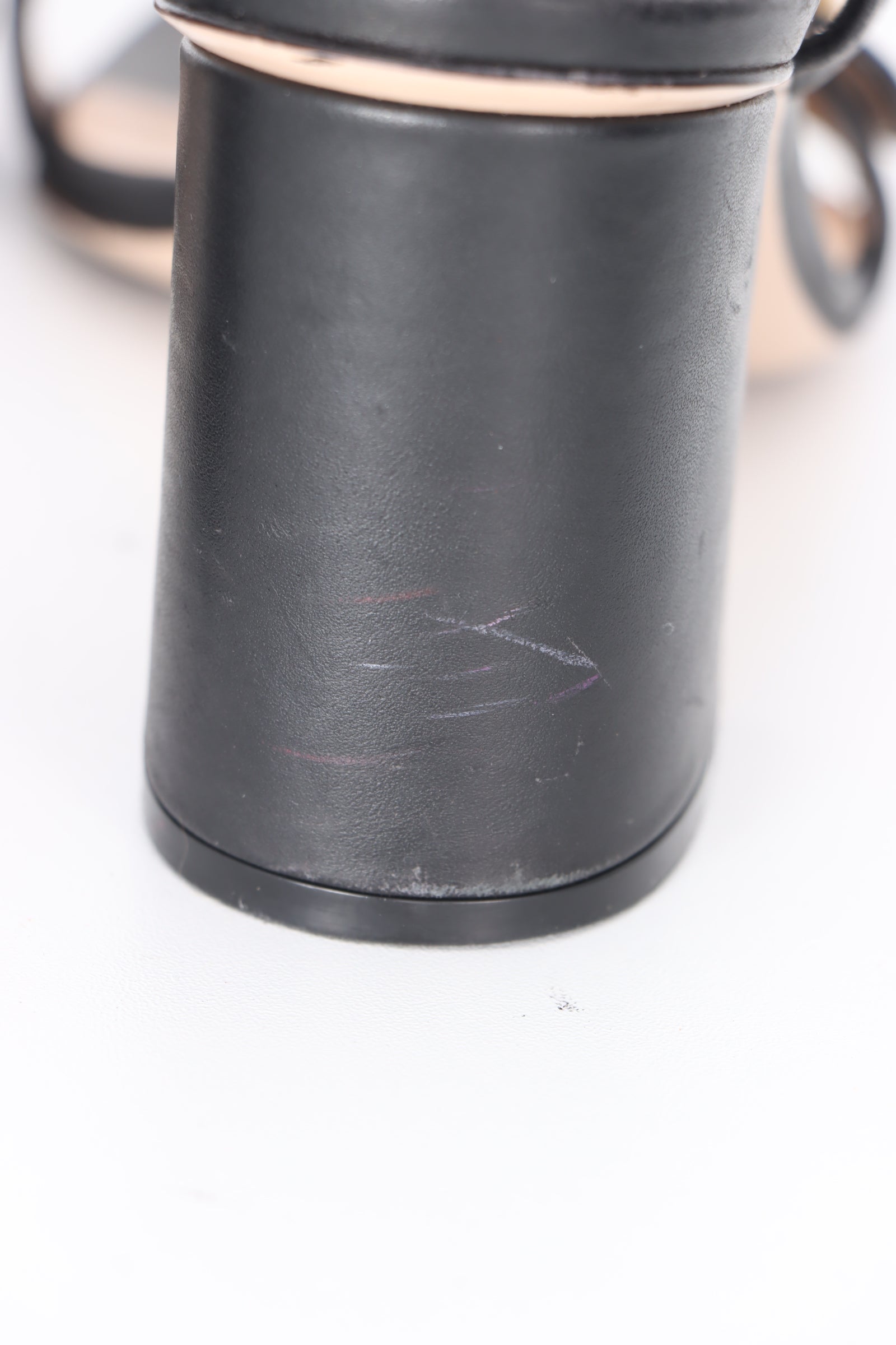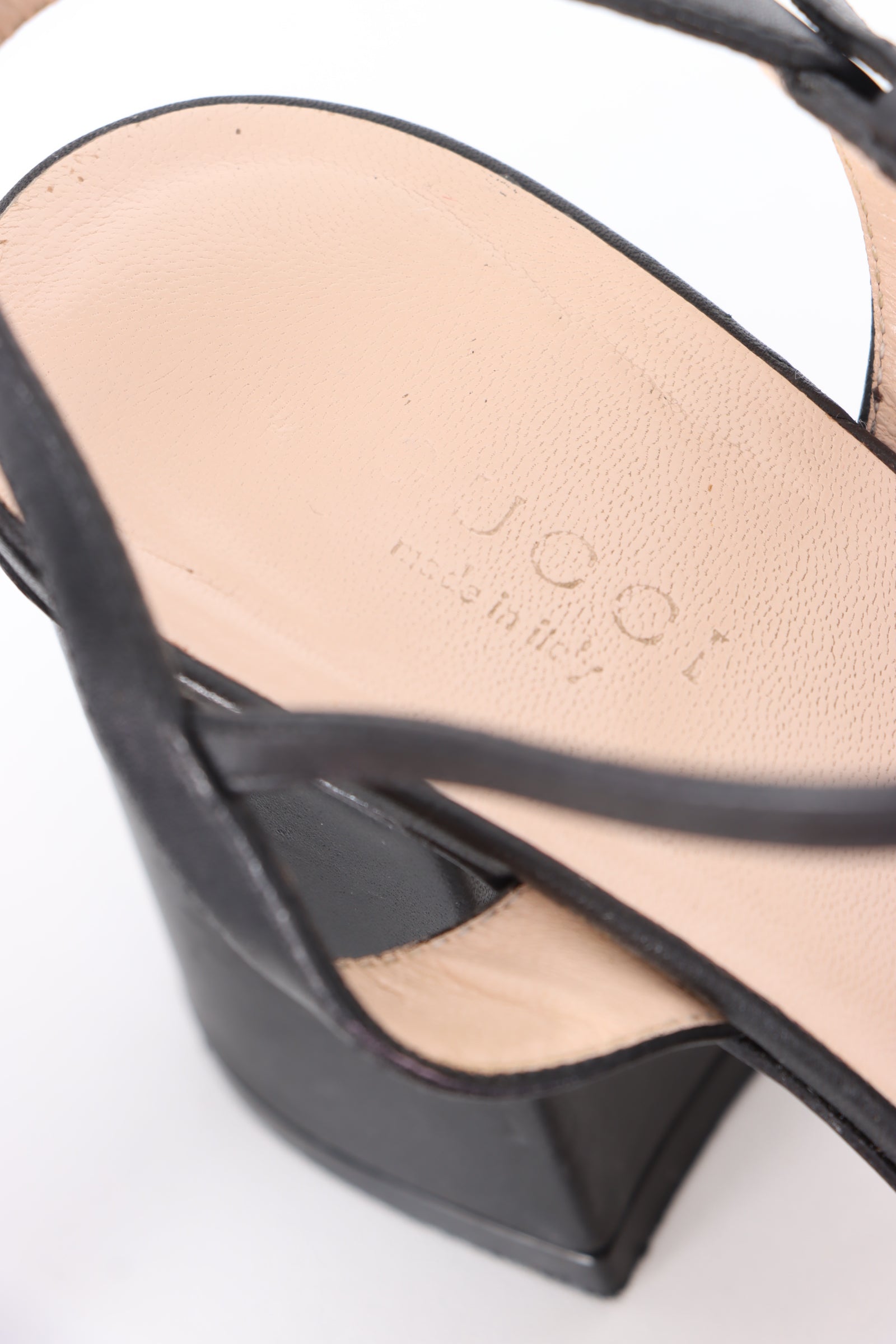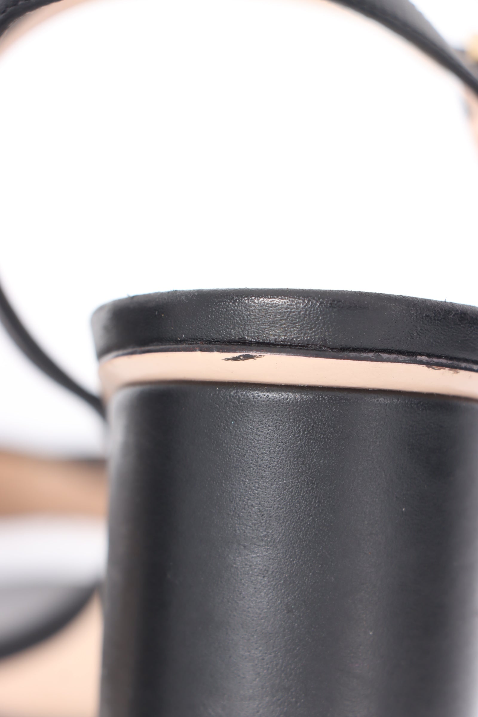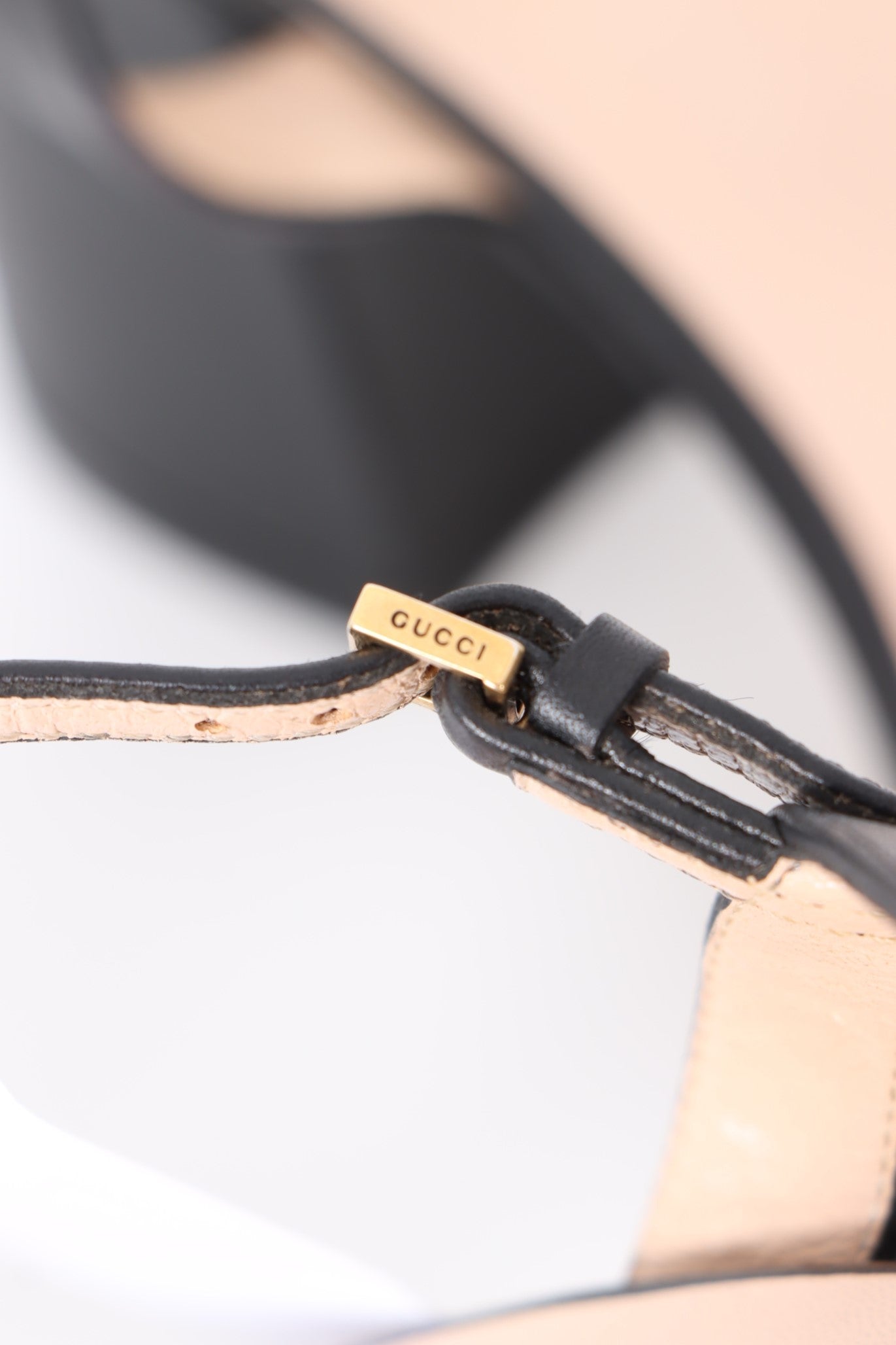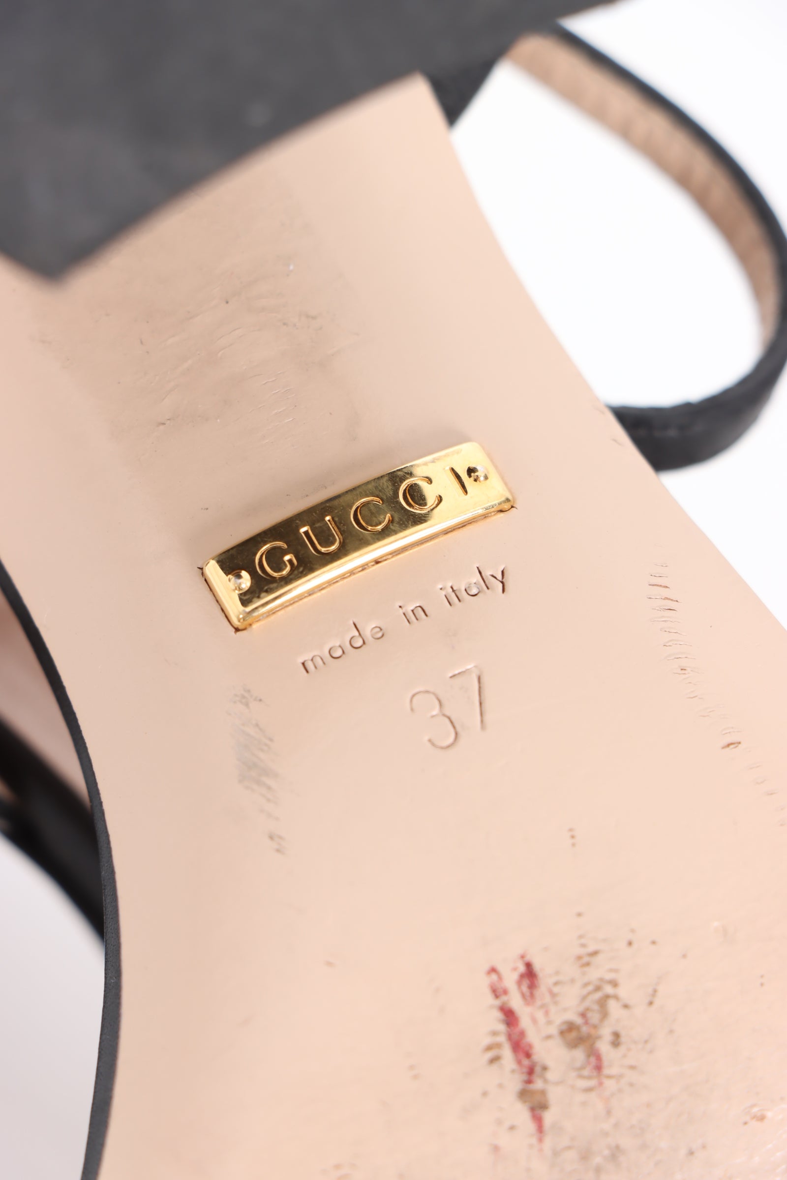 GUCCI GG Marmont Mid-Heel Black Leather Sandals (37)
