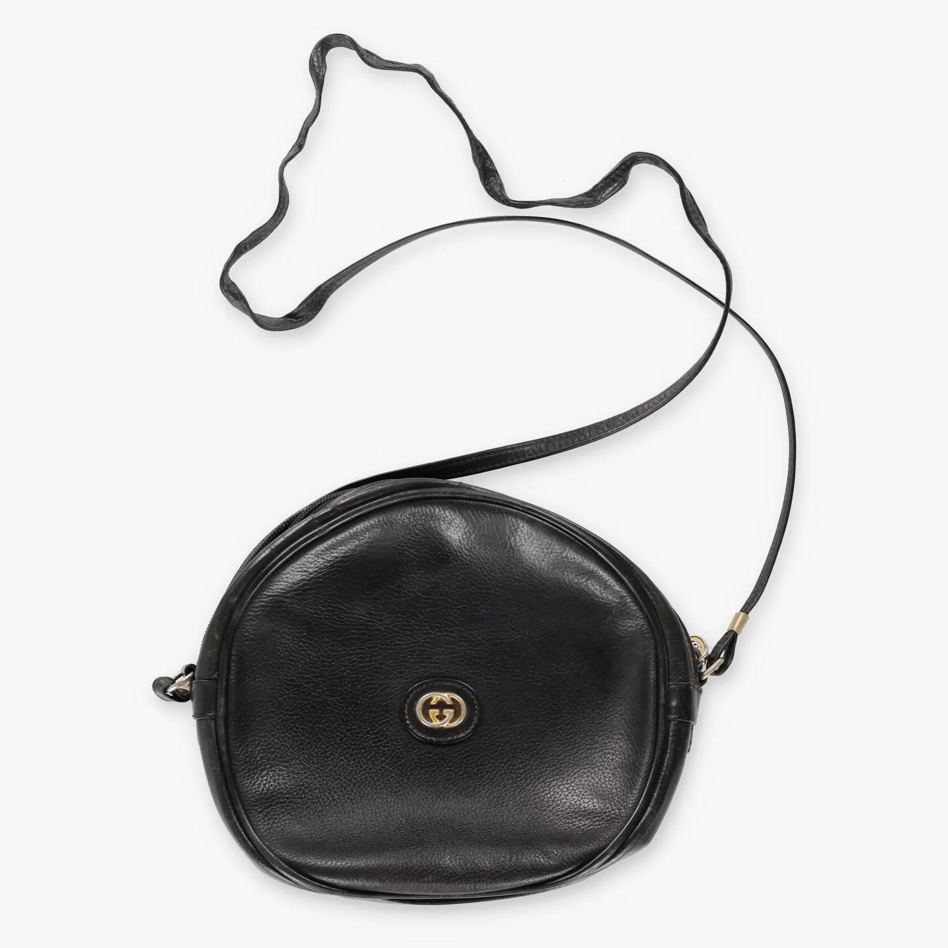 GUCCI Micro Logo Pebbled Leather Round Black Crossbody Bag