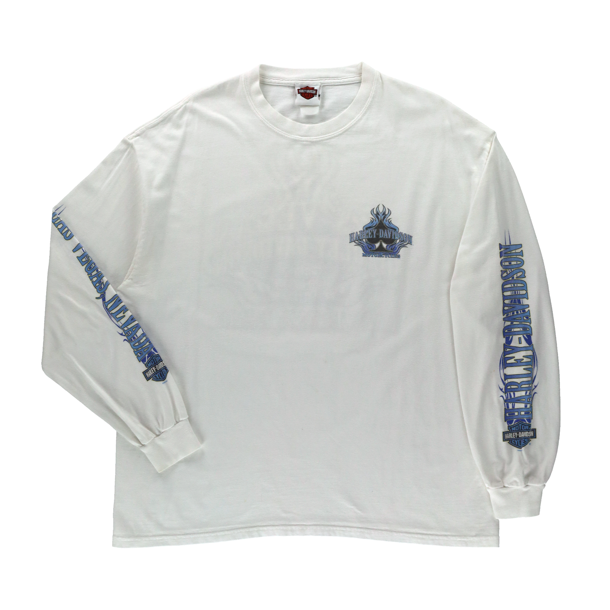 HARLEY DAVIDSON Las Vegas White & Blue Flame Logo Long Sleeve Tee (L)