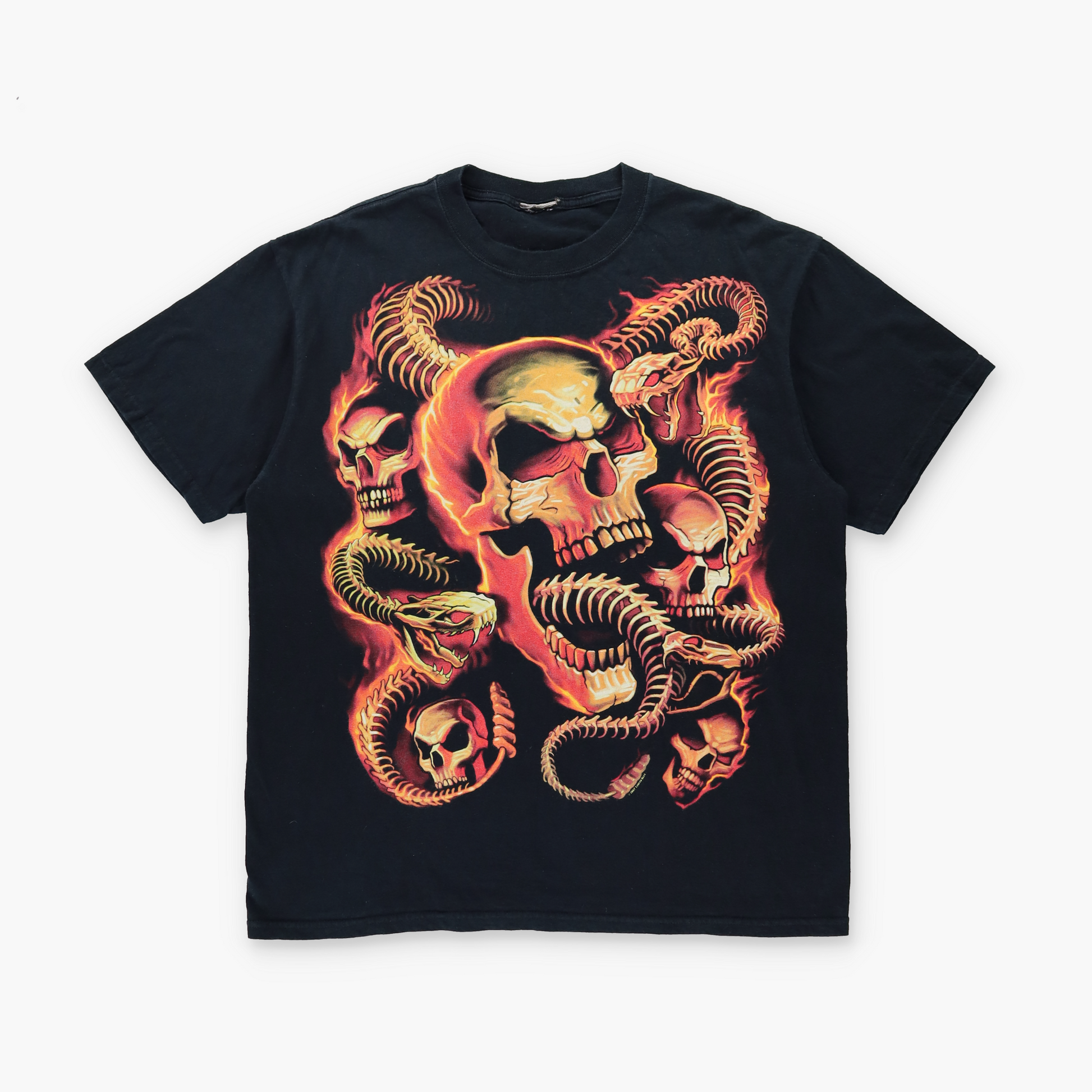 LIQUID BLUE Flaming Skulls & Rattlesnakes Y2K Style Black T-Shirt (XXL)
