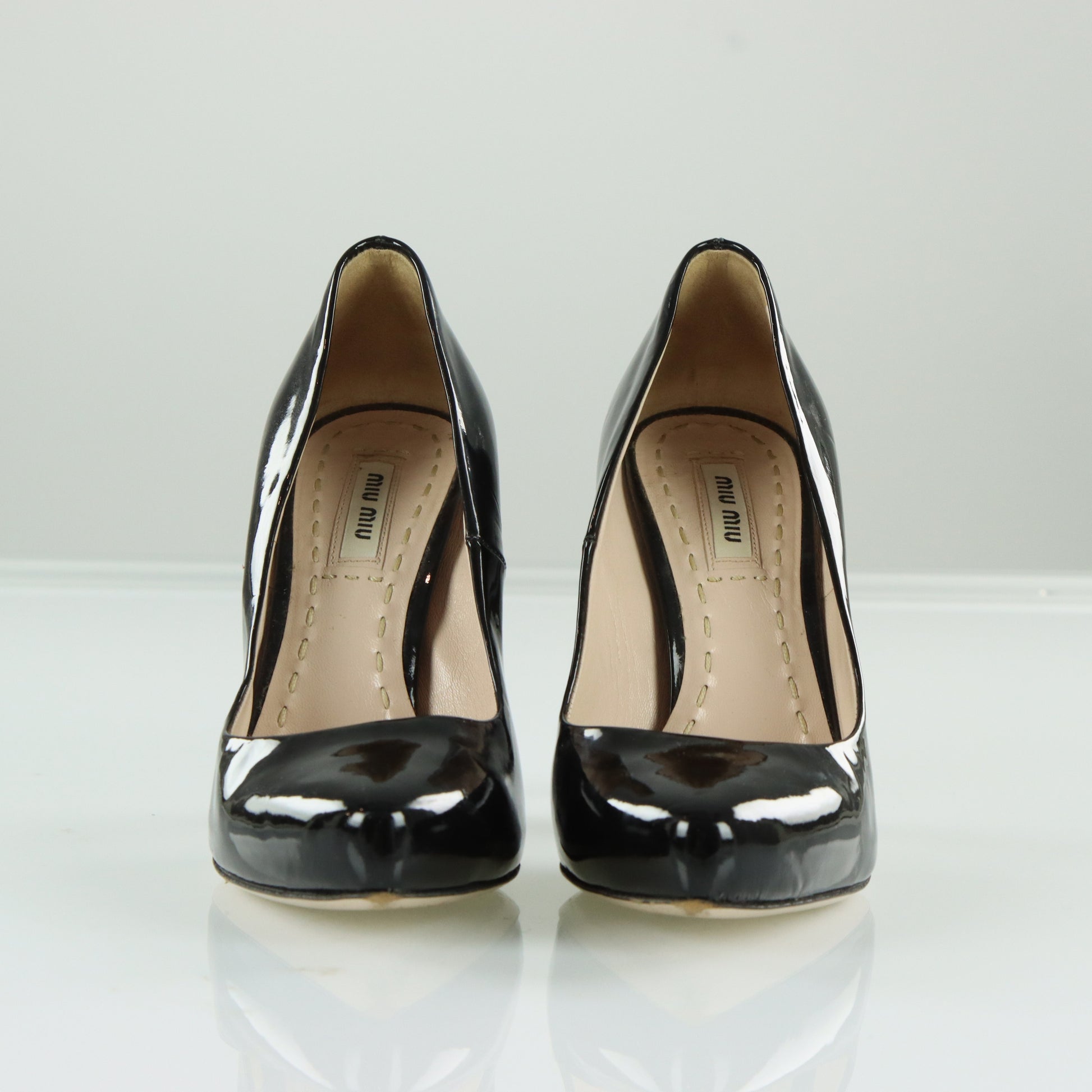 MIU MIU 'ITALY Made' Patent Leather Pointed Toe Black Pumps Heels (35.5)