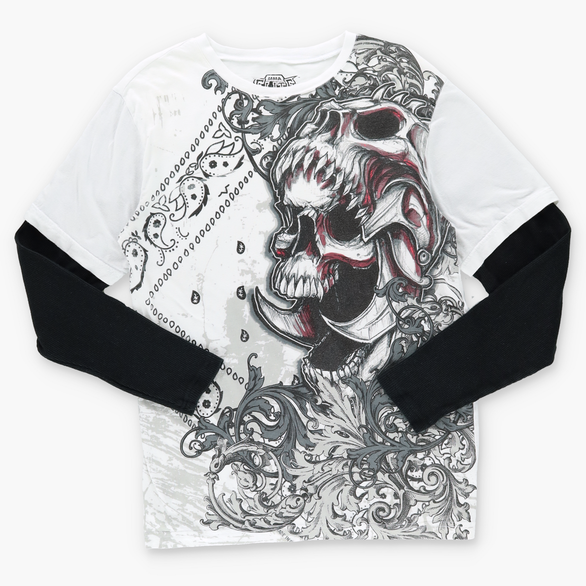 MMA ELITE Y2K Skull Grunge Red Detail Thermal Long Sleeve Tee (M)