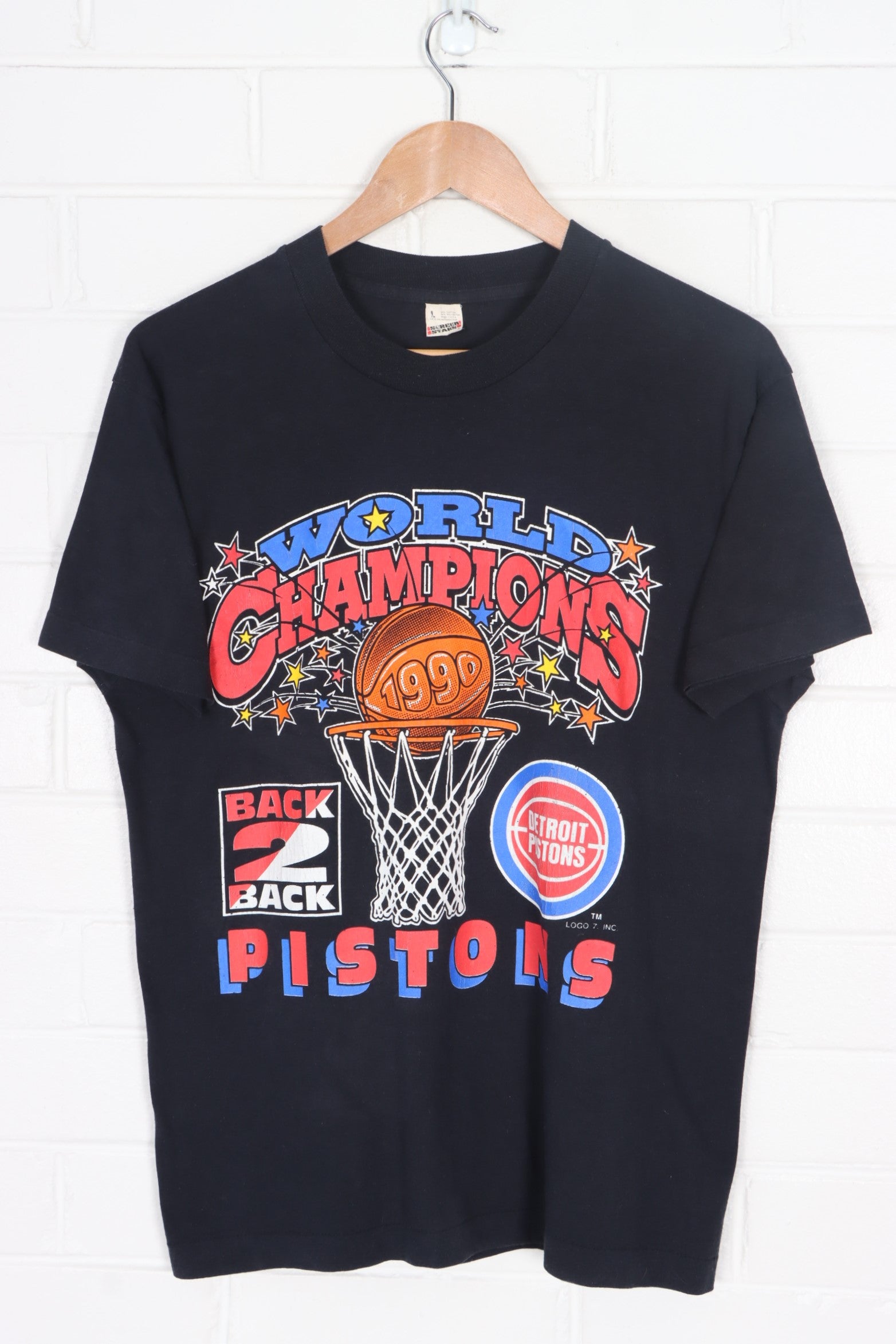 NBA Detroit Pistons 1990 Champions Single Stitch T-Shirt USA Made (S-M)