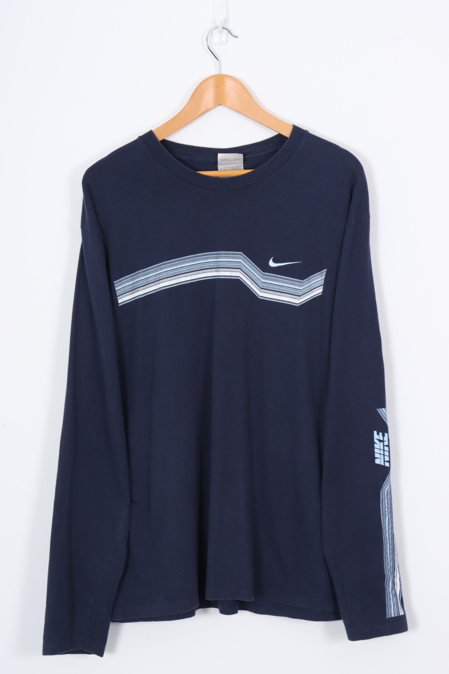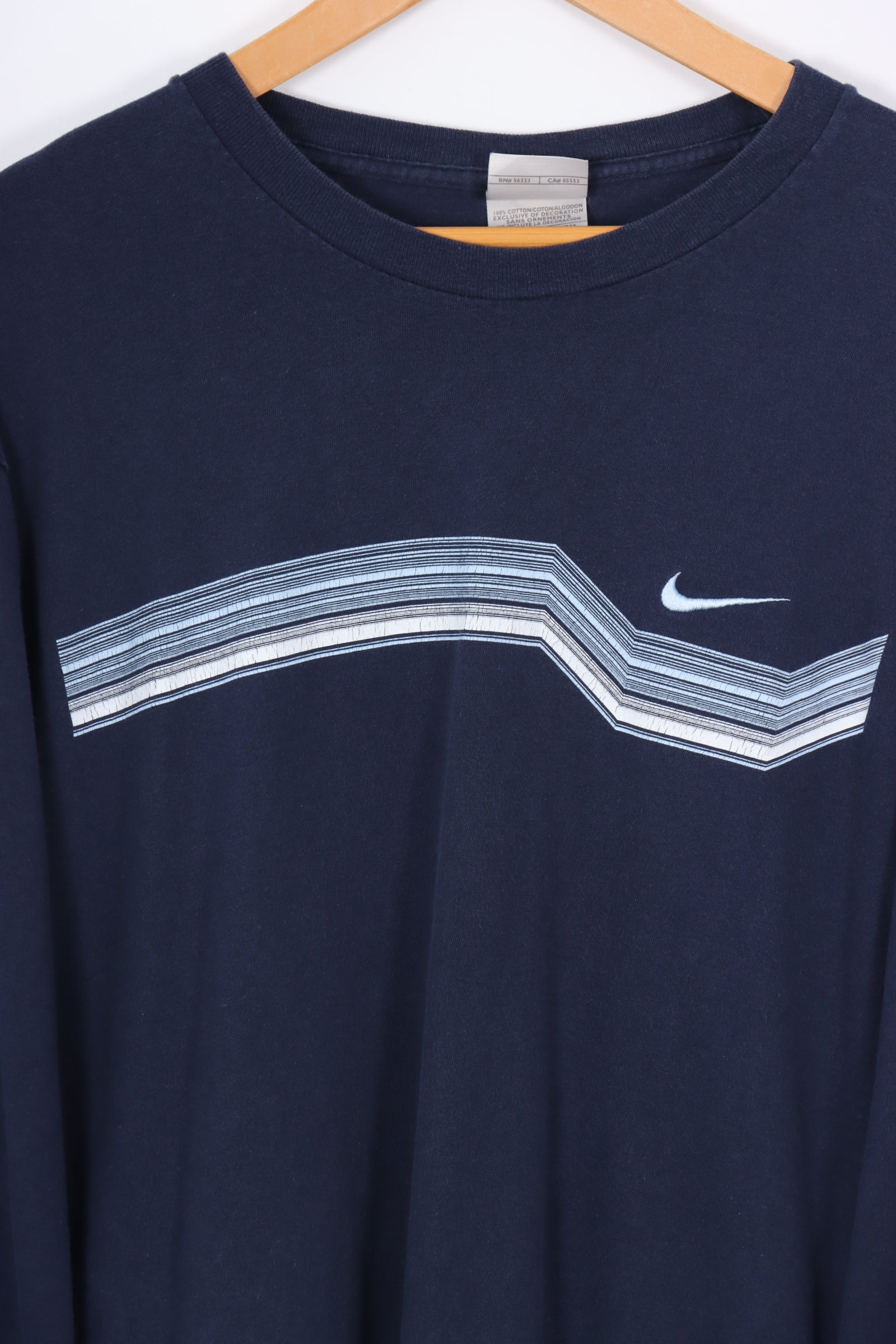 NIKE Embroidered Swoosh Blue Tones Long Sleeve Tee (XL)