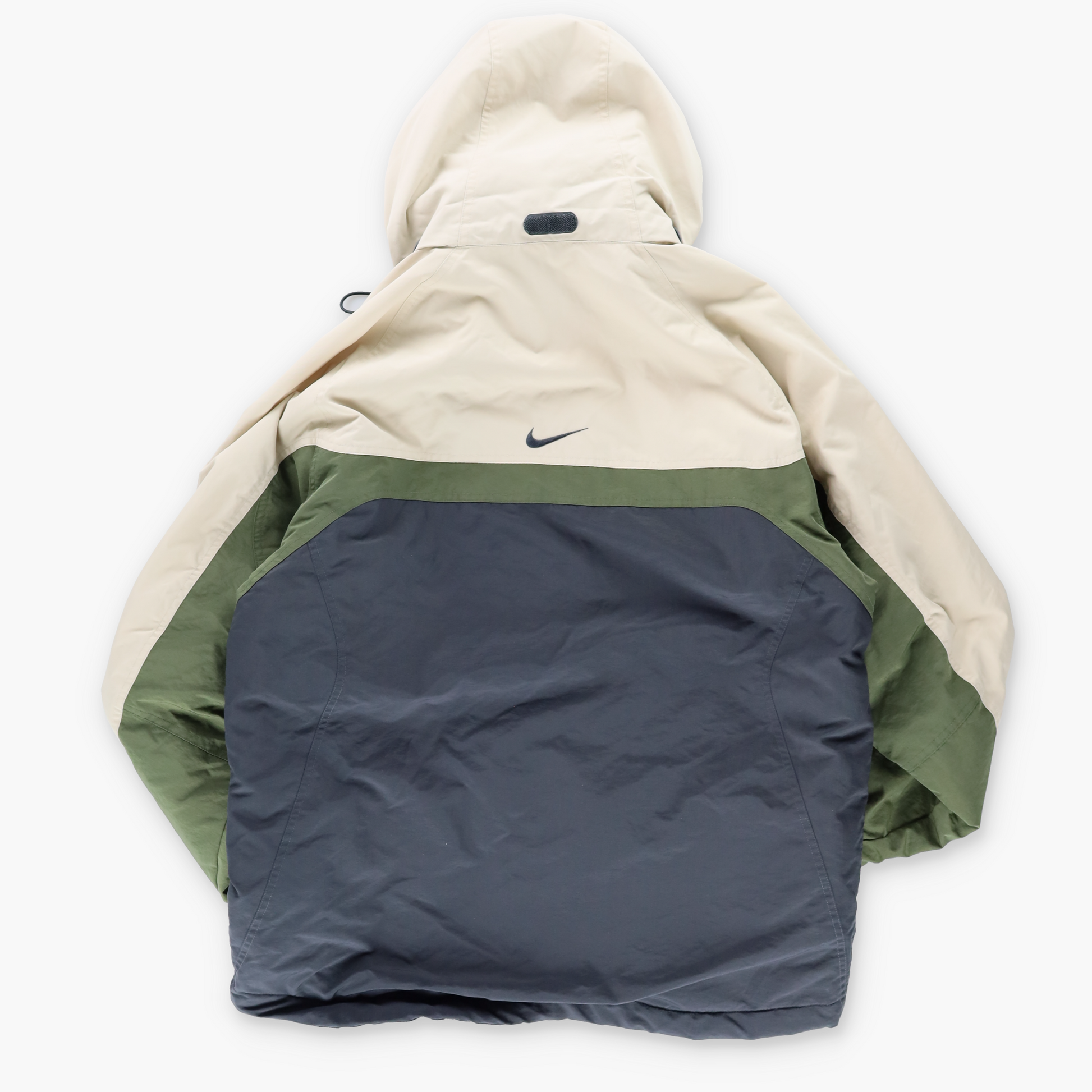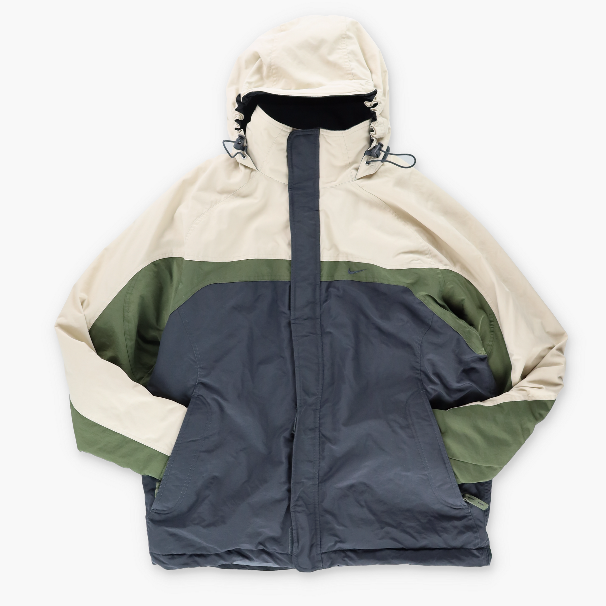 NIKE Embroidered Swoosh Logo 3-Tone Zip Up Hooded Puffer Jacket (L)