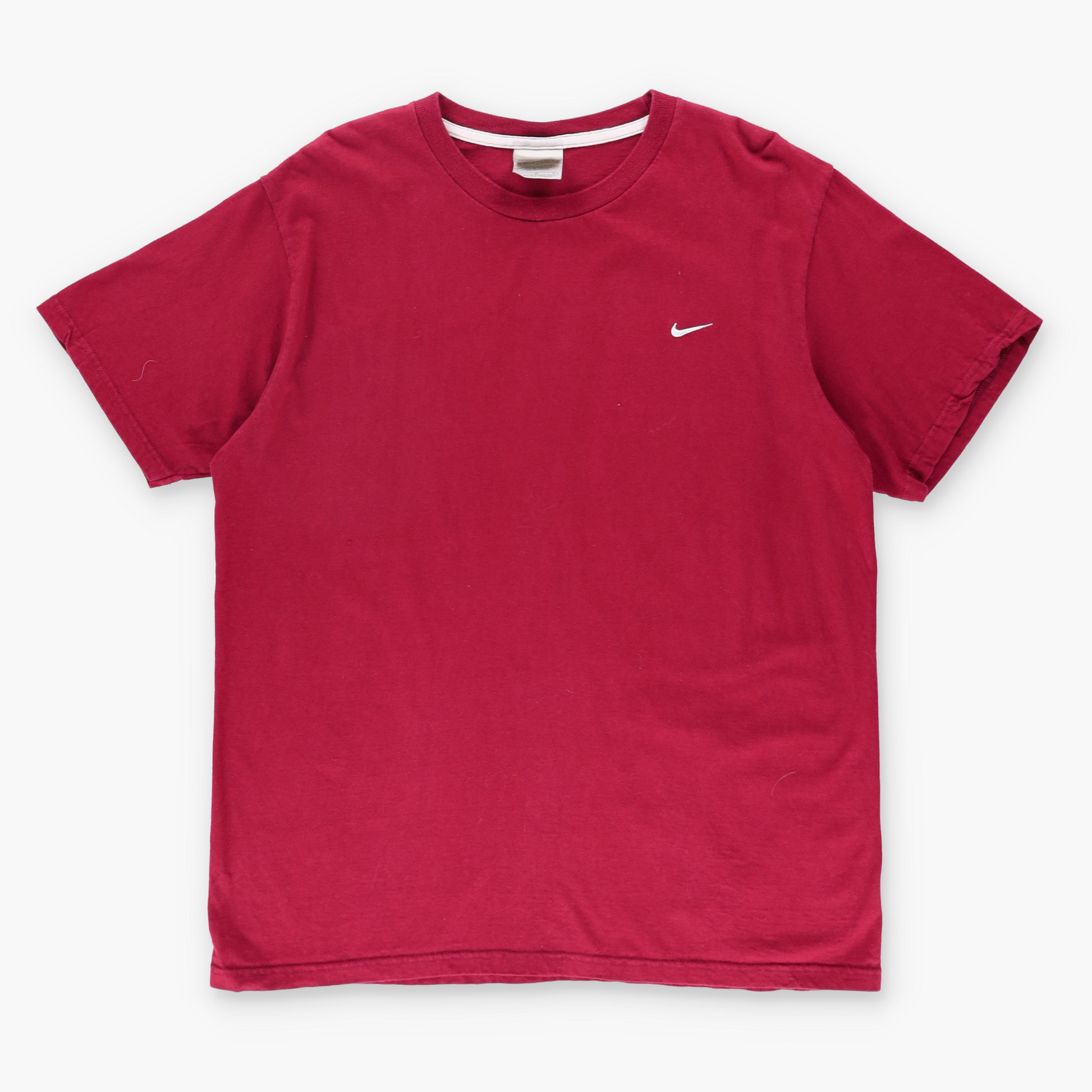 NIKE Embroidered Swoosh Logo Red & White T-Shirt (L)