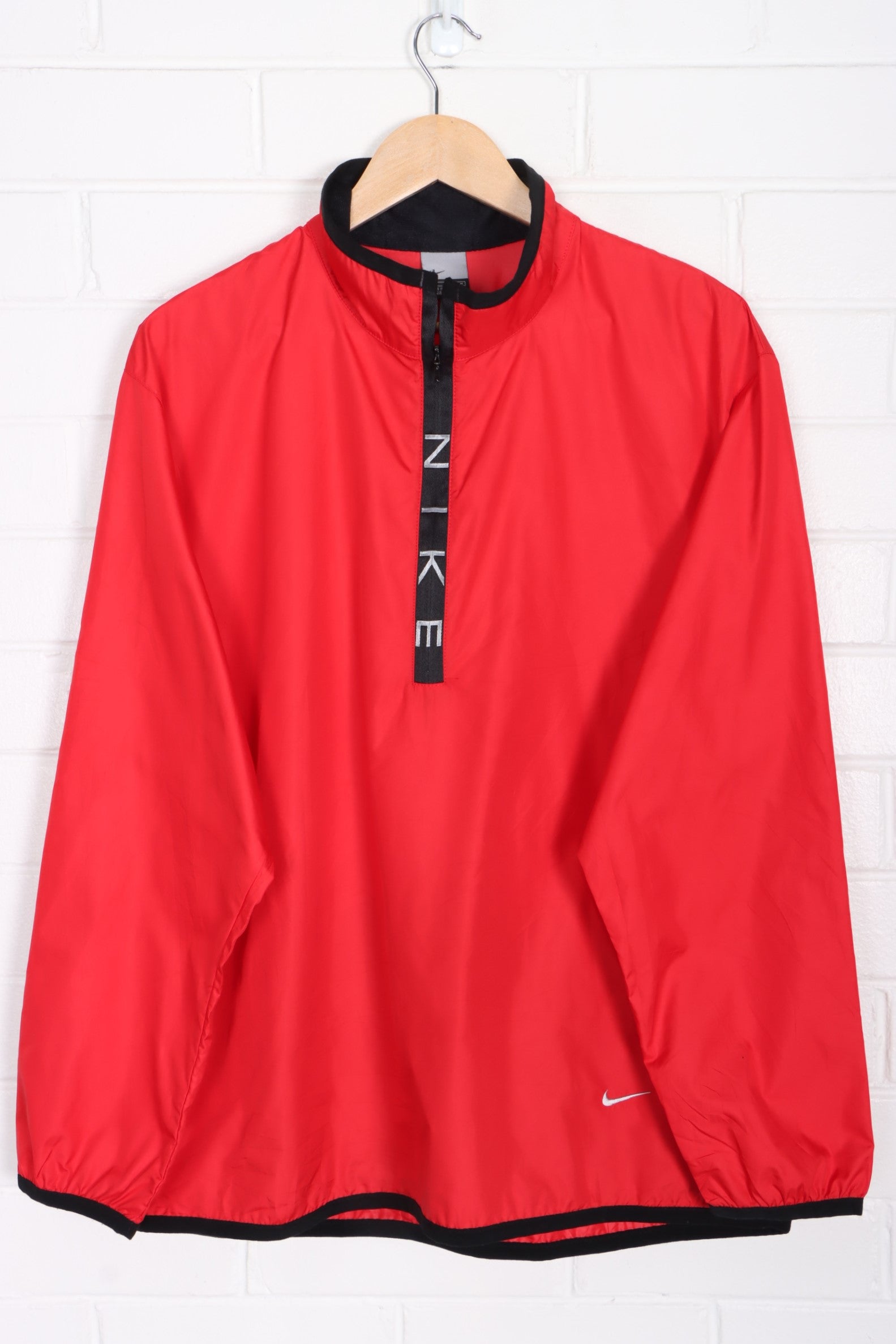 NIKE Red & Black 1/4 Zip Spell Out Swoosh Logo Windbreaker (L)