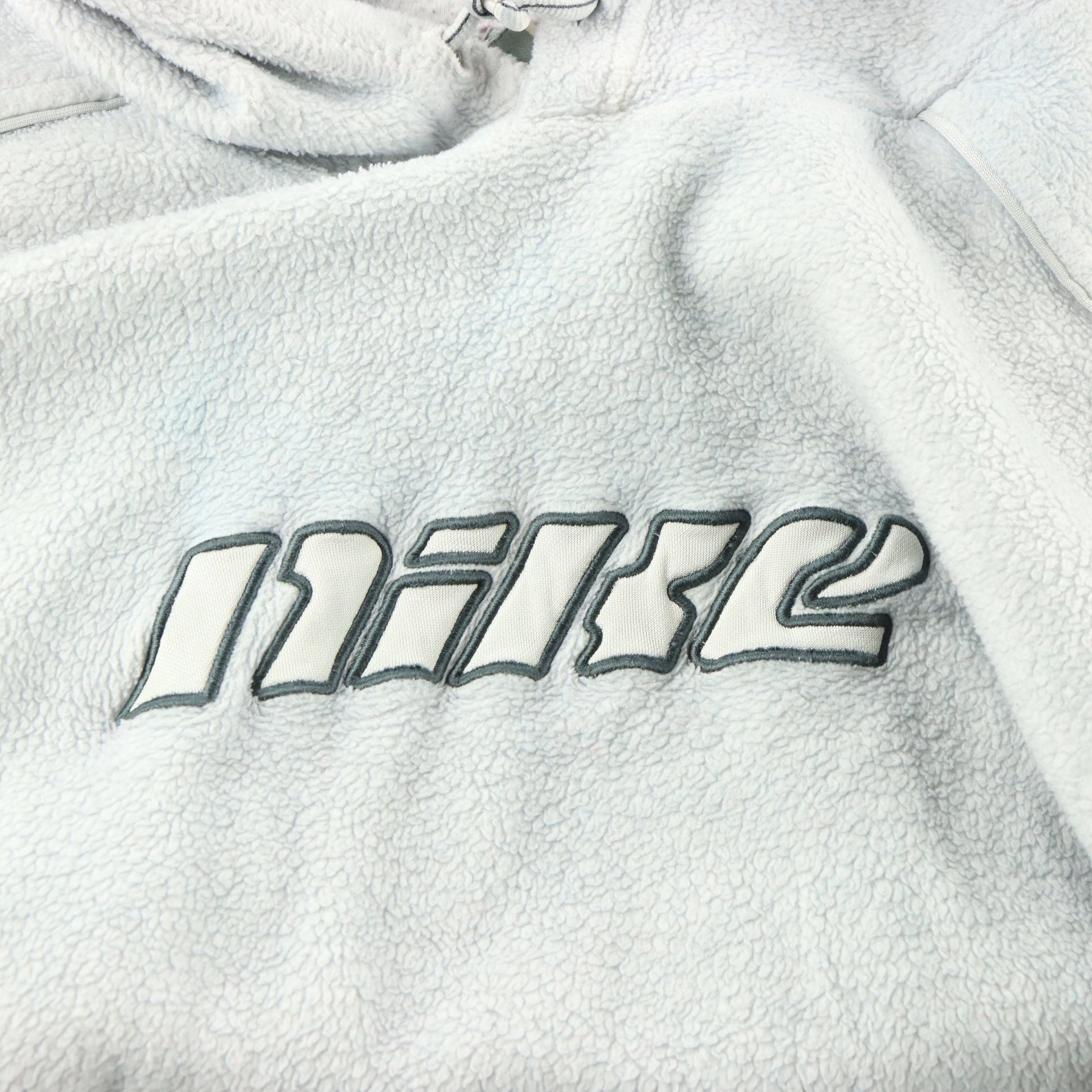 NIKE Vintage Embroidered Spell-Out Logo Grey Fleece Hooded Sweatshirt (XL)