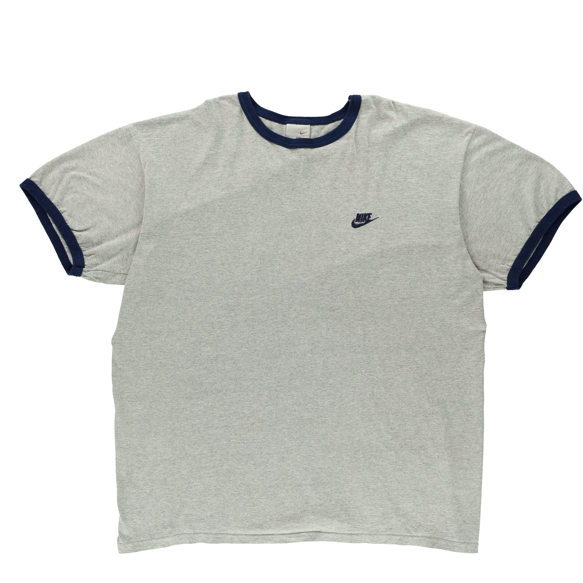 NIKE Vintage Grey Navy Embroidered Logo Ringer Vintage T-Shirt (XL-XXL)