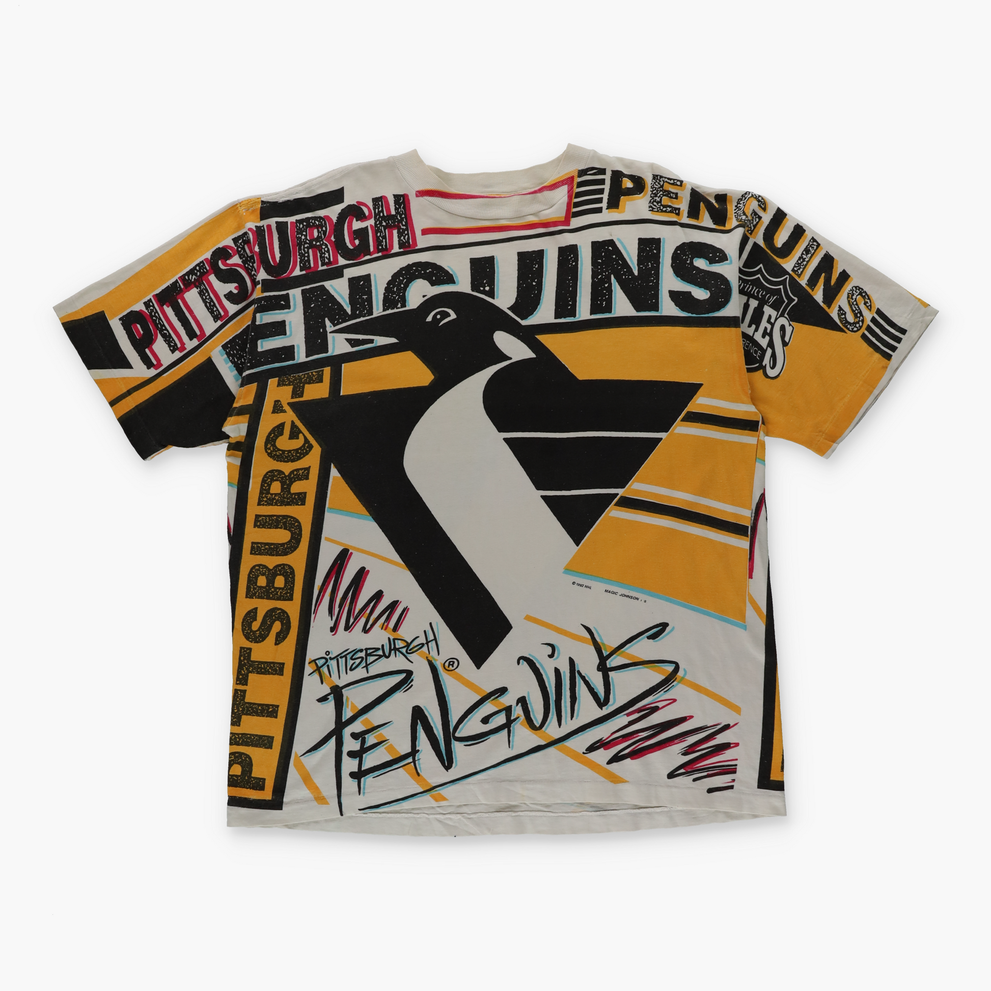 Pittsburgh Penguins 1992 NHL Magic Johnson T’s Single Stitch All Over Vintage T-Shirt (L-XL)