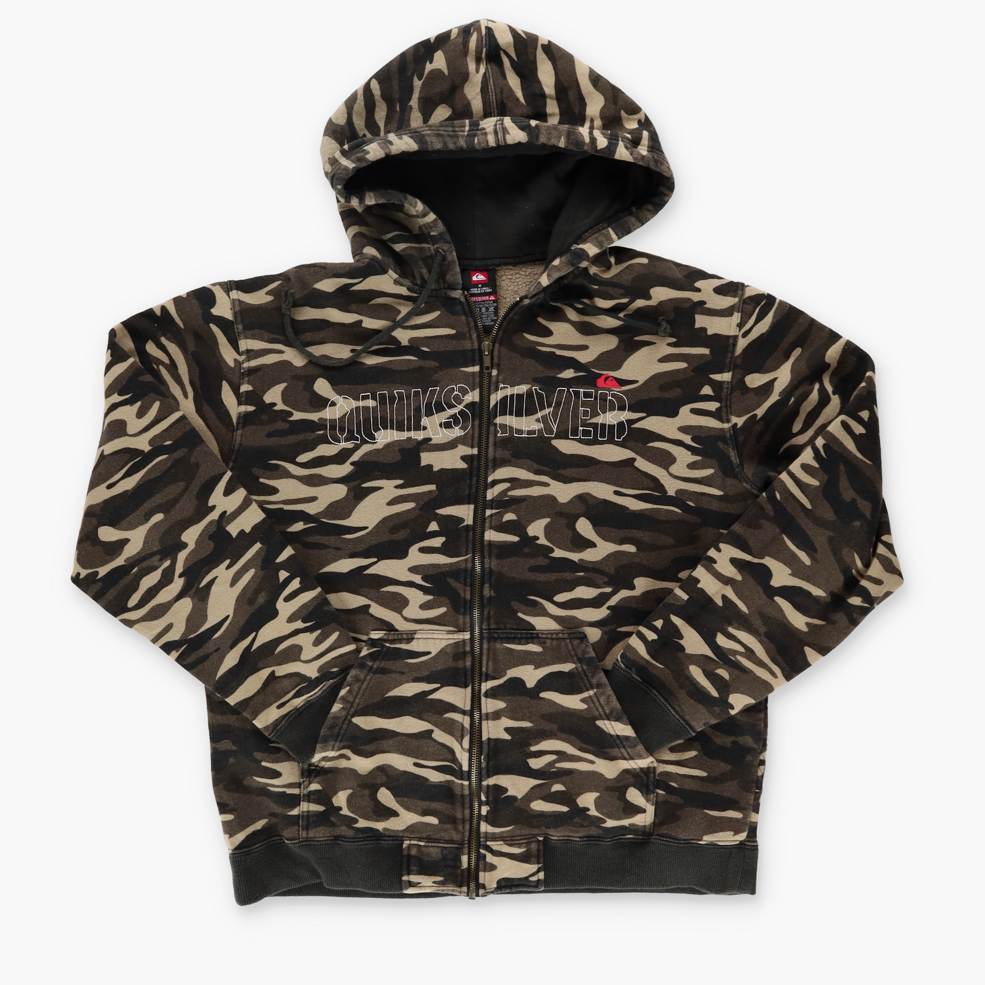QUICKSILVER Y2K Camo Embroidered Spell Out Logo Zip Up Jacket (S)