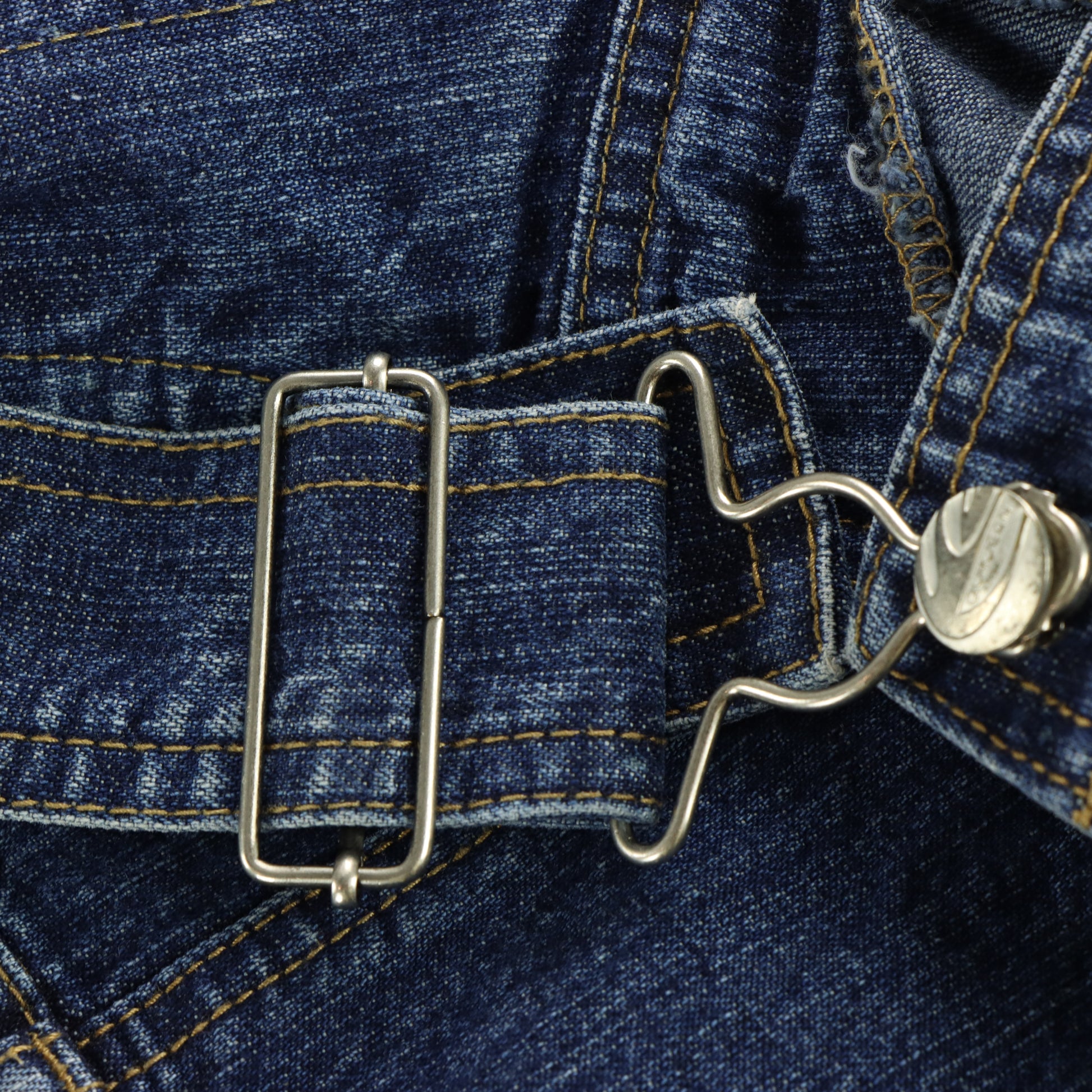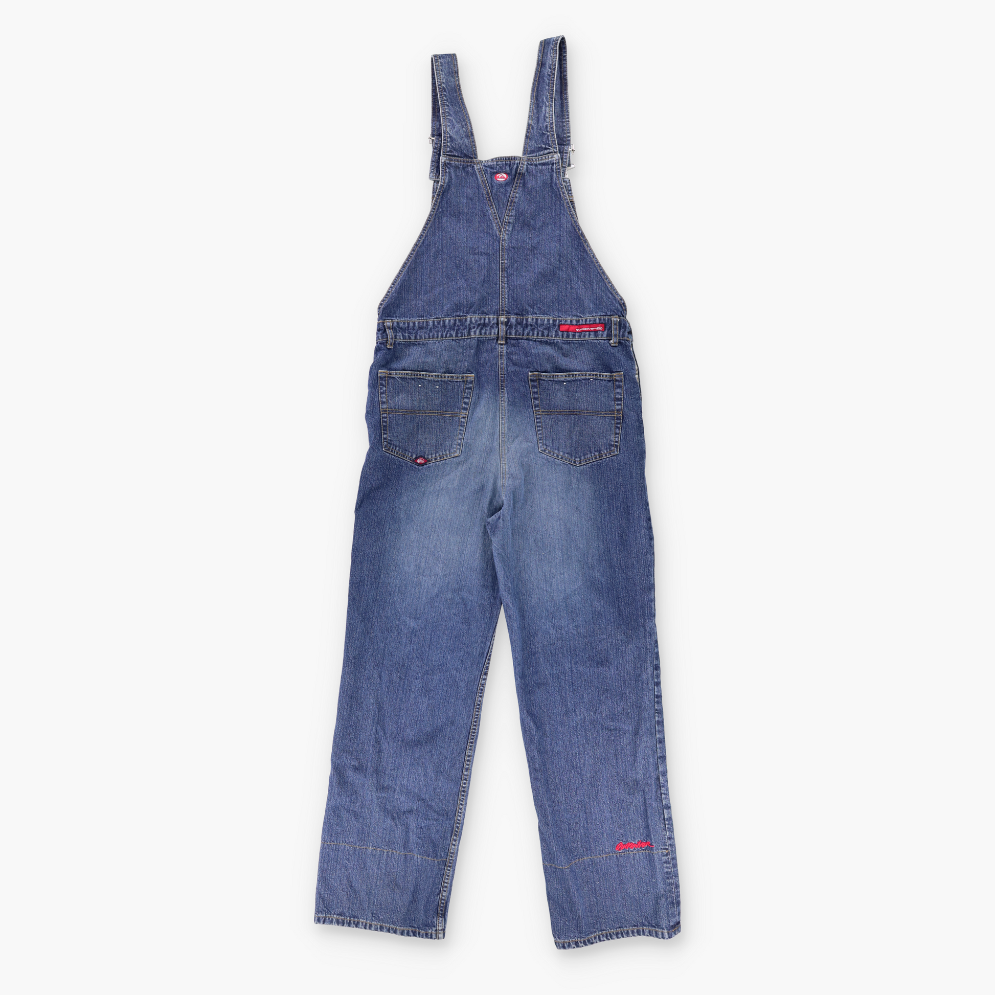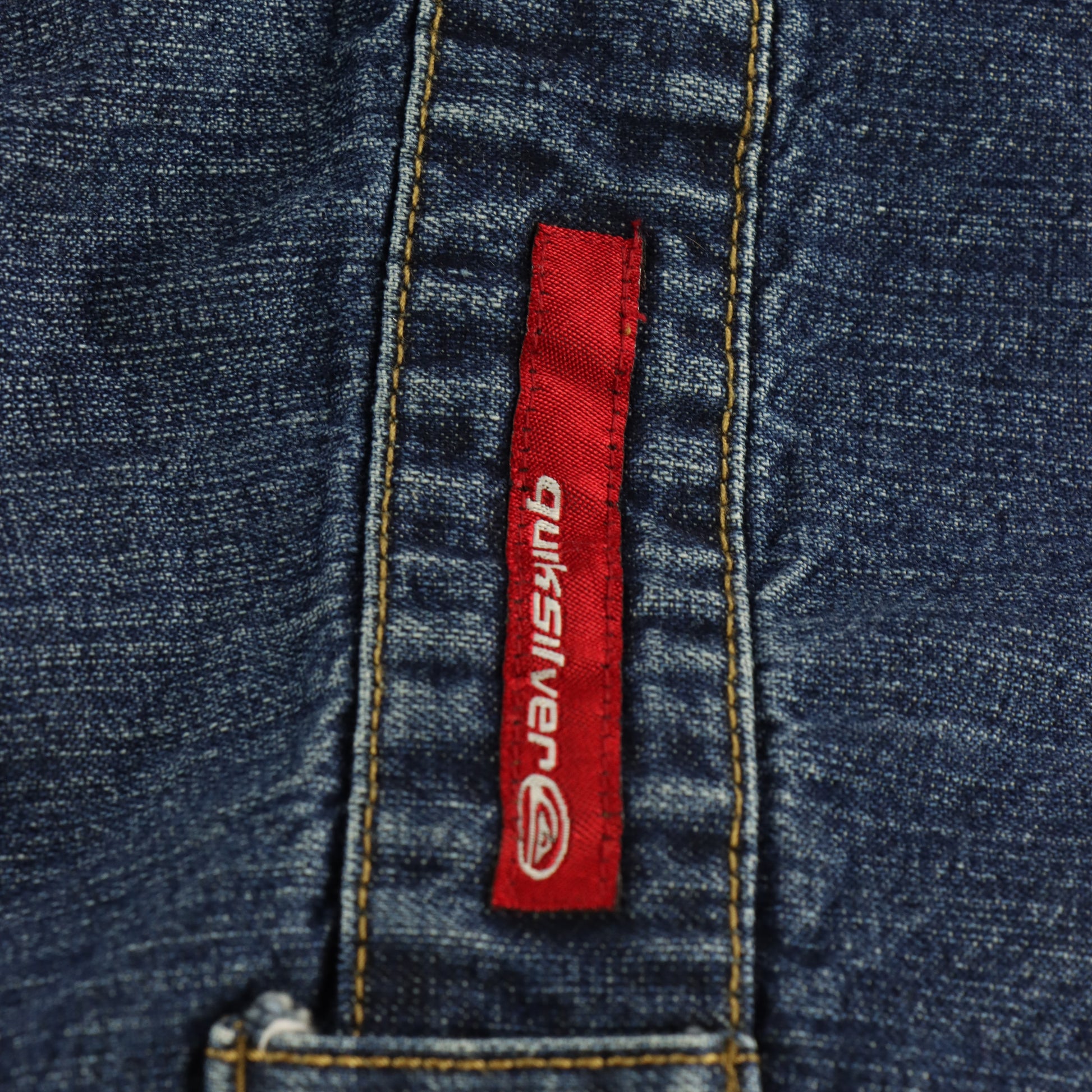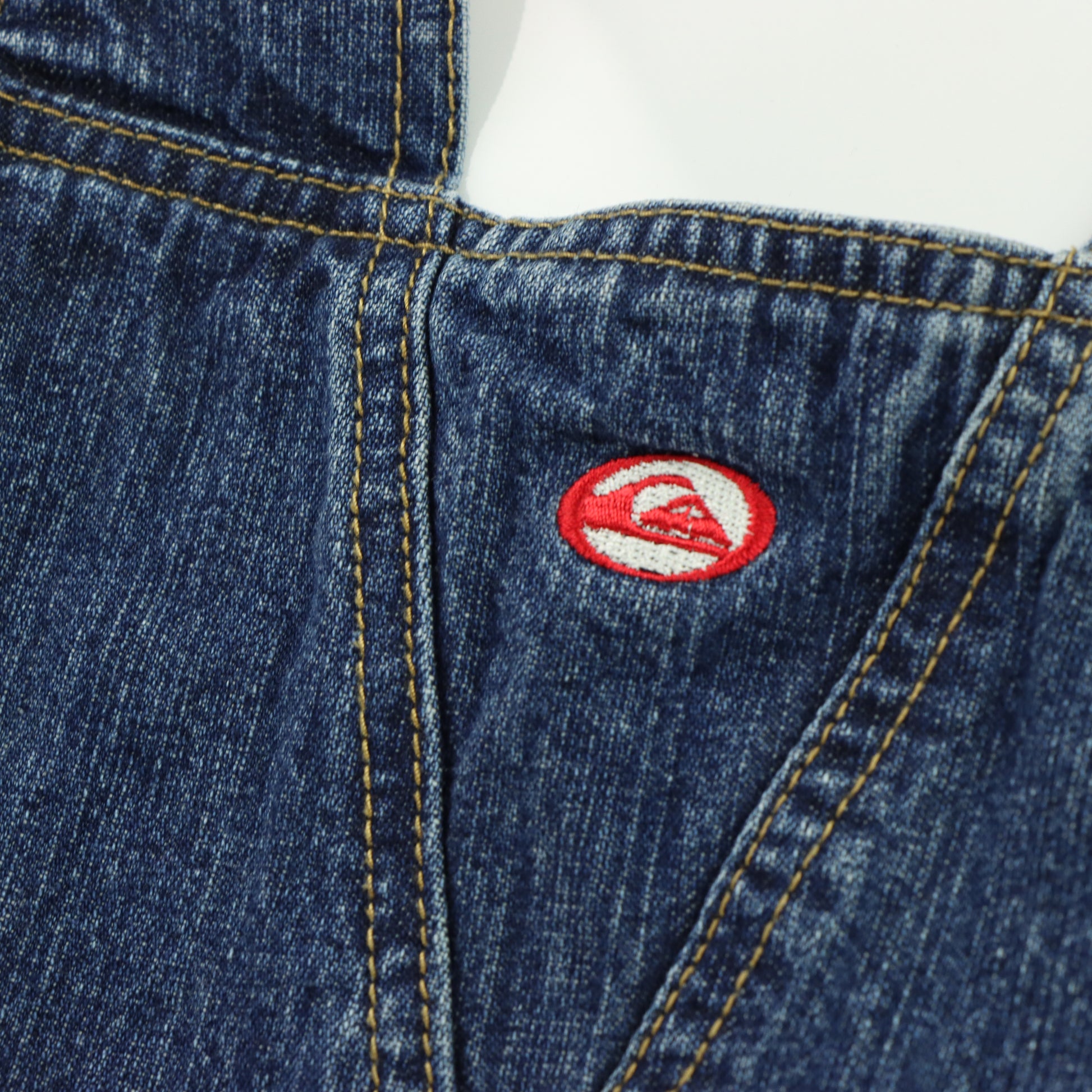 QUICKSILVER Embroidered Red Spell Out Logo Button Denim Long Overalls (L)