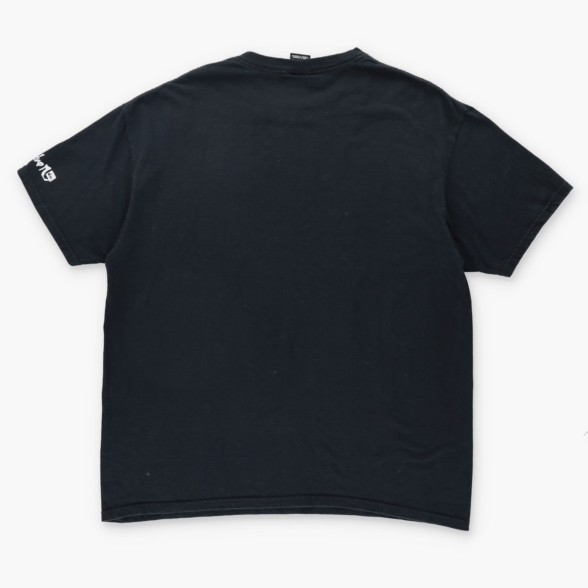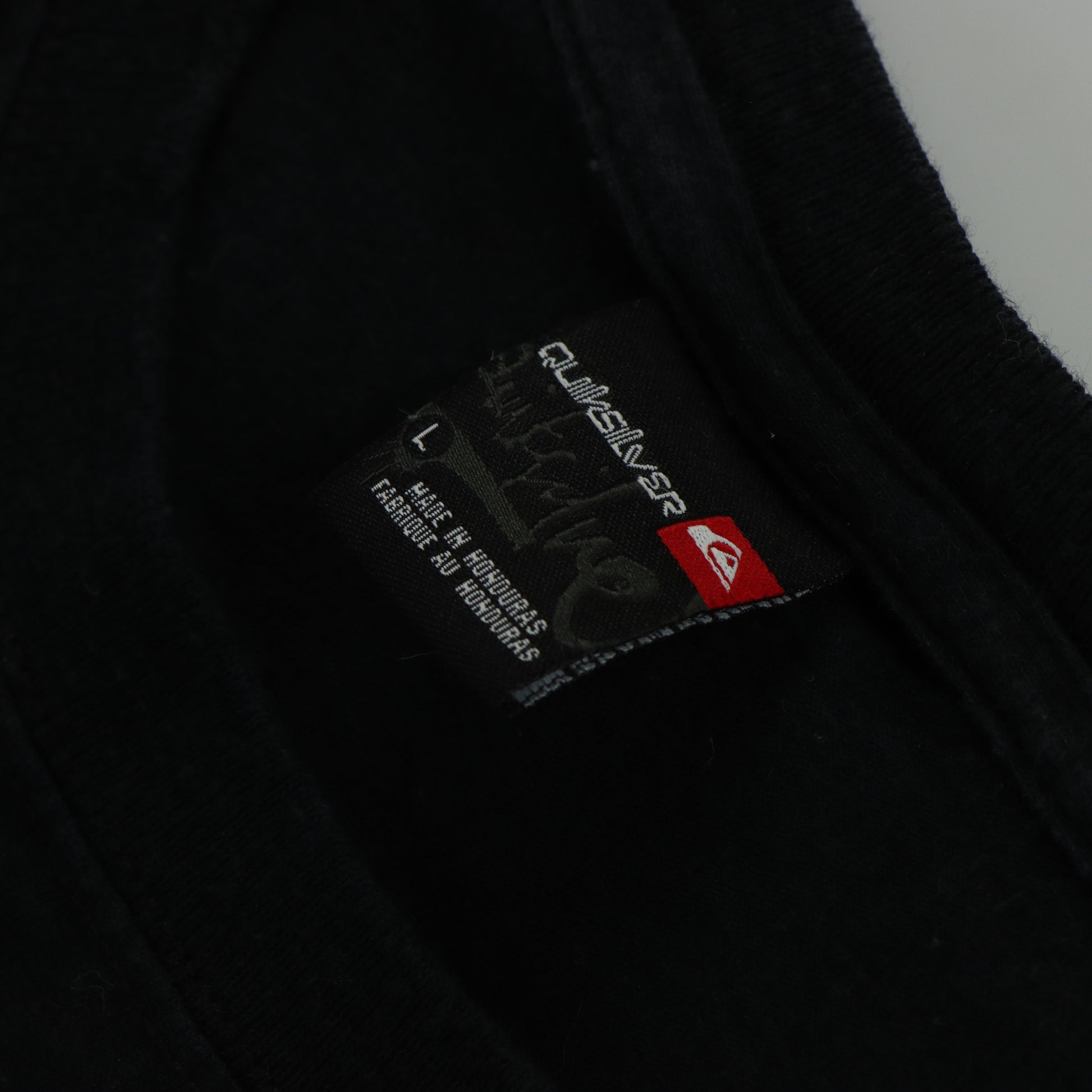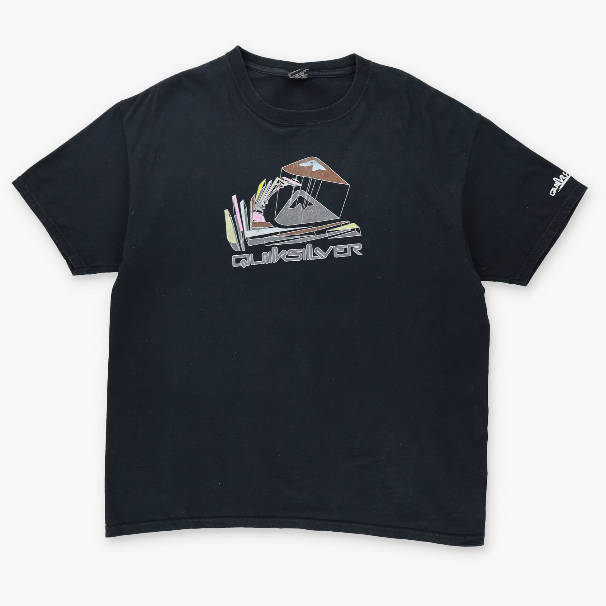 QUICKSILVER Y2K Spell Out Logo Geometric Black Surf Tee (L)