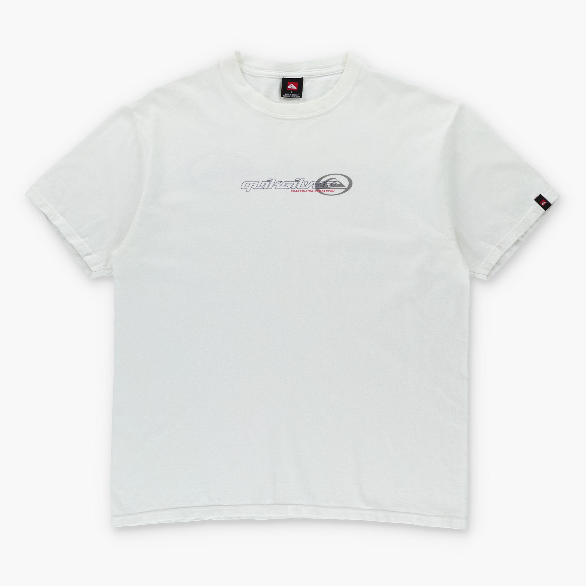 QUIKSILVER Boarding Company Double Sided Spell Out Logo Classic White Tee (L)
