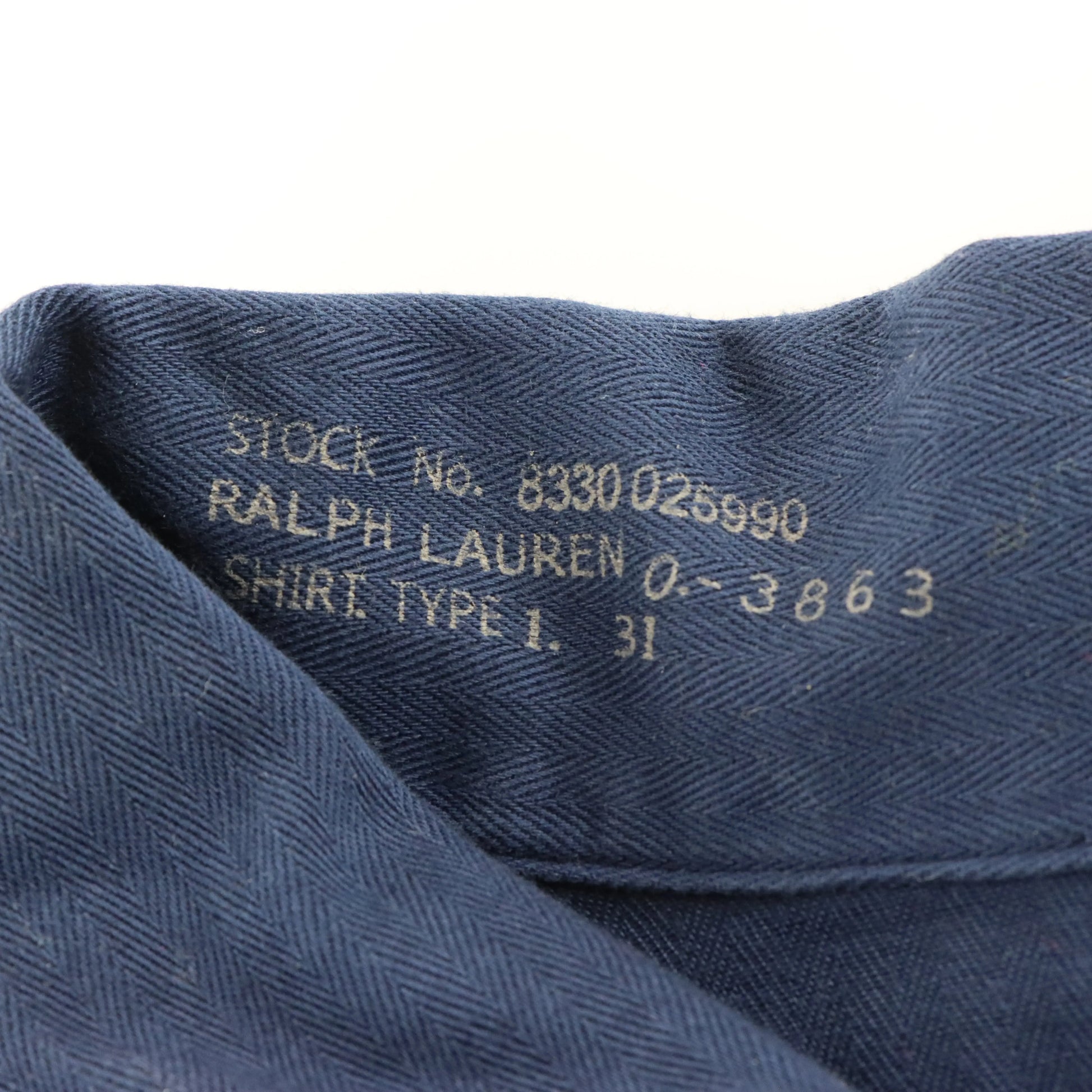 RALPH LAUREN POLO Military Airforce Embroidered Patch Navy Herringbone Button Up Shirt (XXXL)