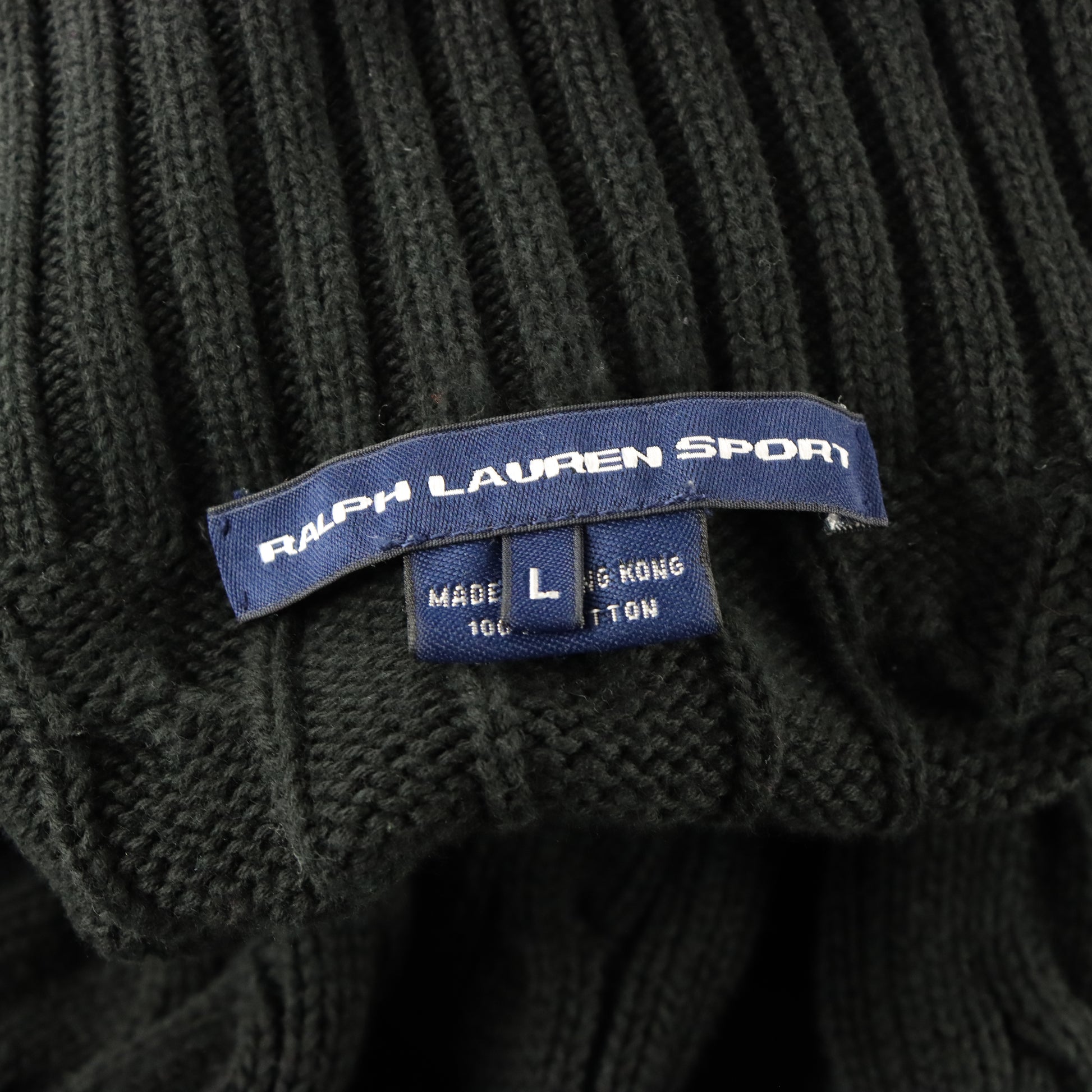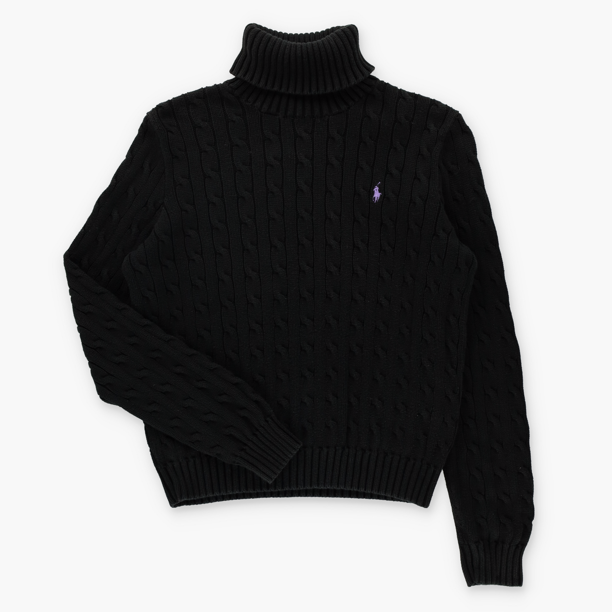 RALPH LAUREN SPORT Black & Purple Embroidered Logo Cable Knit Roll Neck Sweater (M-L)