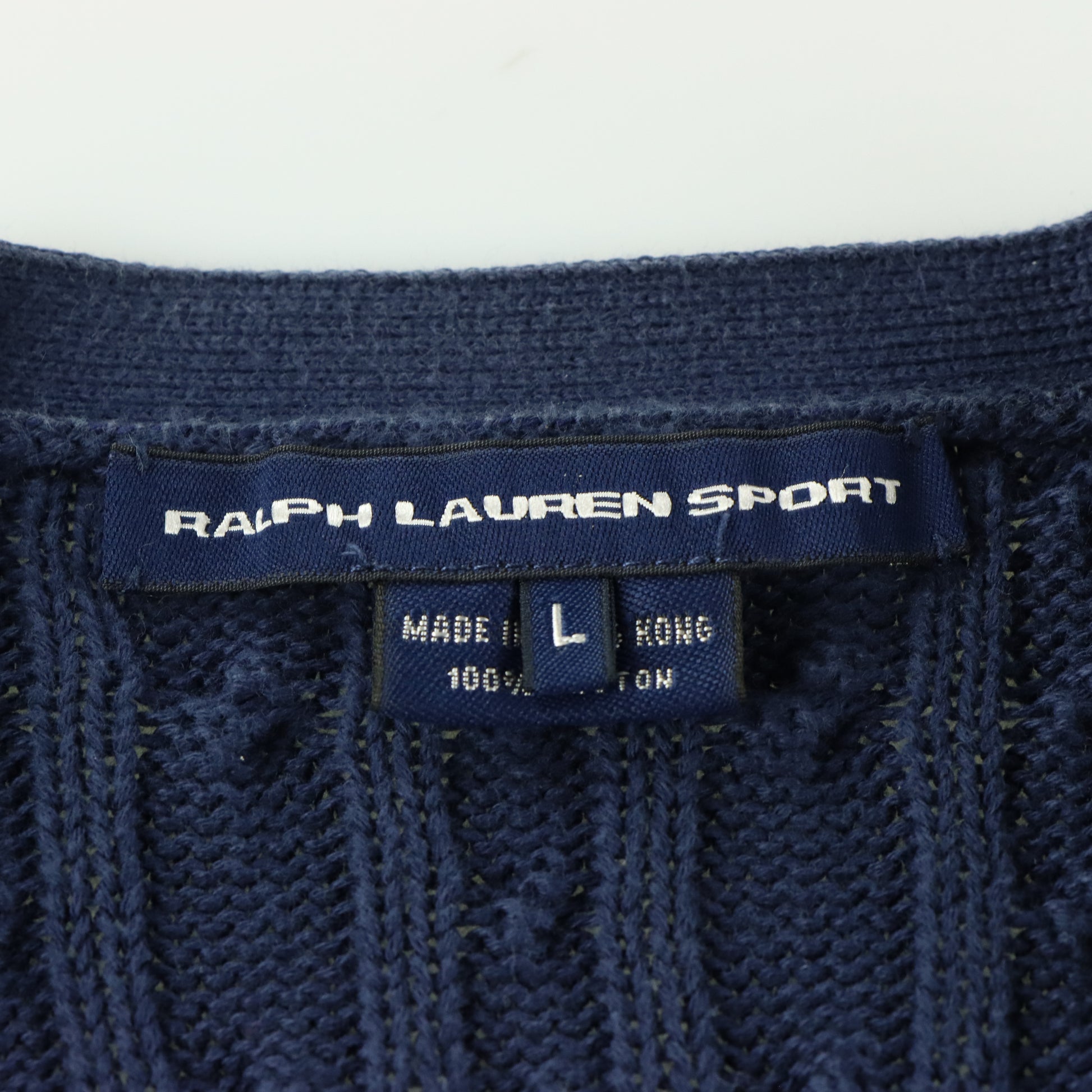 RALPH LAUREN SPORT Navy Blue Cable Knit Button Up Knit Cardigan (M-L)