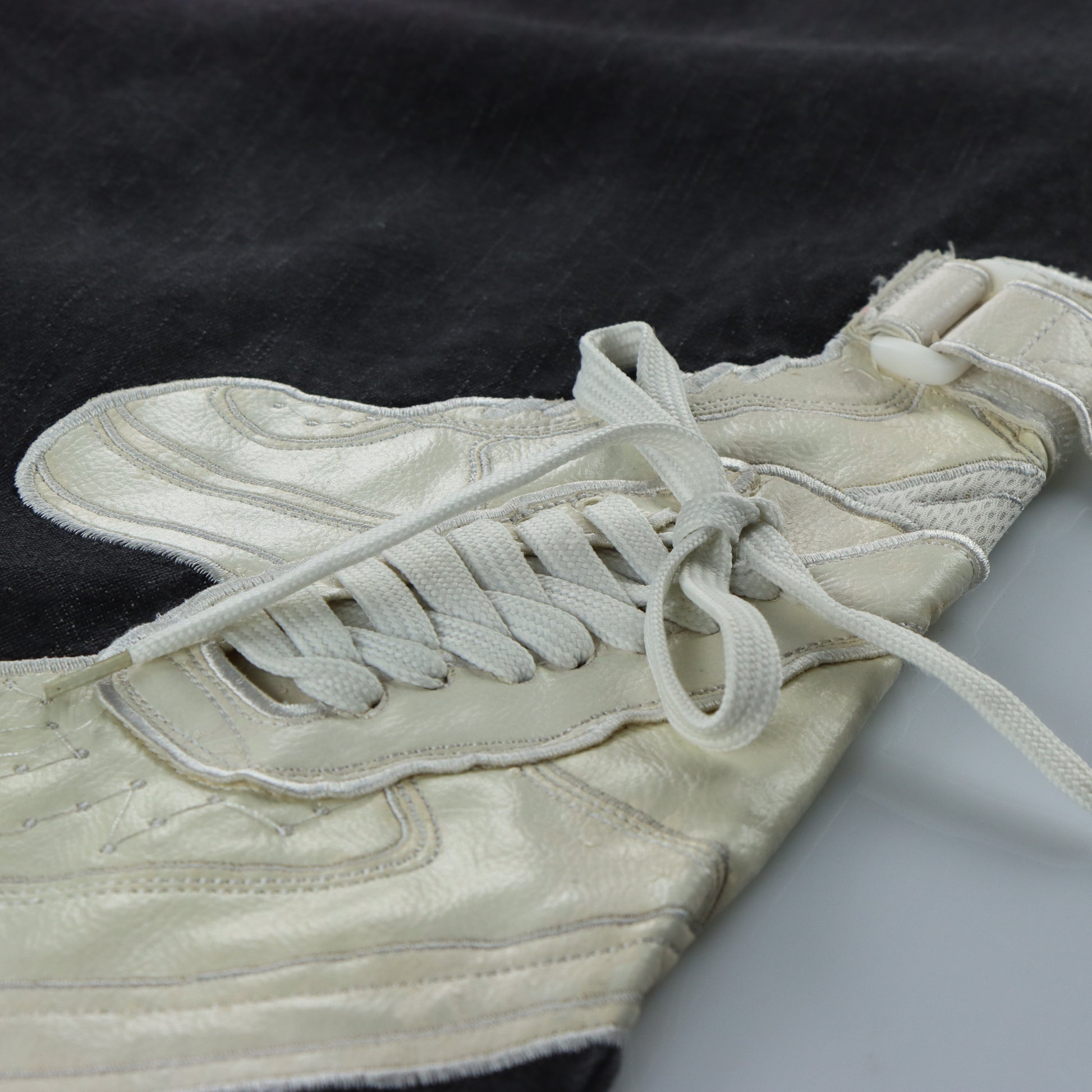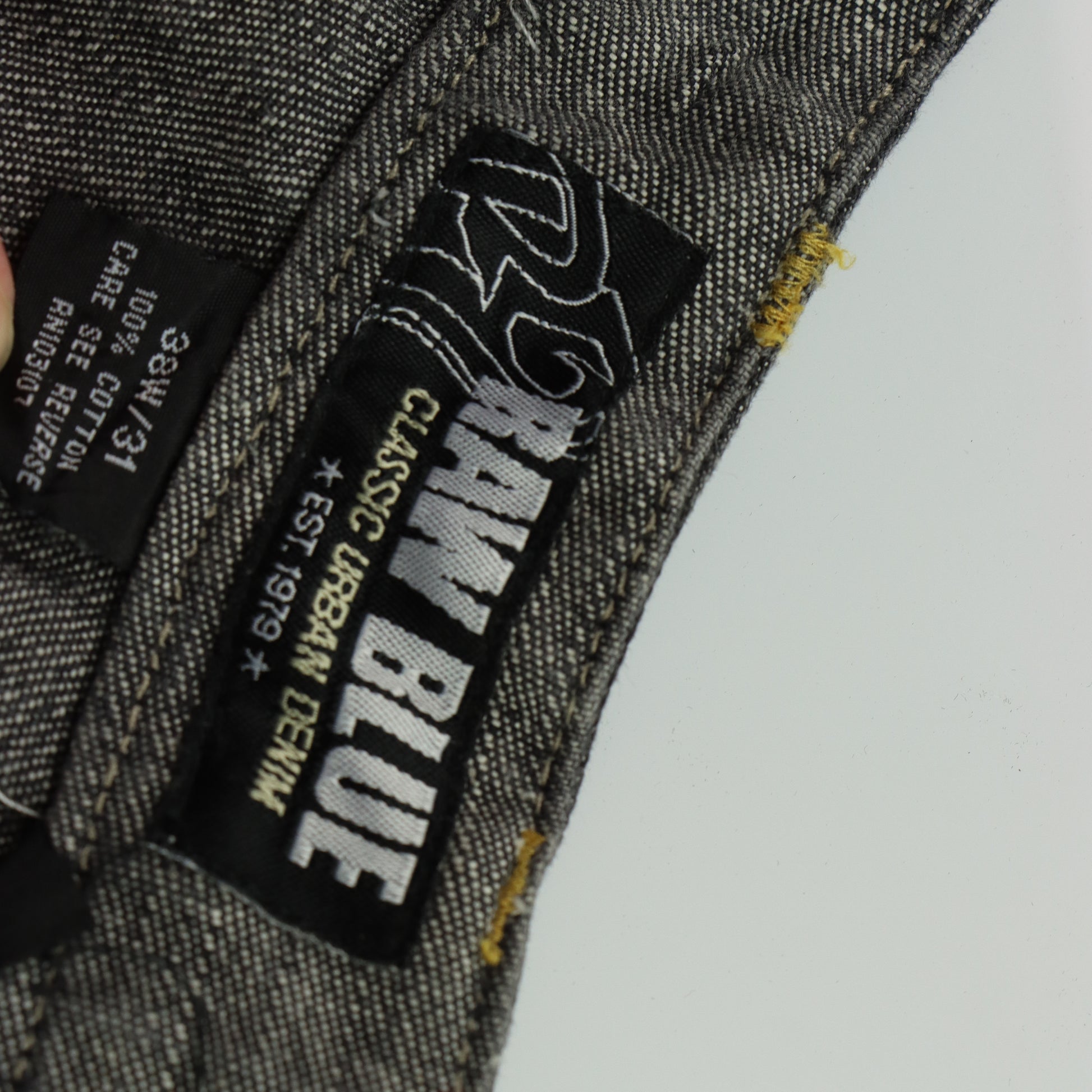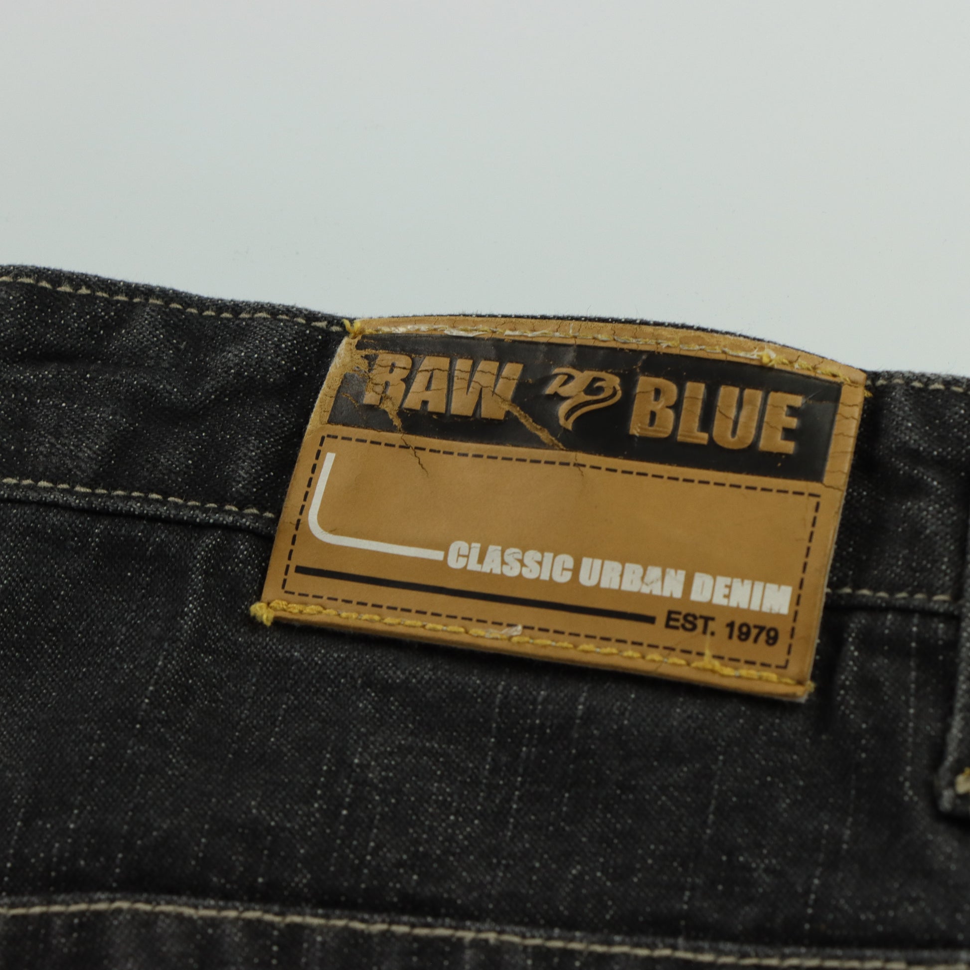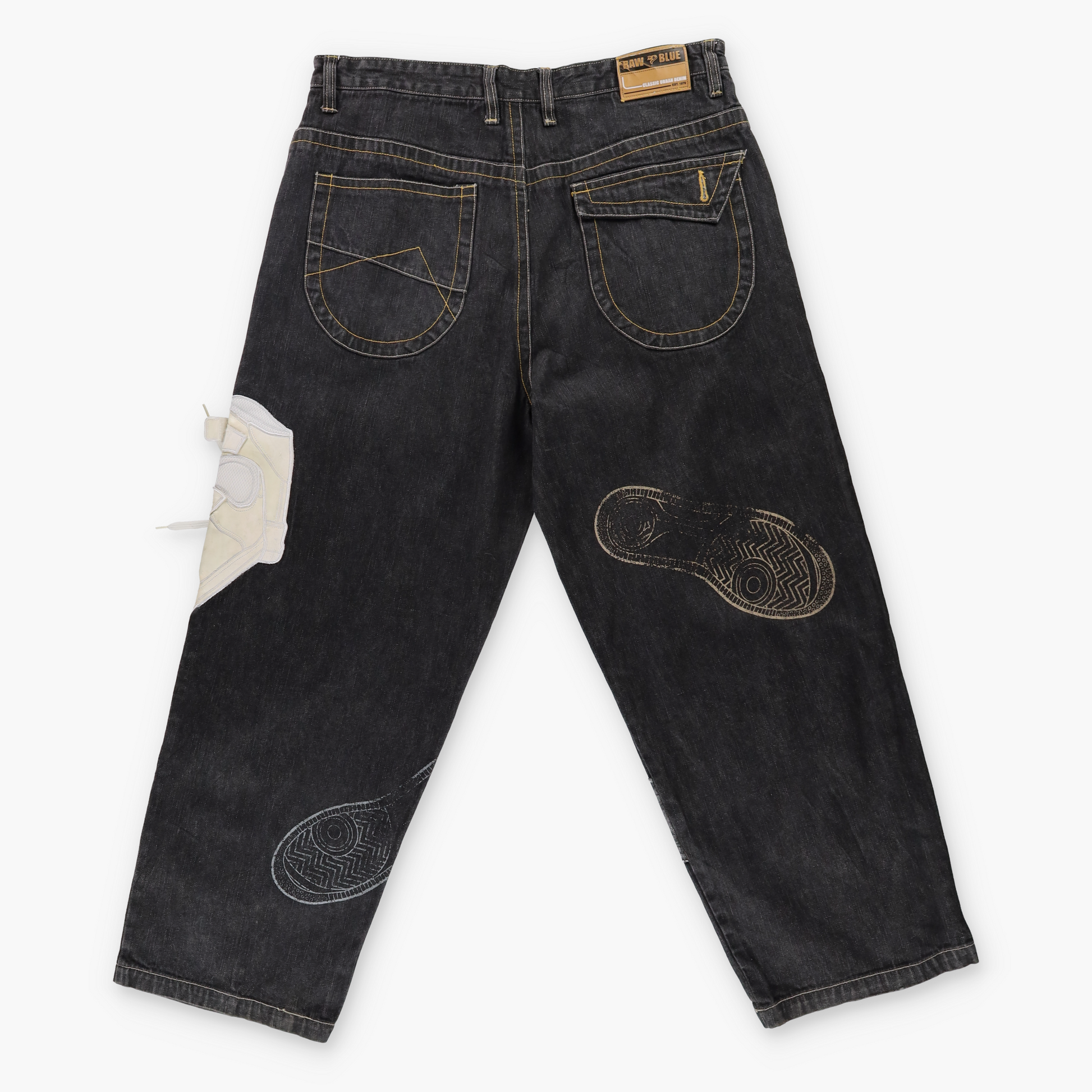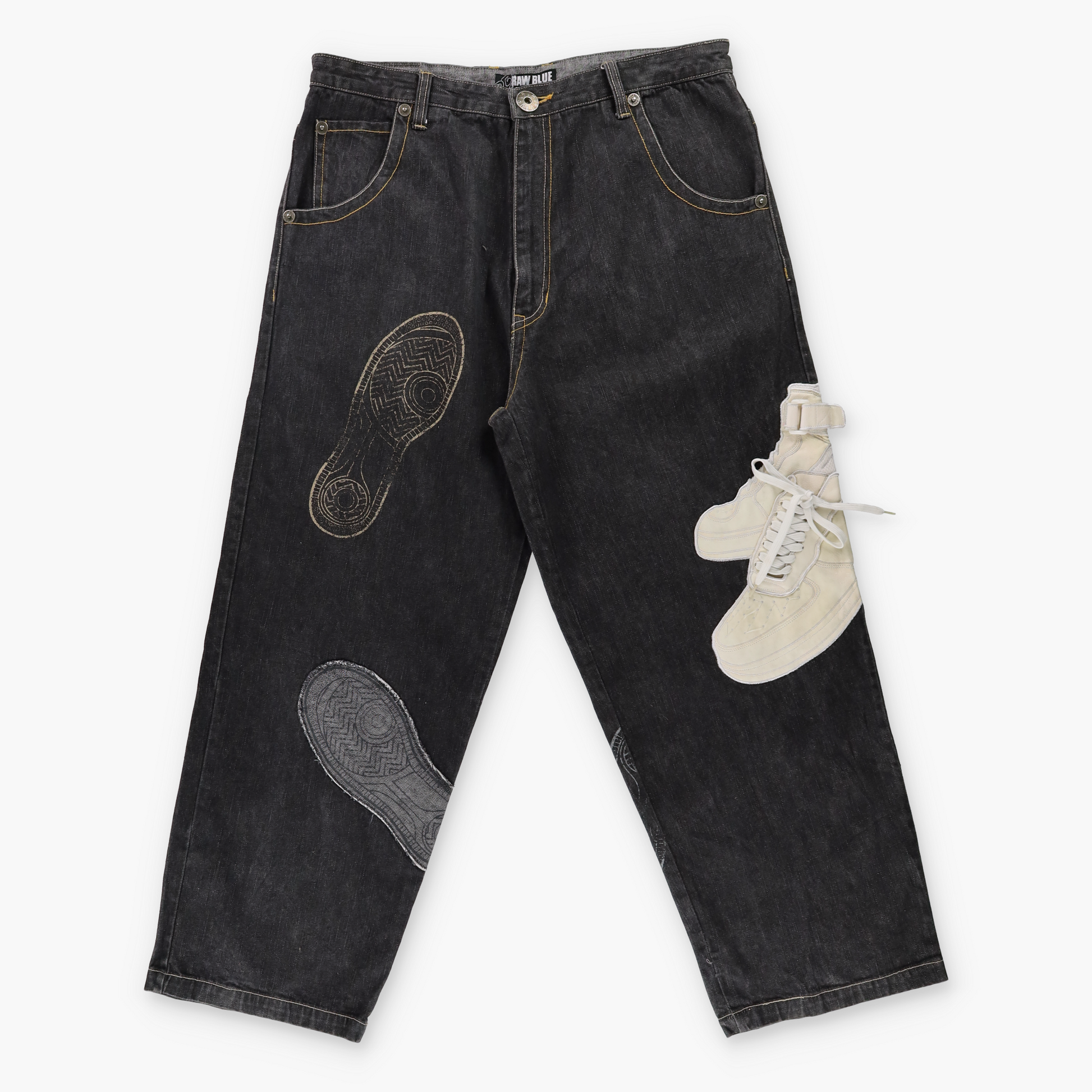 RAW BLUE Y2K Embroidered 3D Shoe Lace Footprint Black Jeans (38x31)