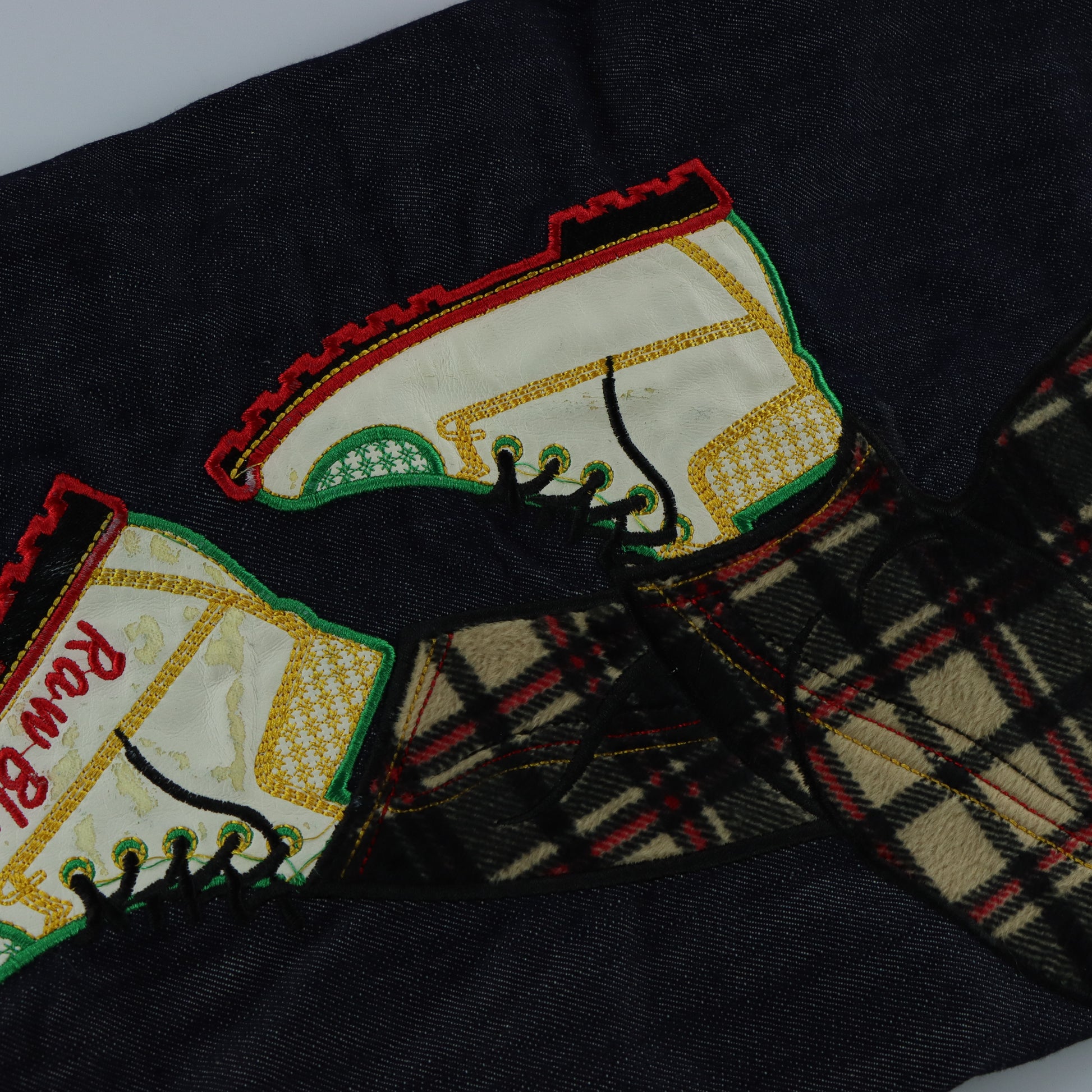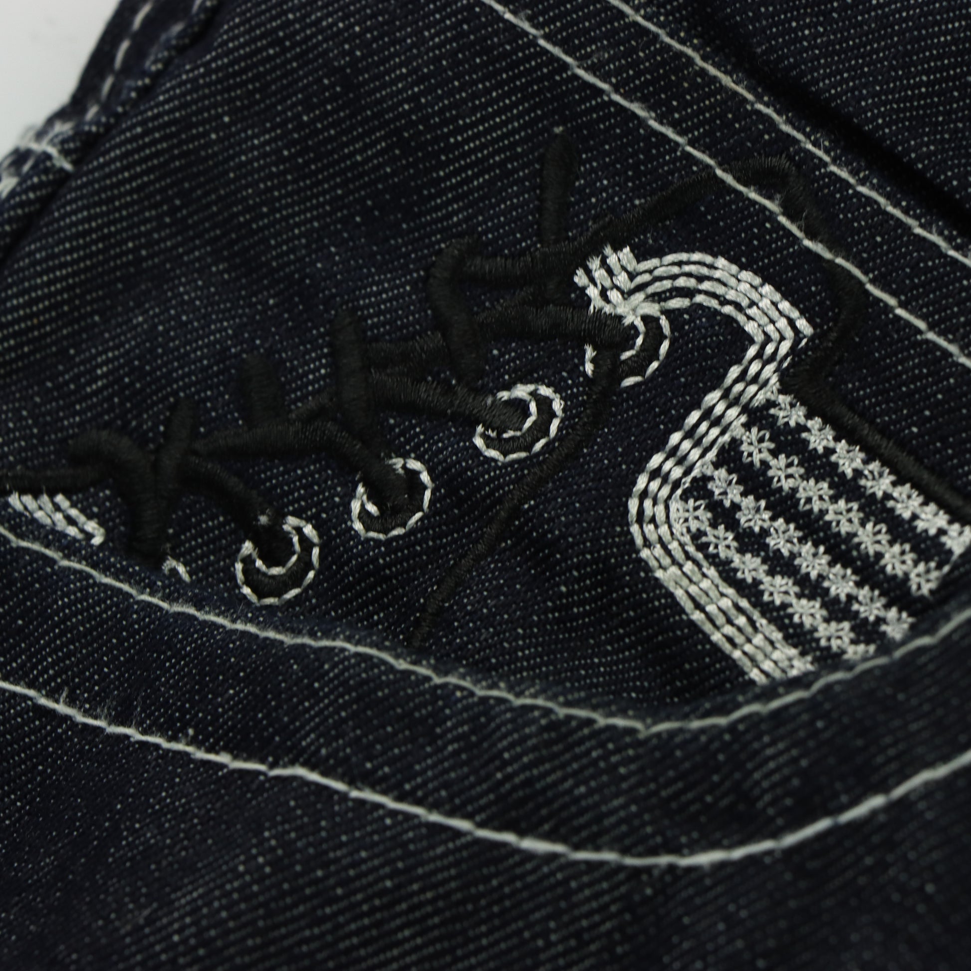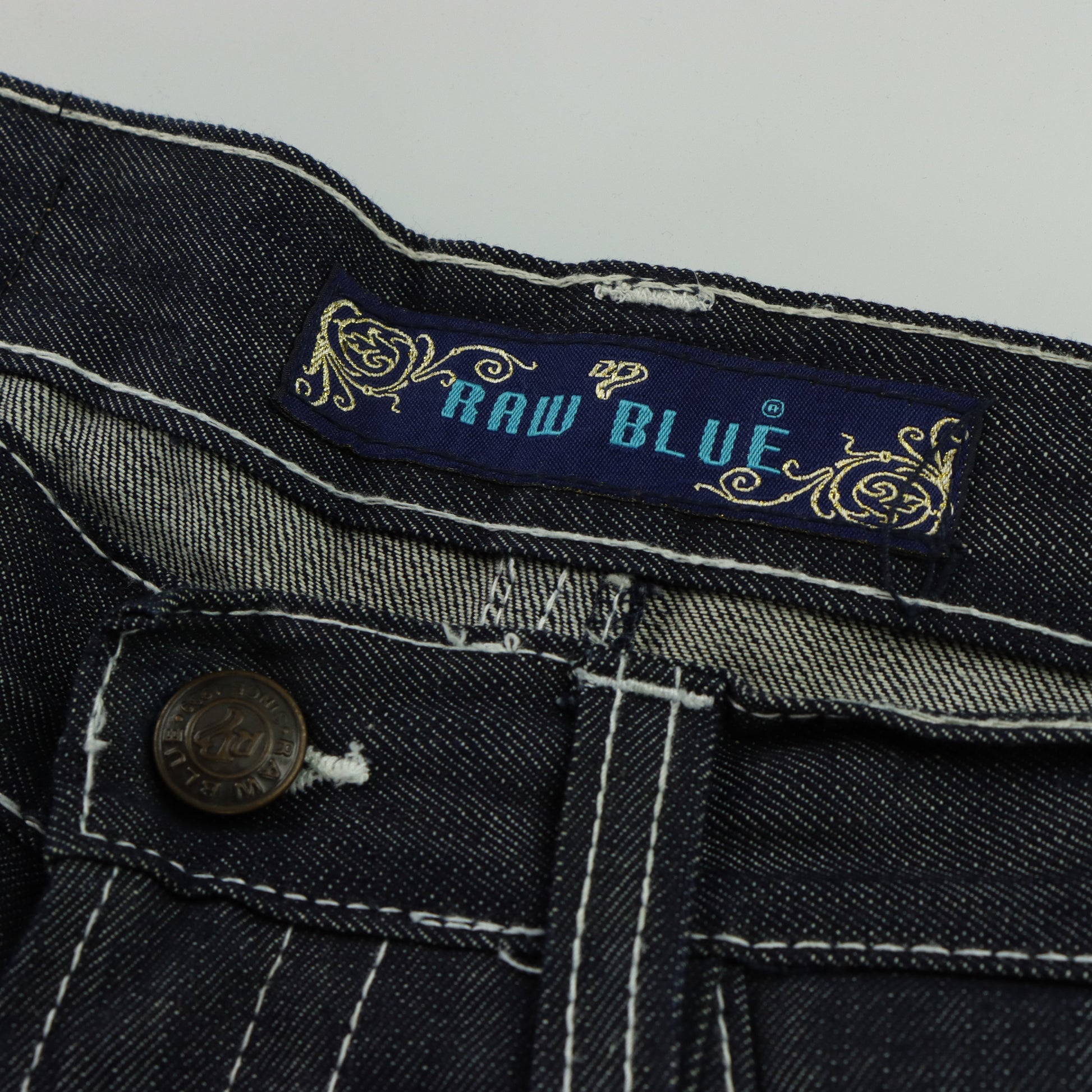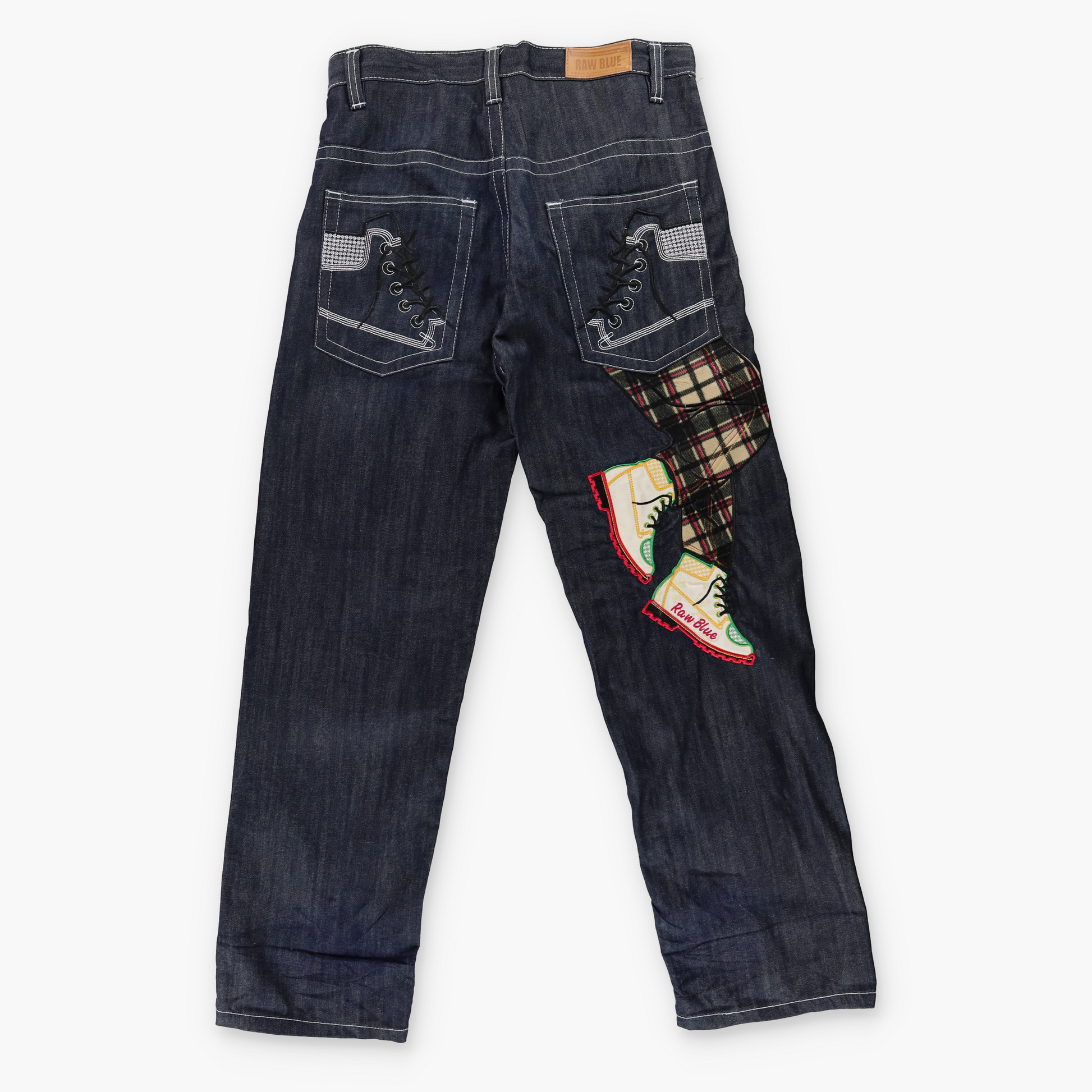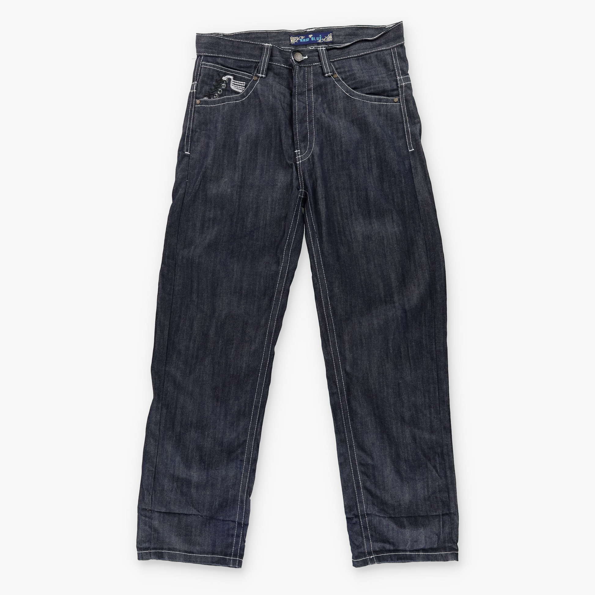 RAW BLUE Y2K Embroidered Sneaker Lace Dark Wash Jeans (34x32)