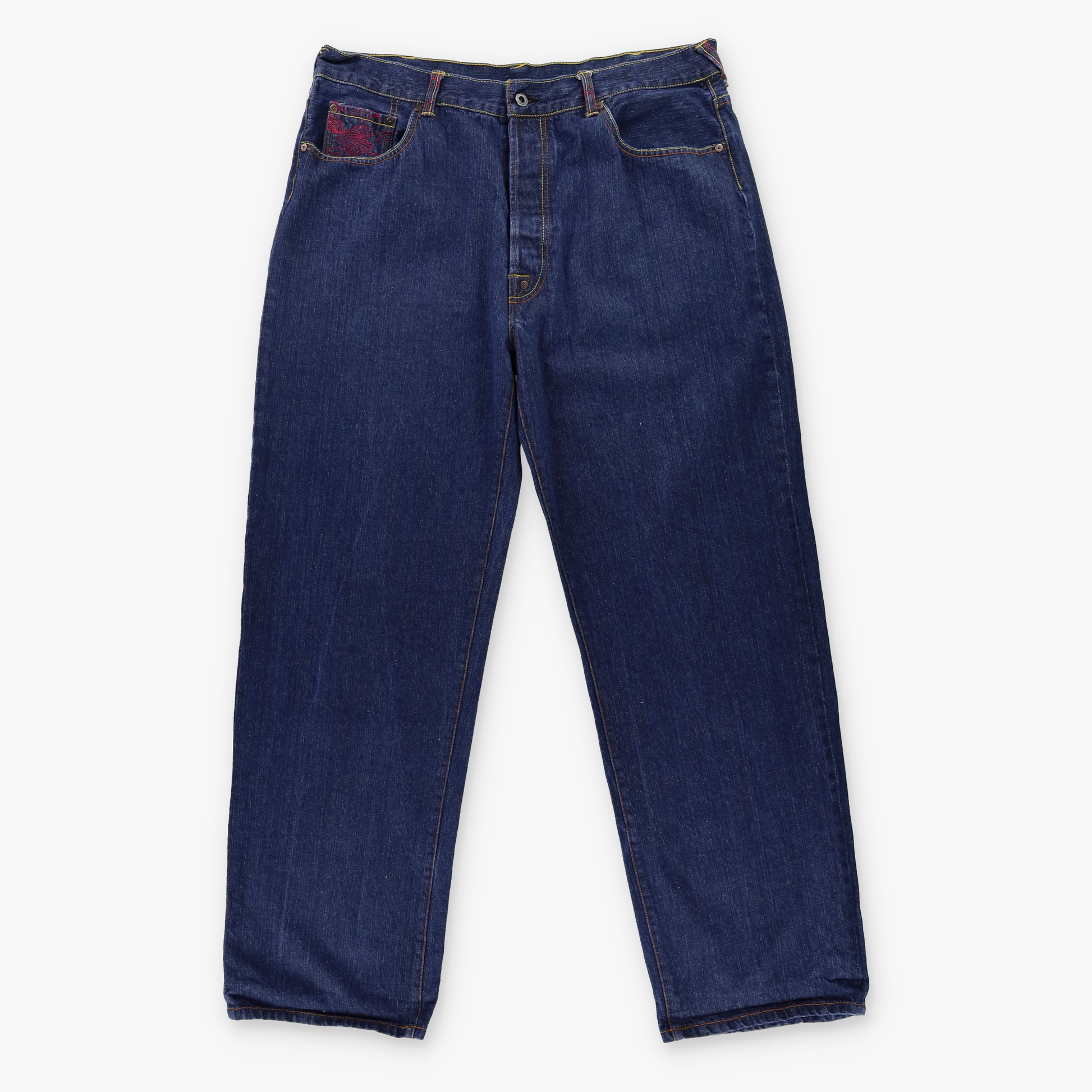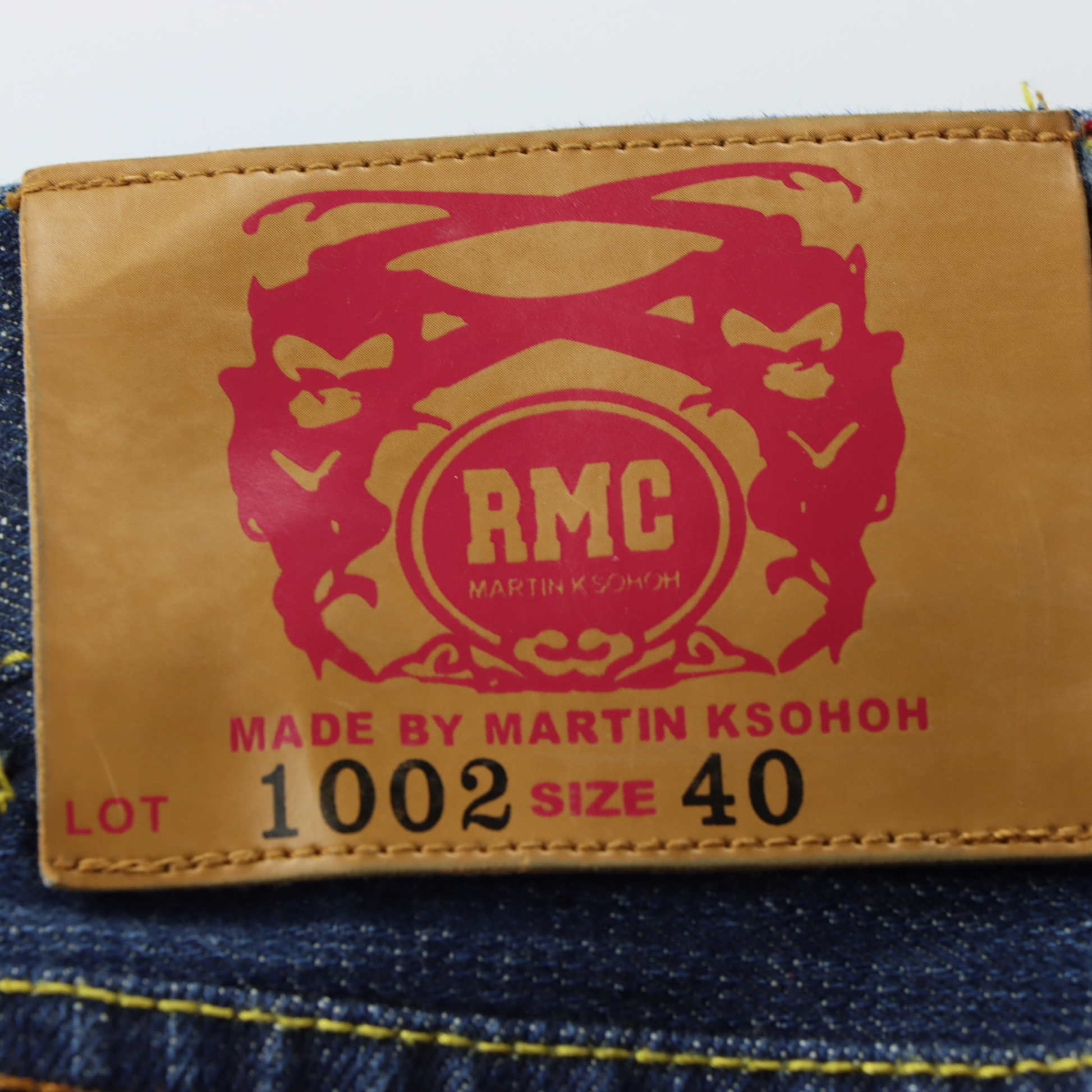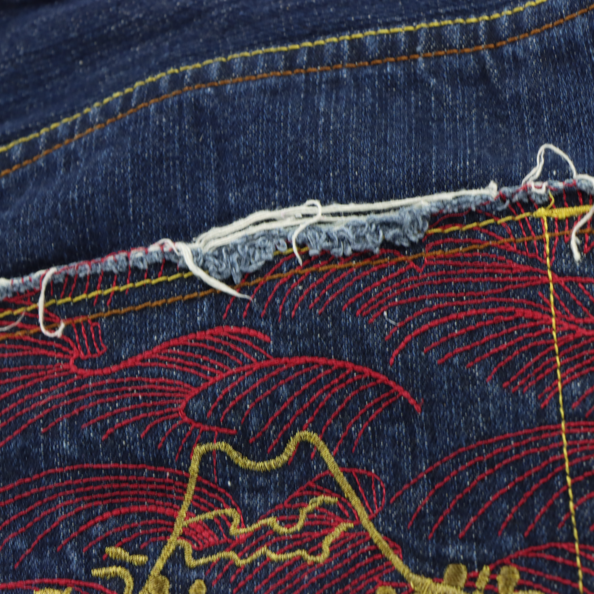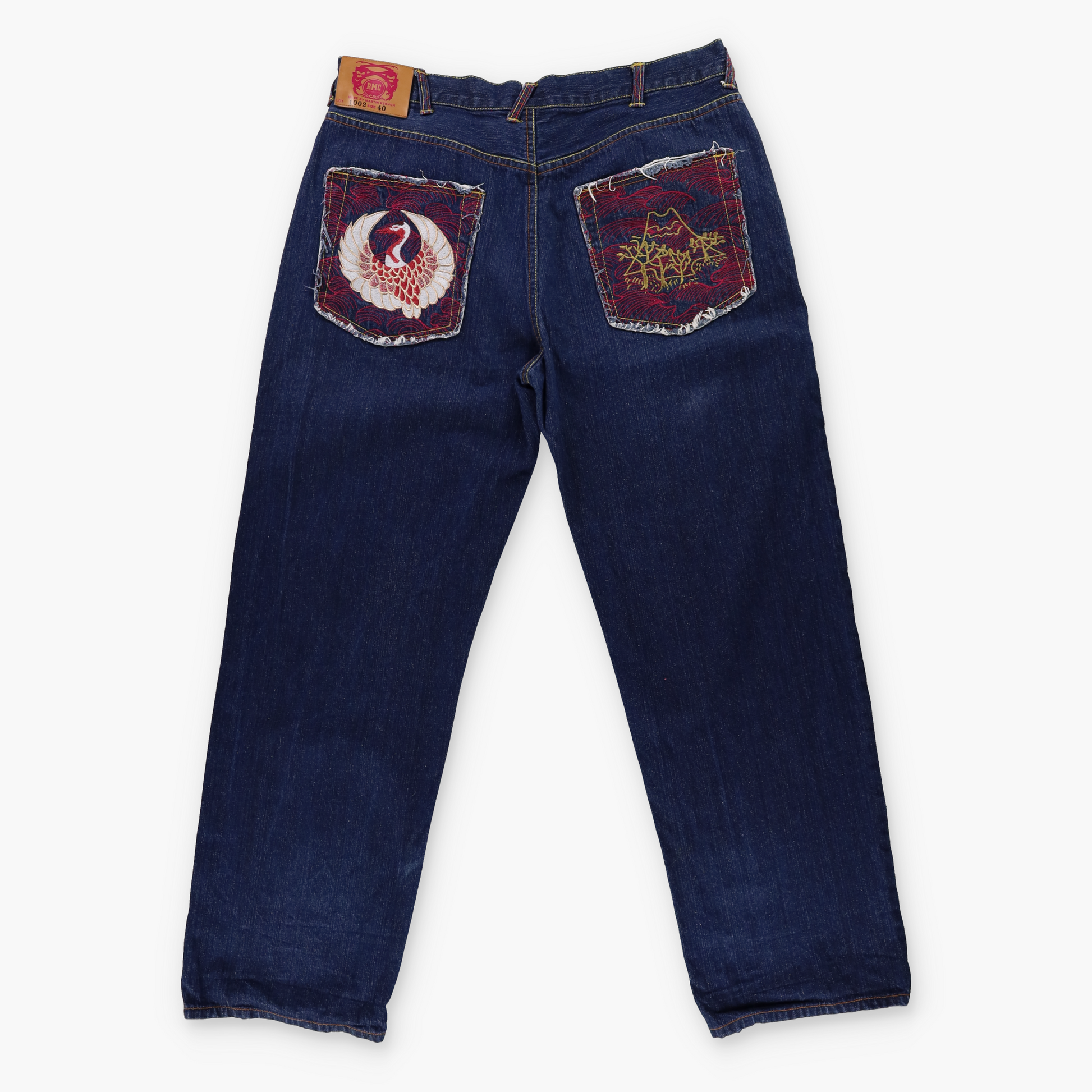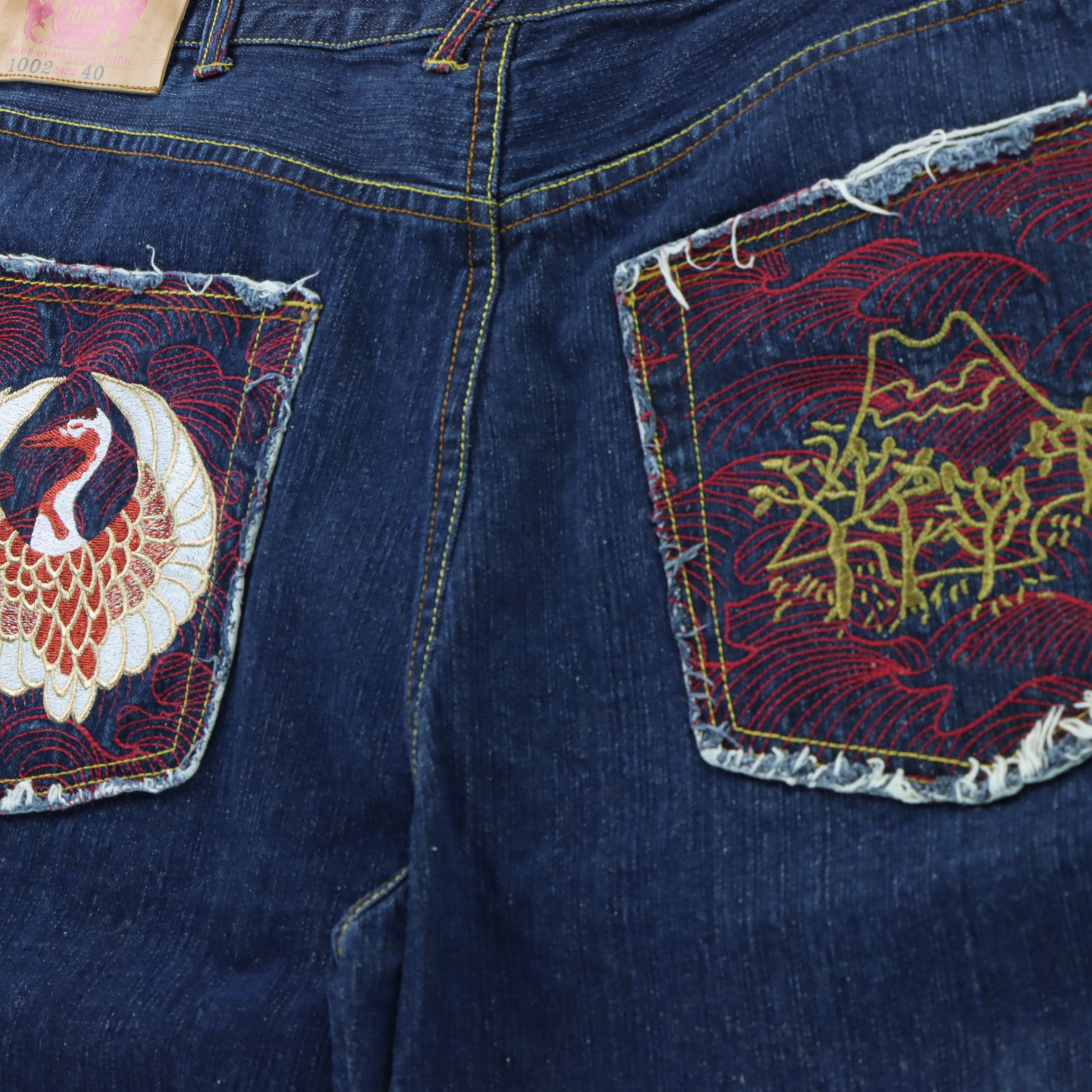 RED MONKEY Embroidered Pocket Japanese Bird Red & Blue Denim Jeans (40)