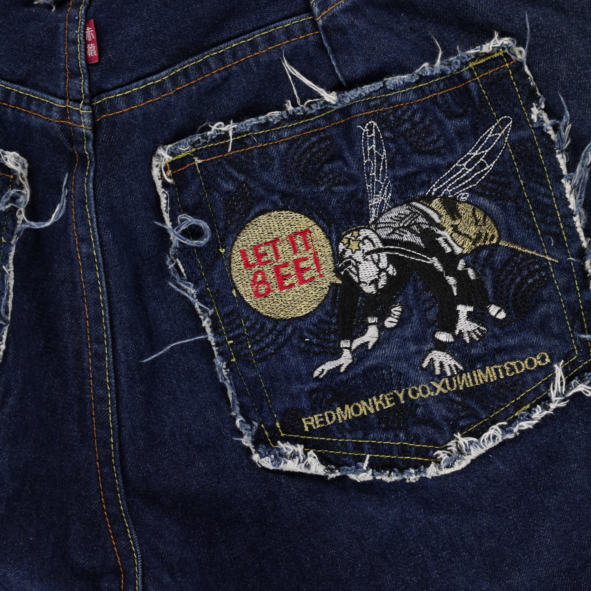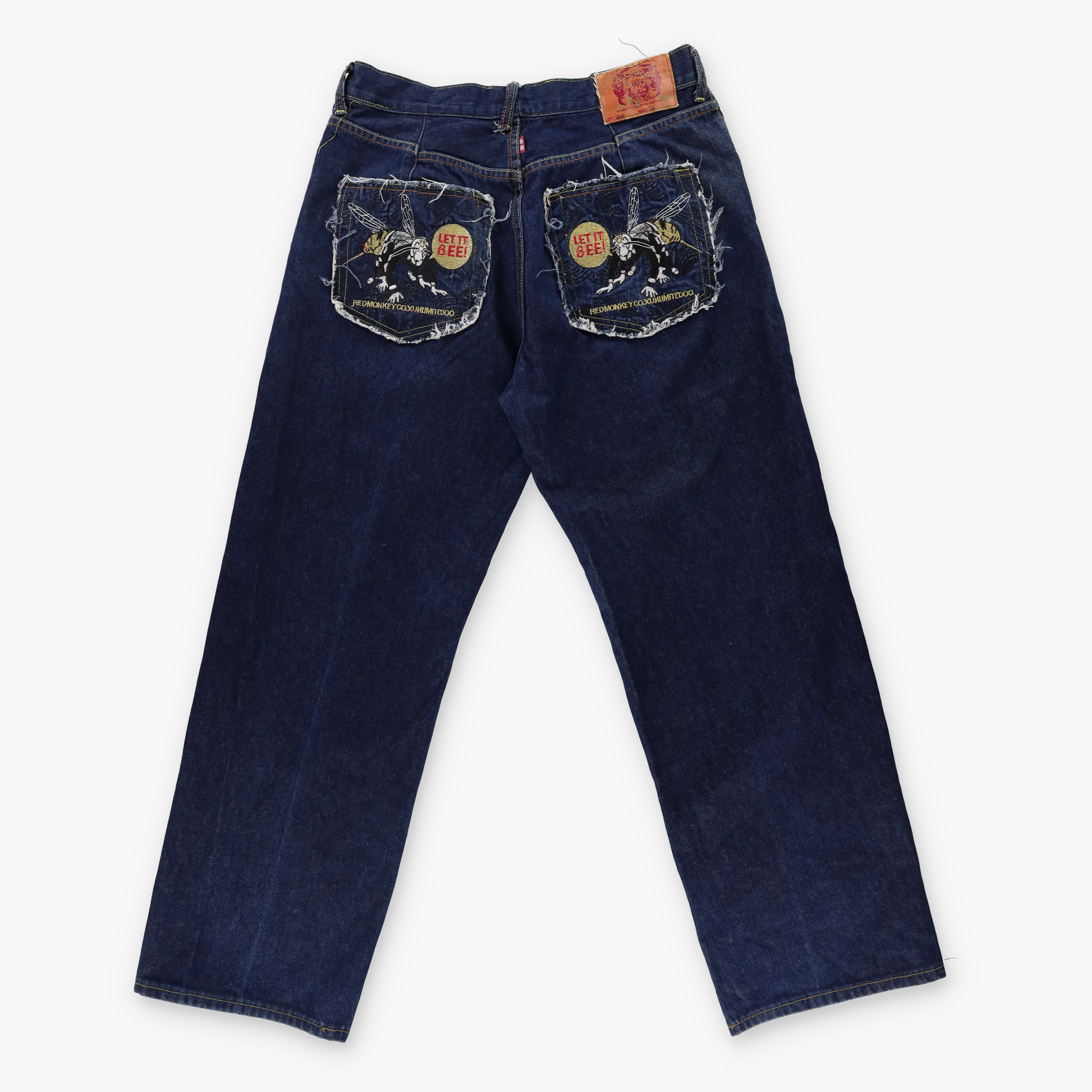 RED MONKEY Y2K 'Let It Be' Embroidered Bee Pockets Jeans (38)