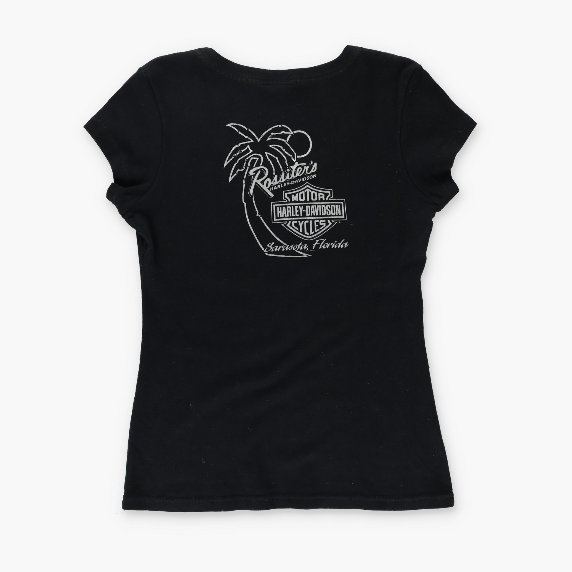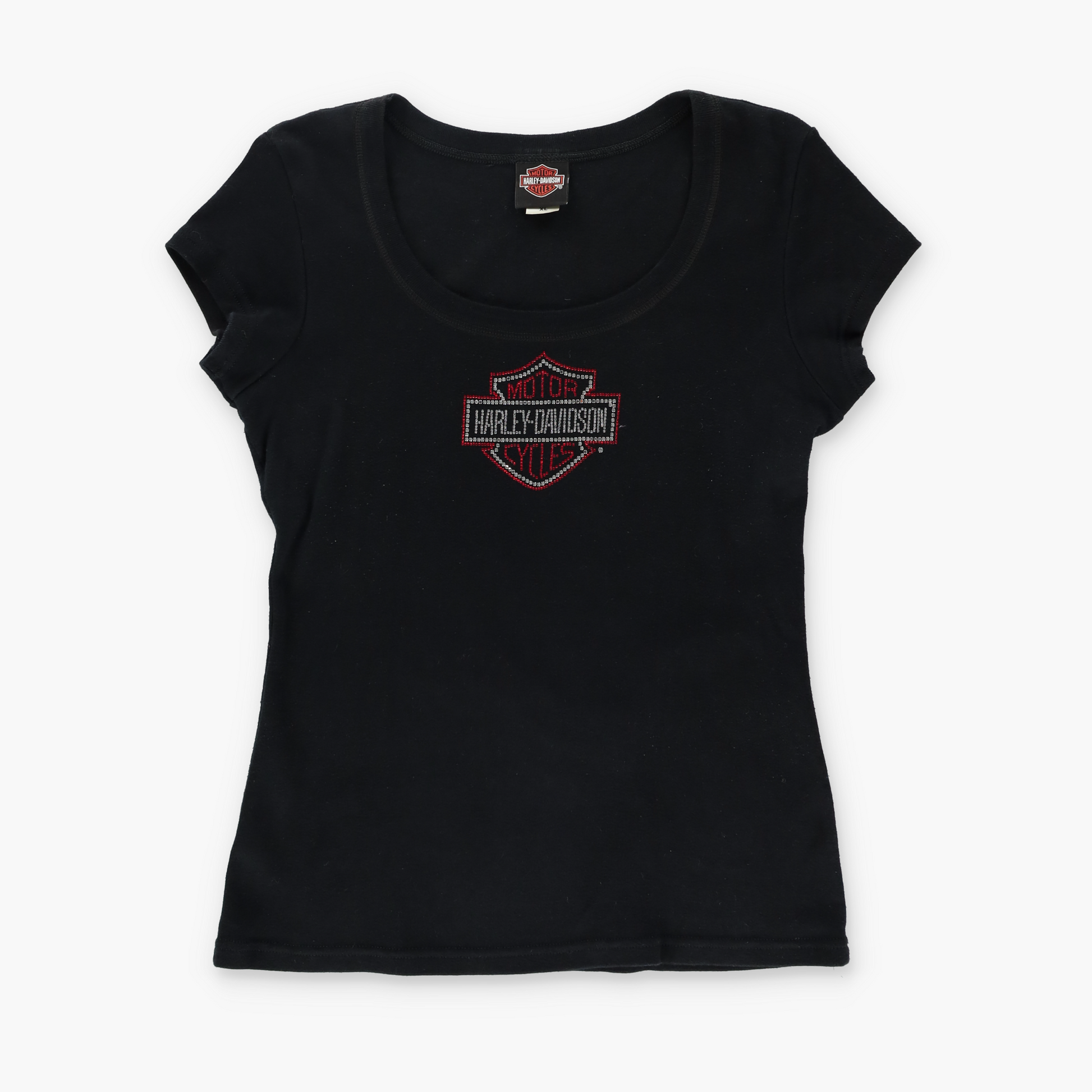 HARLEY DAVIDSON Rhinestone Centre Logo Y2K T-Shirt USA Made (Women's L-XL)