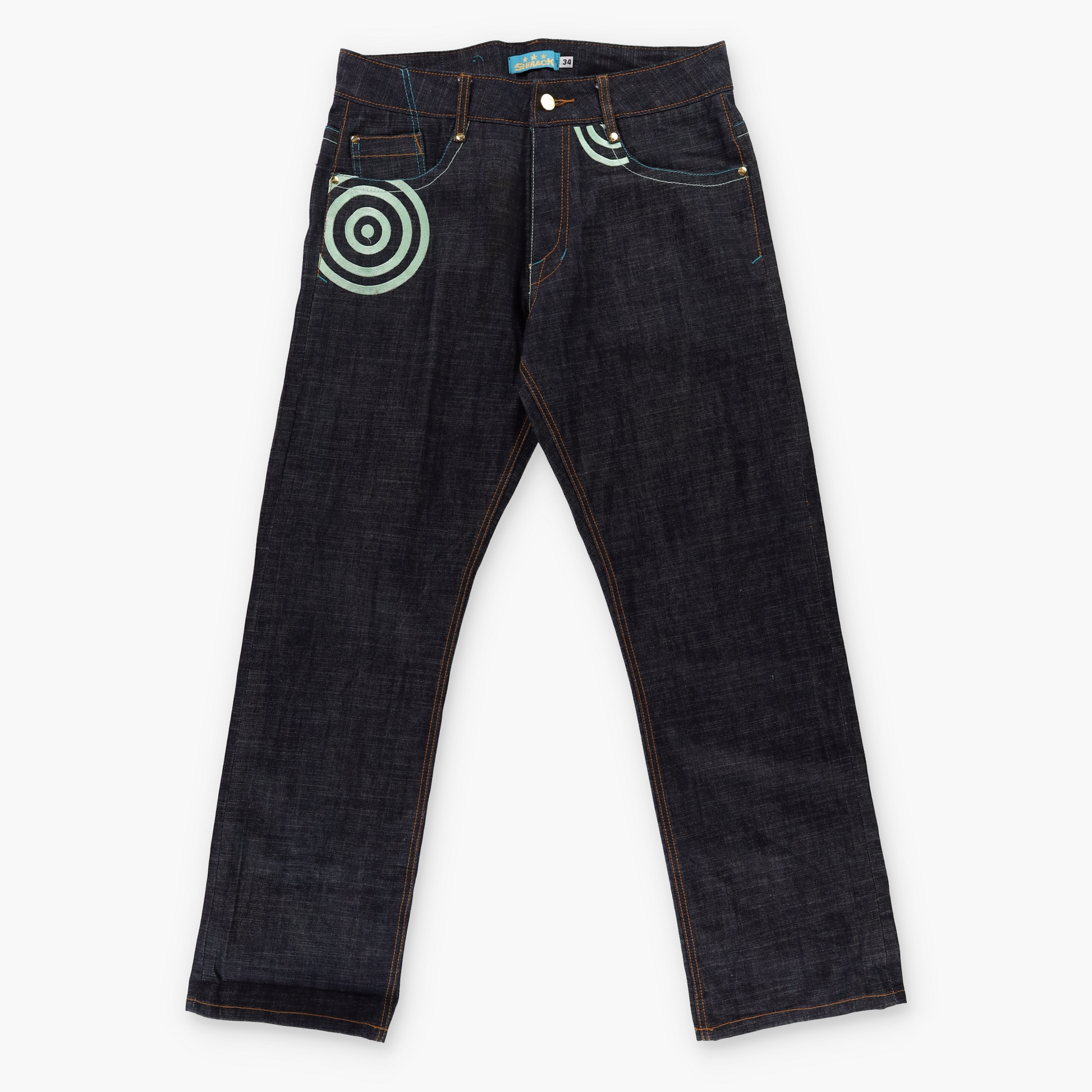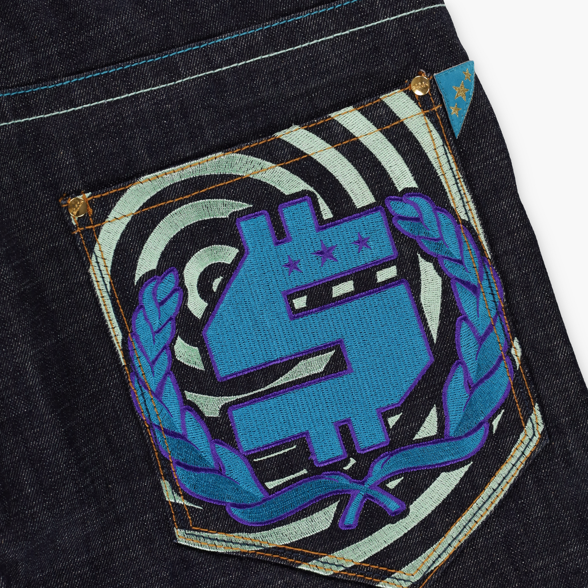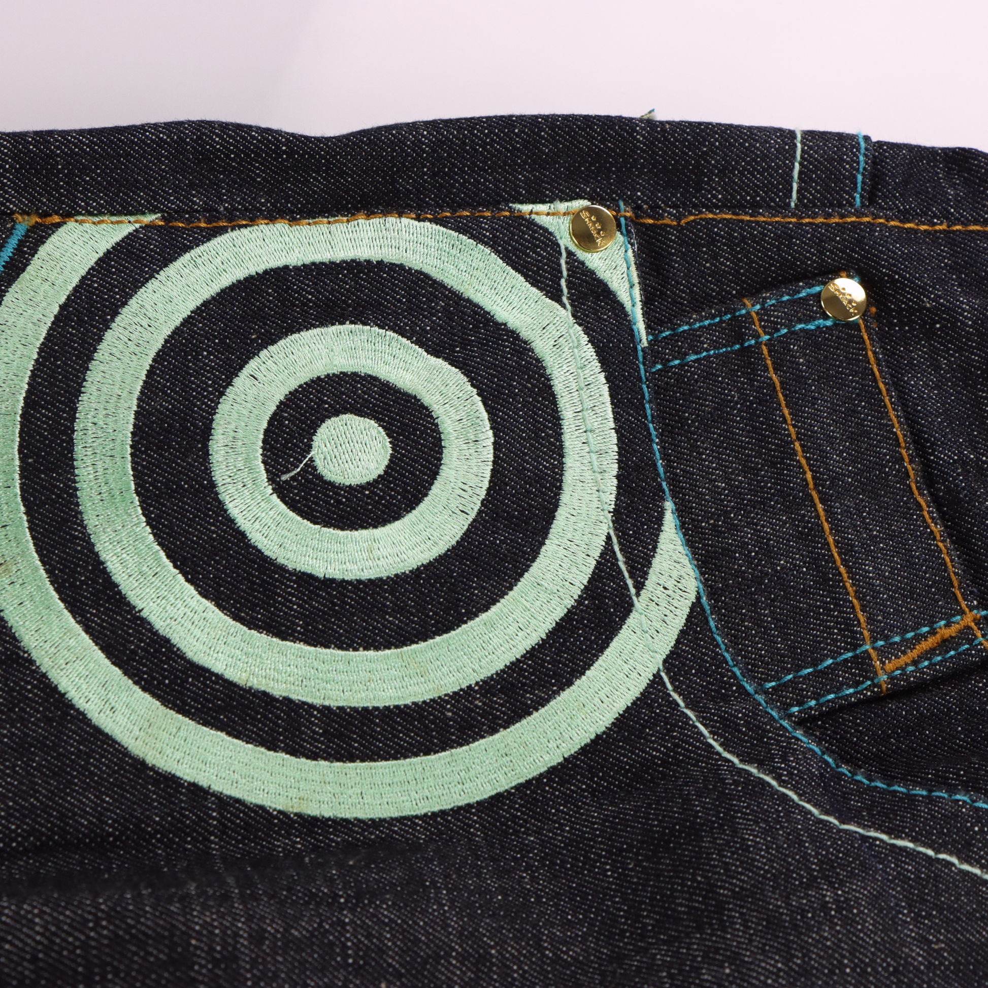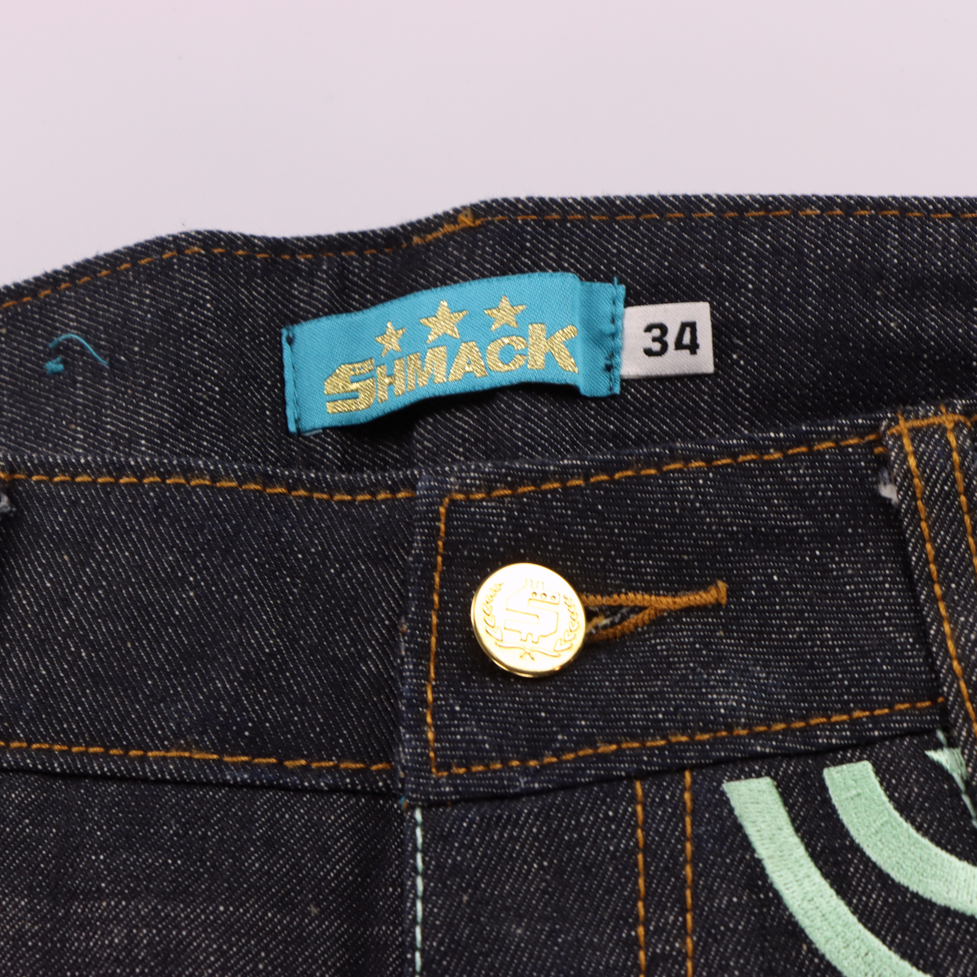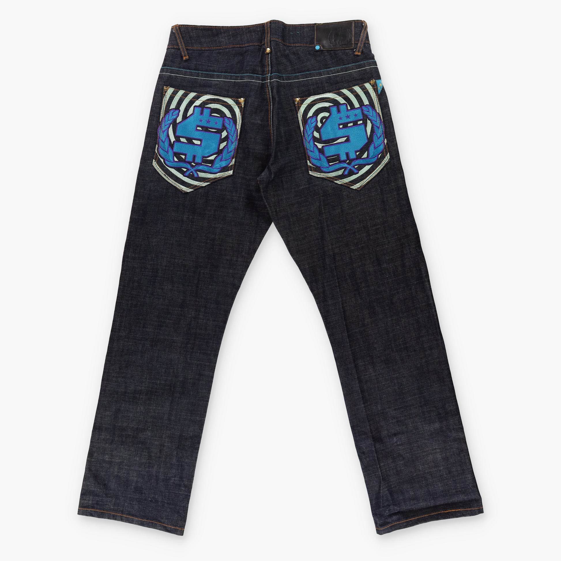SMACKS Y2K 'S' Embroidered Blue Swirl Dark Wash Jeans (34)