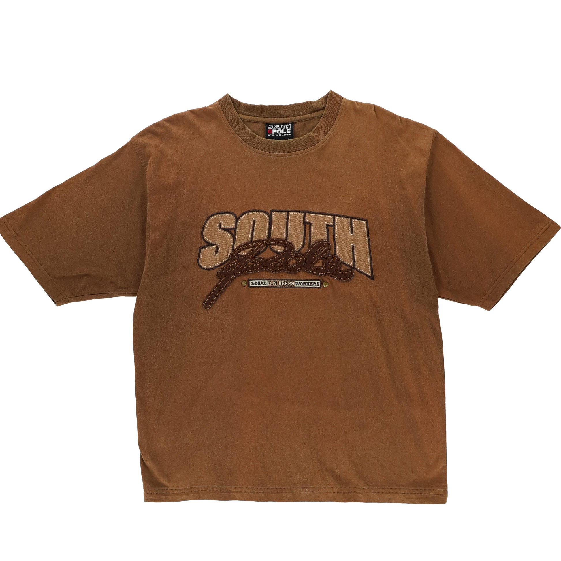 SOUTH POLE Y2K Brown Embroidered Large Logo Cotton T-Shirt (XL)